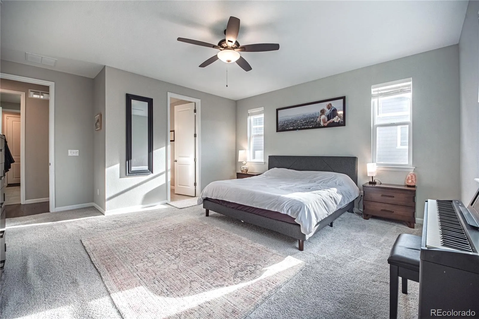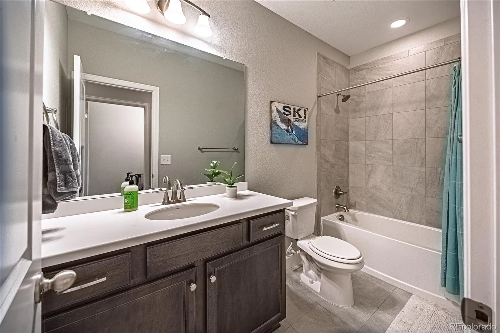 This stunning 5-bed 3-bath ranch home combines energy savings, modern luxury, and one of the largest, level backyards in the neighborhood. From the moment you step inside, you’ll love the open-concept great room where the upscale kitchen, dining area, and family room flow seamlessly together, perfect for everyday living and entertaining. The kitchen is a highlight with quartz countertops, breakfast bar seating, double ovens, a gas cooktop, stainless steel appliances, extended-height cabinetry, and a large walk-in pantry. The thoughtfully designed floor plan places the spacious primary suite on one end of the main level, offering a peaceful retreat with a walk-in closet and a spa-style bath featuring dual vanities and a walk-in shower. On the opposite side of the main floor, you’ll find more bedrooms and a full bath, providing privacy for family or guests. The finished basement boasts 9-foot ceilings and a massive open area ideal for a media room, game room, or second family room, plus two separate bedrooms, another full bath, and a large unfinished storage room with built-in shelving. Step outside to enjoy one of the most desirable backyards in this Cobblestone neighborhood, complete with low-maintenance artificial turf and south-facing position reducing winter snow and ice. The 3-car garage includes built-in shelving, and the home also has paid-off solar panels that provide enough energy to add a hot tub and an electric car charger. Other upgrades include a larger high-efficiency A/C unit, quiet garage door openers, and a paid-off Vivint security system with panel, doorbell, and two cameras. The homes location is also a highlight – just minutes from Red Hawk Ridge Golf Course, and a short drive to The Ridge at Castle Pines North, with easy access to walking and biking trails, top-rated schools, shopping, dining, and commuter routes. This is truly a rare opportunity to own an energy-efficient, move-in-ready ranch home in one of Castle Rock’s best neighborhoods.