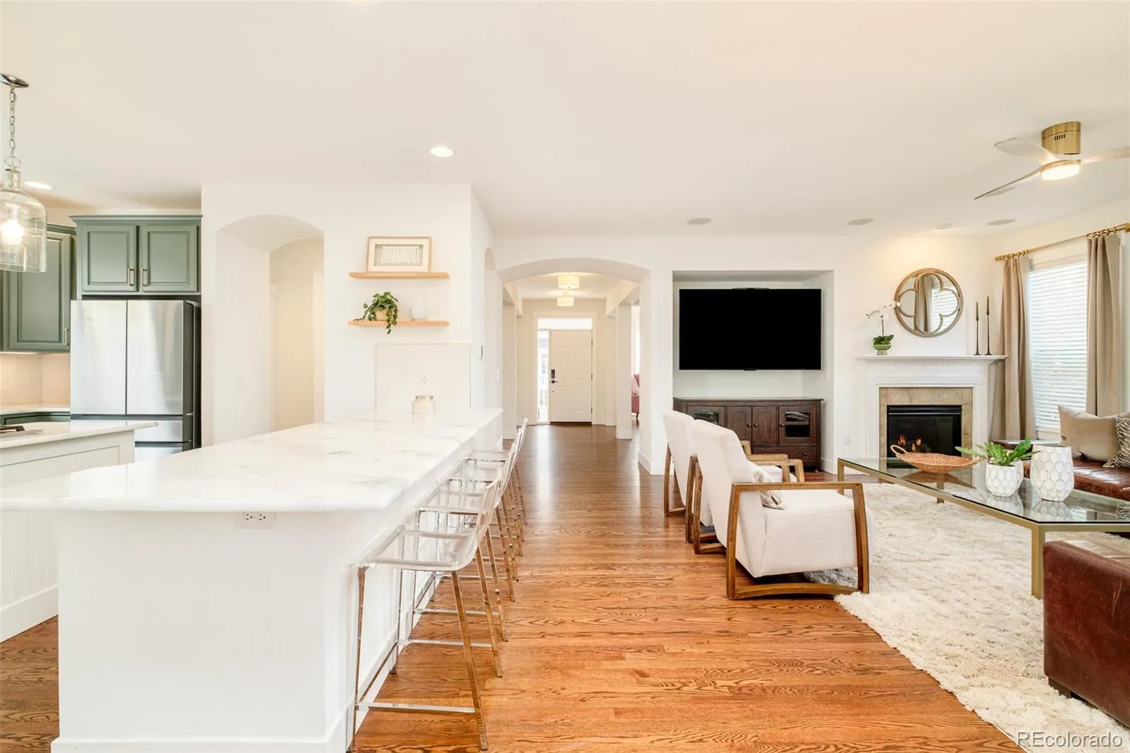 Central Park’s coveted Eastbridge neighborhood sets the stage for this stunning McStain Willow model, offering refined living with exceptional access to Stanley Marketplace, parks, pools and scenic trails. An expansive covered front porch invites entry into a bright, thoughtfully designed layout featuring hardwood flooring and a gas fireplace anchoring the family room. The elegantly updated kitchen shines with modern finishes, ample cabinetry and generous prep space, seamlessly connecting to dining and gathering areas. Upstairs, four spacious bedrooms provide comfort and flexibility, elevated by newer carpet and lighting throughout. The finished basement adds versatility with an additional bedroom and a flexible bonus space ideal for guests, a home office or recreation. Outdoors, a freshly landscaped yard with new sod and a patio creates a private retreat for unwinding. Complete with a 2-car attached garage, this home brings a harmonious mix of style, space and community connection.