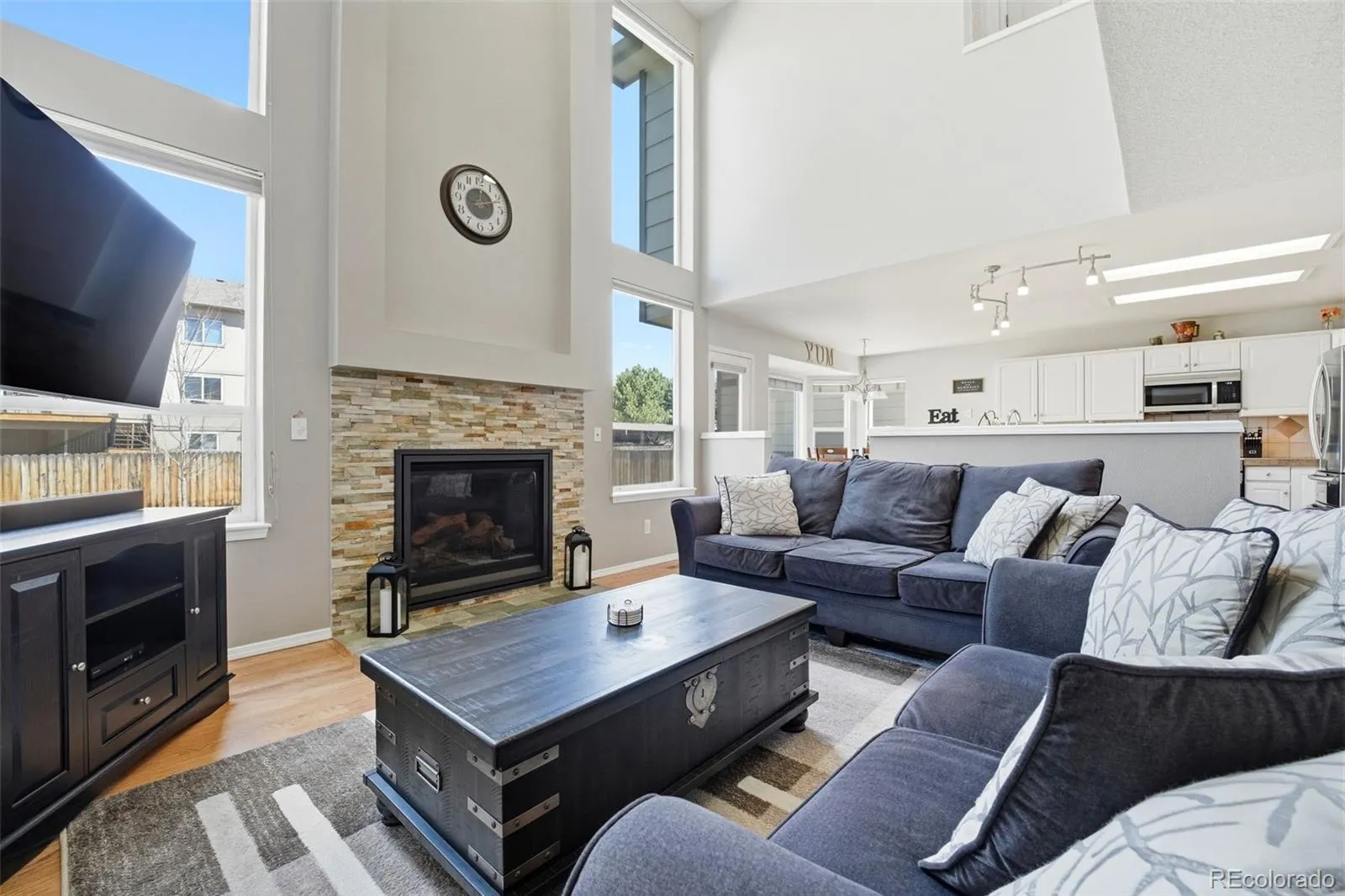 Step inside to soaring cathedral ceilings and abundant natural light that fills the open-concept main level. The living room, dining area, and family room flow seamlessly into the kitchen—perfect for everyday living and entertaining. A dedicated main-floor den/office provides the ideal space for working from home or a quiet retreat. The kitchen features newer appliances (all within the last 3–4 years), a pantry, and convenient access to main floor laundry. New carpet upstairs recently and wood flooring installed in 2022 add a fresh, modern feel throughout.