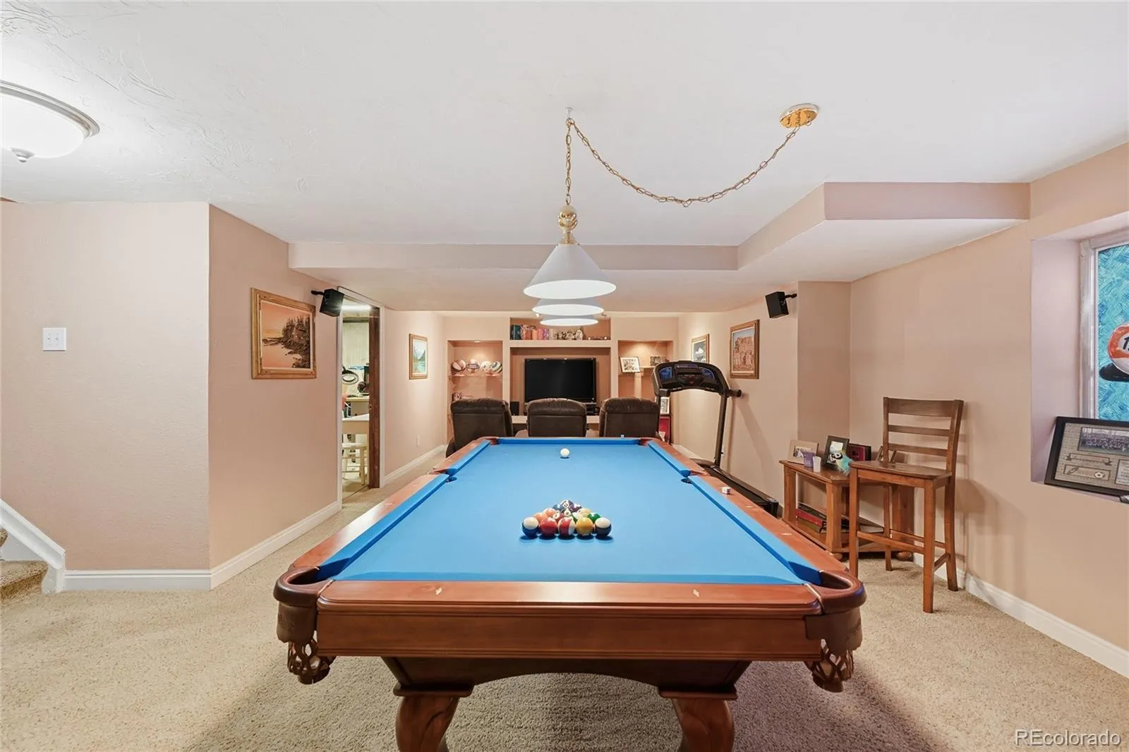 The main level provides comfortable living and entertaining space over hard wood floors, while the upper level offers privacy with well-sized bedrooms. A cozy fireplace adds warmth and character, and central air conditioning ensures year-round comfort. Newer furnace and air conditioner. Love the pool table? How about the treadmill? They come with the house.