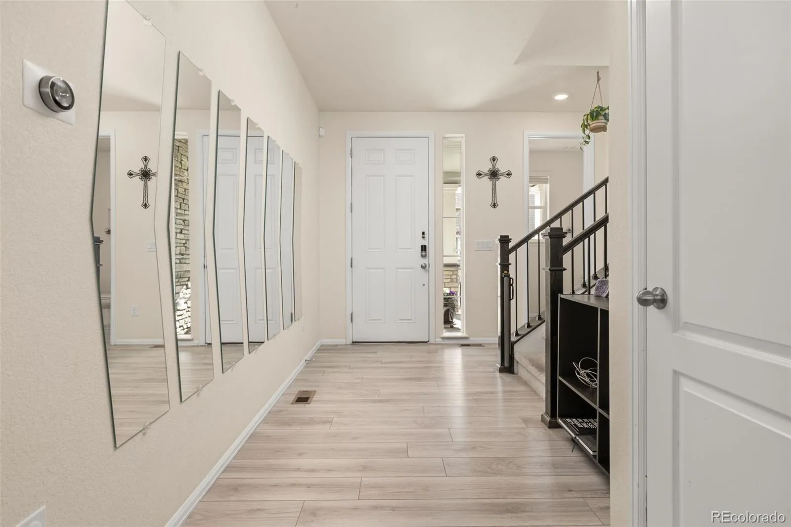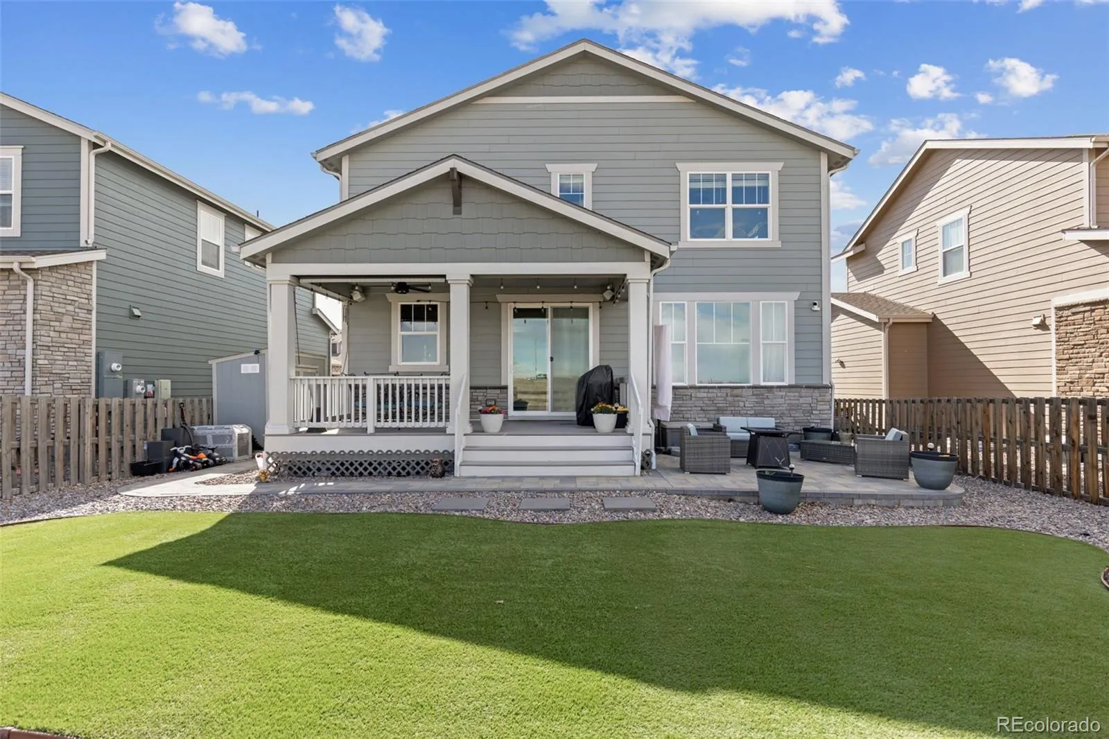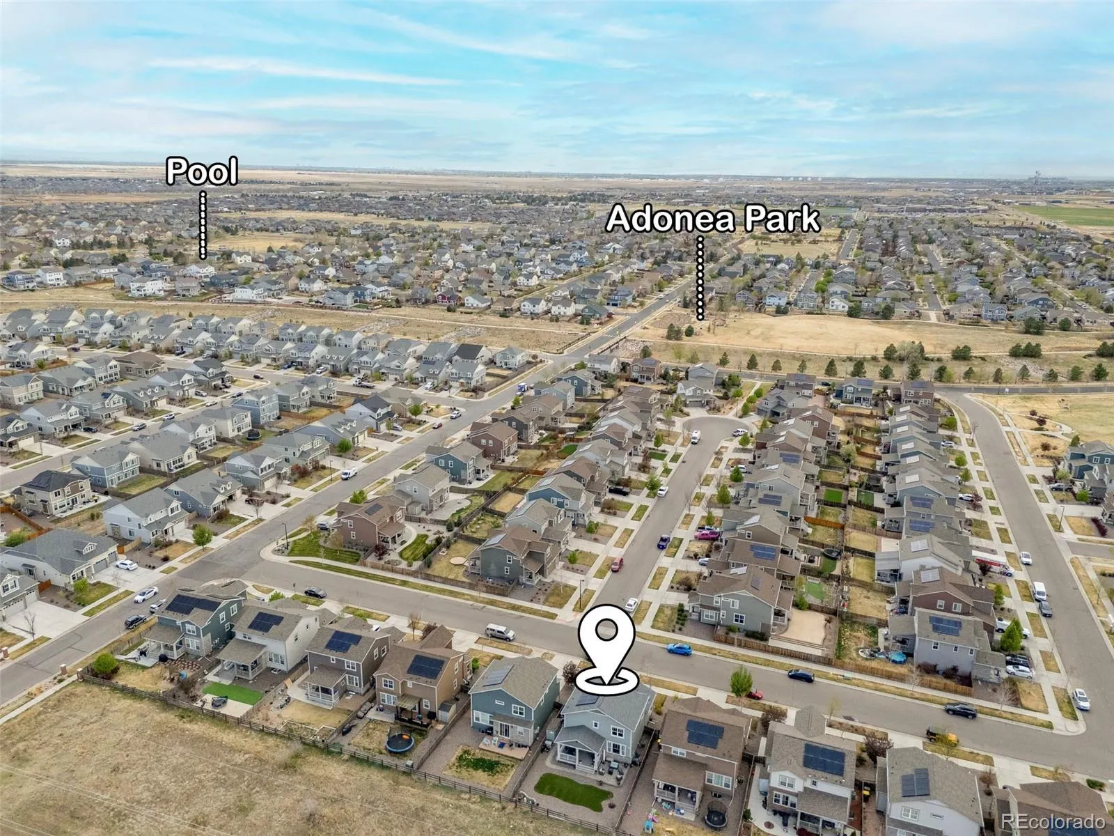 Upgrades galore in this beautifully enhanced Lennar 2-story in Adonea! This home is wired for the modern lifestyle with CAT 6A wiring throughout, a Vivint security system, SOLAR, and efficient 2×6 exterior walls for added comfort and energy savings. Whole house water softener and reverse osmosis at kit sink and frig! Inside, you’ll love the LVP flooring on the main level and the new instant hot water heater that keeps everyday living easy and efficient. The thoughtful floor plan features 3 bedrooms upstairs plus a conveniently located laundry room on the same level, and all appliances – including washer and dryer – are included for a true move-in-ready experience. The full unfinished basement offers incredible potential for future expansion, whether you envision an additional bedroom, rec room, home gym, or extra storage. Step outside to an entertainer’s dream yard showcasing an extended back deck, paver patio, astro turf yard for low-maintenance green all year, and a large shed for your tools and toys. Gemstone eave lighting adds a stunning year-round decorative accent, making holidays and special occasions pop with the touch of a button, and the home backs to a greenbelt with eastern exposure so you can start each day with gorgeous Colorado sunrises. You’ll also love the Adonea neighborhood lifestyle, with nearby parks, walking trails, and a community clubhouse and pool that offer plenty of options for recreation, relaxation, and connecting with neighbors.