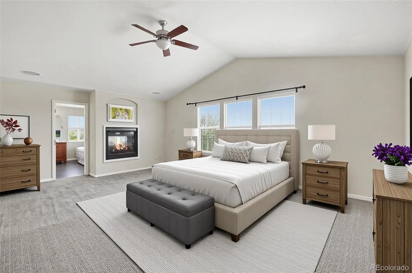 Upstairs, the primary suite is a true retreat with vaulted ceilings, a 2-sided gas fireplace, a massive walk-in closet, and a beautifully updated 5-piece bath featuring a freestanding tub, dual vanities, and its own 2-sided fireplace. Secondary bedrooms are well-sized, including one with a private ensuite, while the others share a Jack-and-Jill bath—offering comfort and privacy for all.