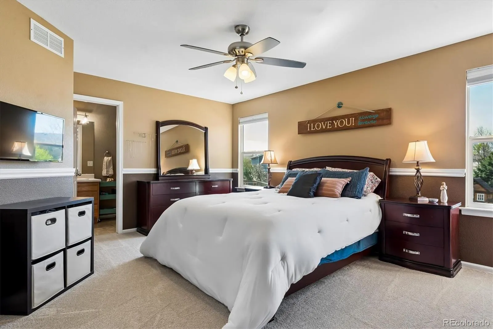 Move-in ready in Castlewood Ranch, where you can simply move in & start enjoying it, the sellers have already taken care of the updates for you. This light-filled home features wide plank laminate floors across the main level & brand new carpet upstairs, giving it a fresh, comfortable feel. Open layout flows for both everyday living & entertaining. Updated kitchen, slab granite, stylish backsplash, gas range, breakfast bar, pantry, & an eat-in nook with built-in seating & hidden storage that’s perfect for morning coffee, while the dining area has plenty of room for a full-size table. The butler’s pantry offers an abundance of cabinets & drawers along with a butcher block style countertop, making it ideal for prep space, a coffee bar. The great room is designed for real living, whether it’s gathering for movie night, watching the game, or simply relaxing at the end of the day. Main floor laundry room is practical with a built-in bench & hooks to keep everything organized. Upstairs the primary suite is spacious w/walk-in closet & private ensuite bath, along with 3 additional bedrooms that offer plenty of space for family, guests, or a home office, including one with a deep closet complete with built-ins & even a window, a unique & useful feature. The unfinished basement opens the door for future expansion to create whatever you need, from a home gym, media room or additional living space. Step outside & you’ll find a backyard that truly stands out, wooden playset & trampoline ready for fun, large grassy area for lawn games, & evenings spent around the fire roasting marshmallows & making memories, all centered around a pergola w/adjustable slats that open & close at the touch of a button so you can enjoy sunshine or shade. Low-maintenance composite deck. 2-car attached garage & a location that’s hard to beat, within walking distance to Elementary & Middle School, surrounded by neighborhood parks & walking trails, & minutes to everything Castle Rock has to offer.