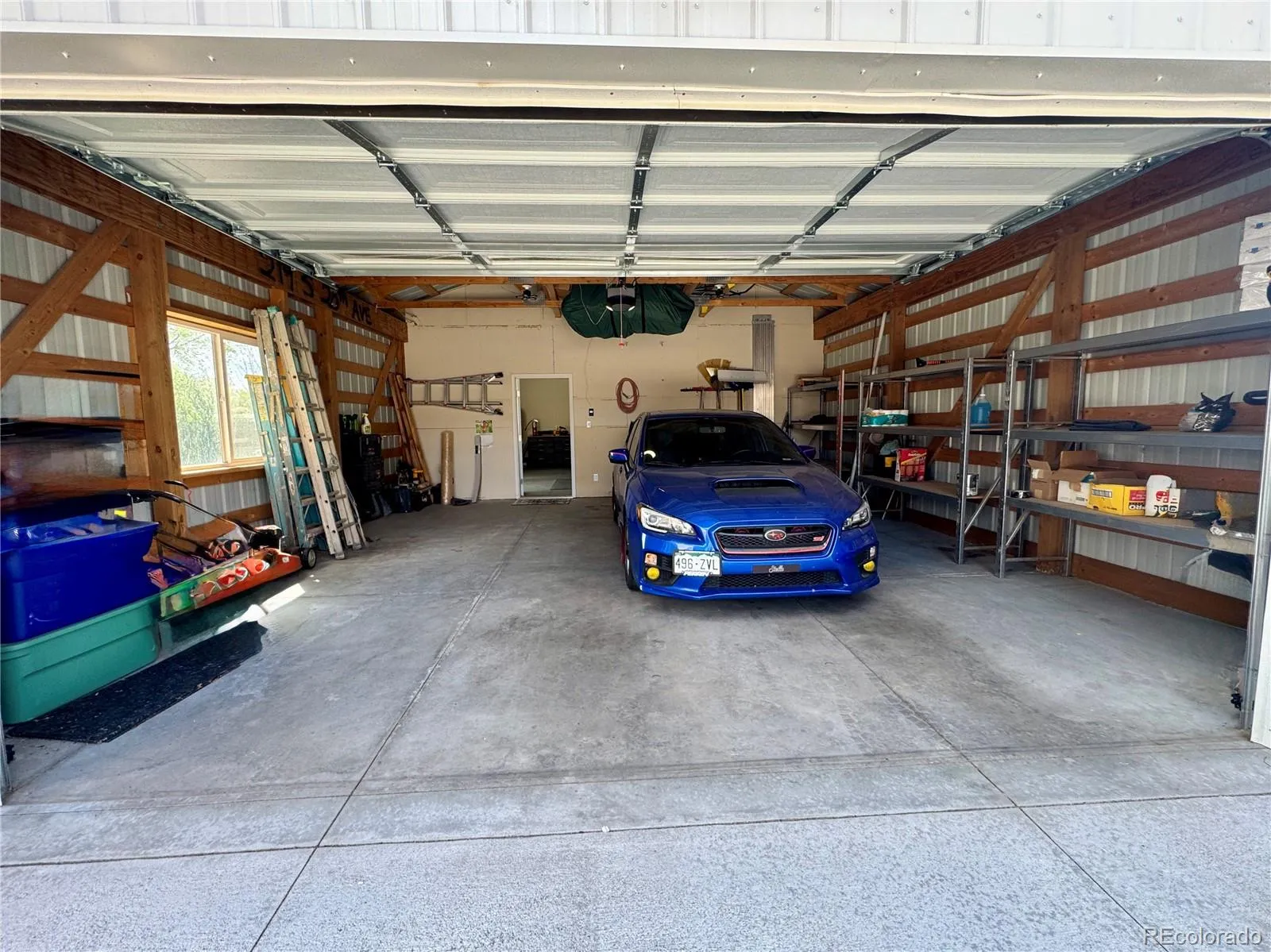The 24 x 48 insulated shop offers two separate areas—one set up as a workshop with built-in cabinets and the other for vehicles or toys. The space can be easily reconfigured.