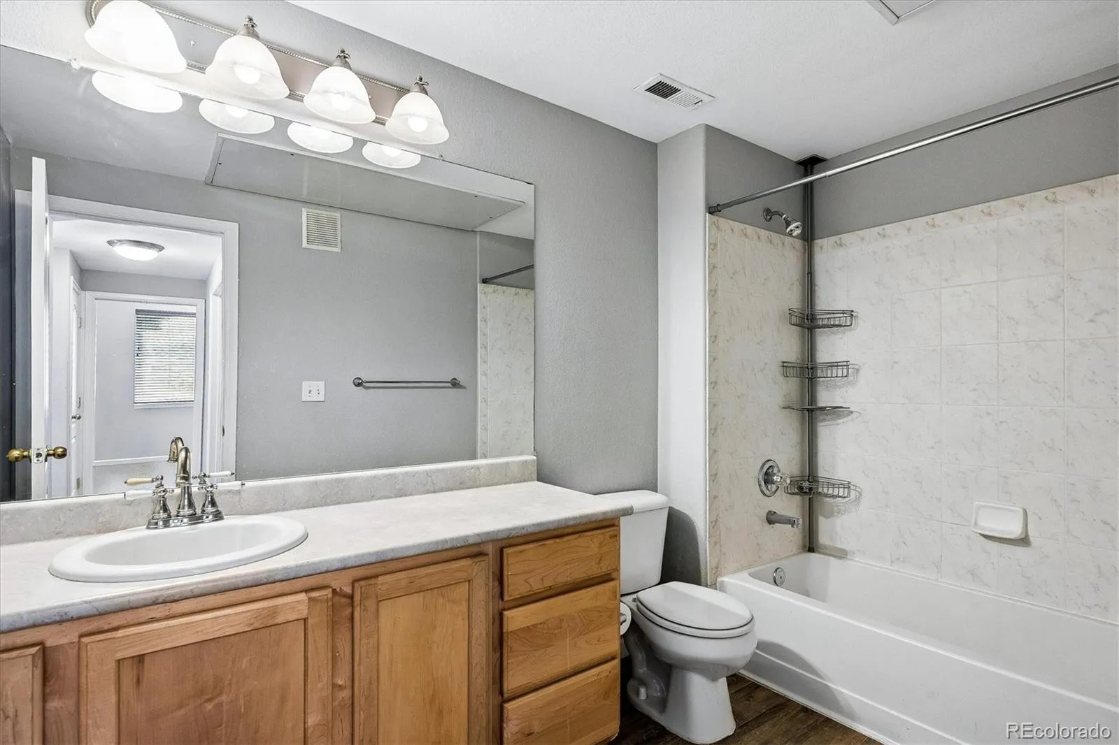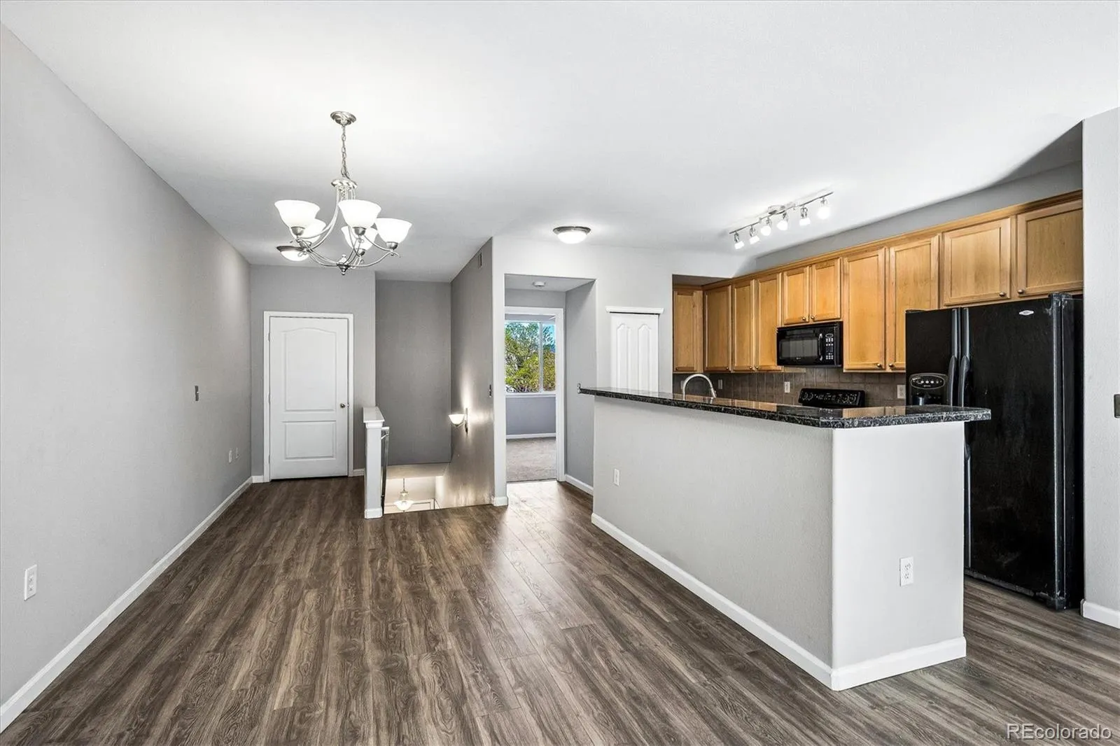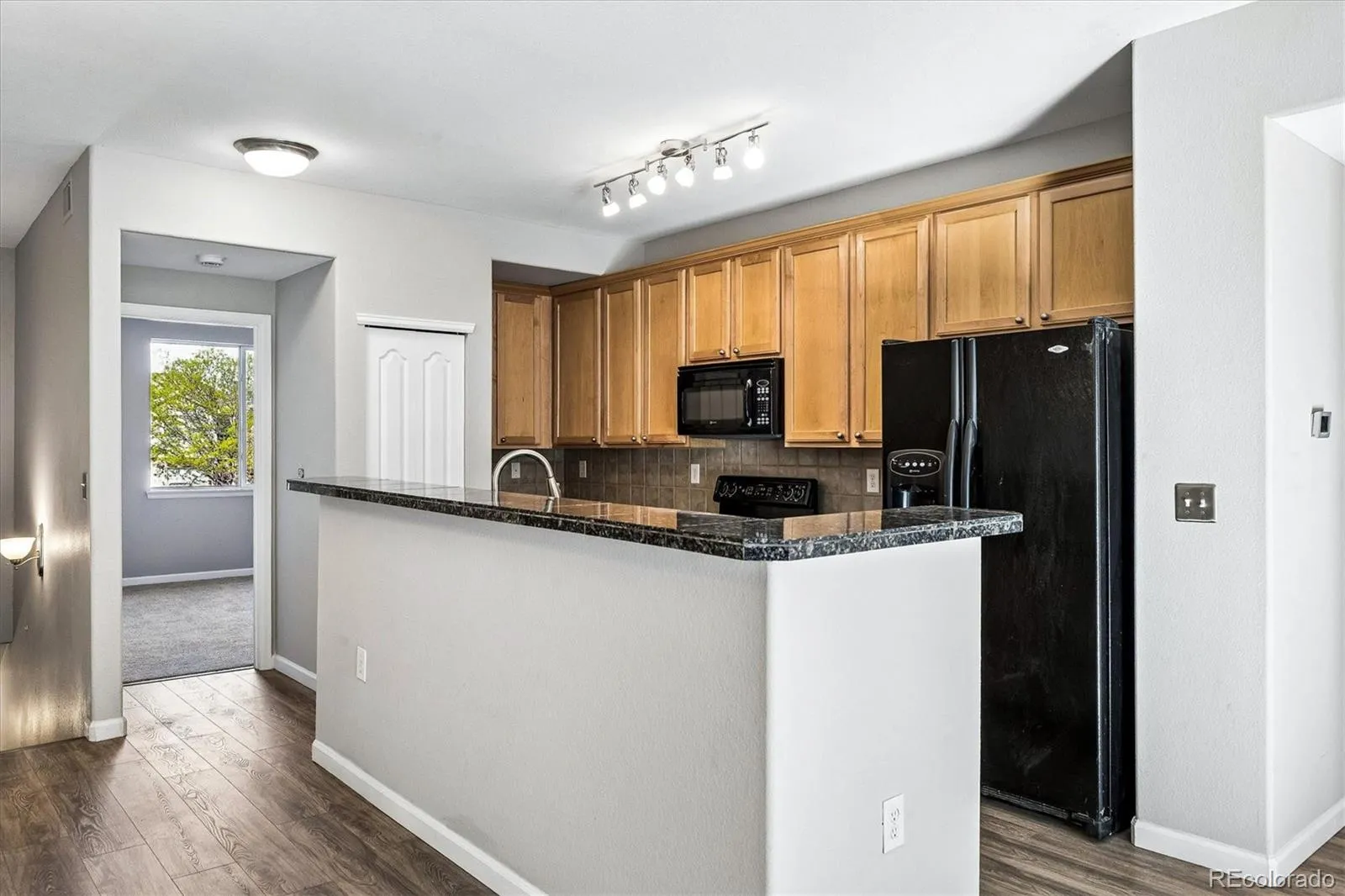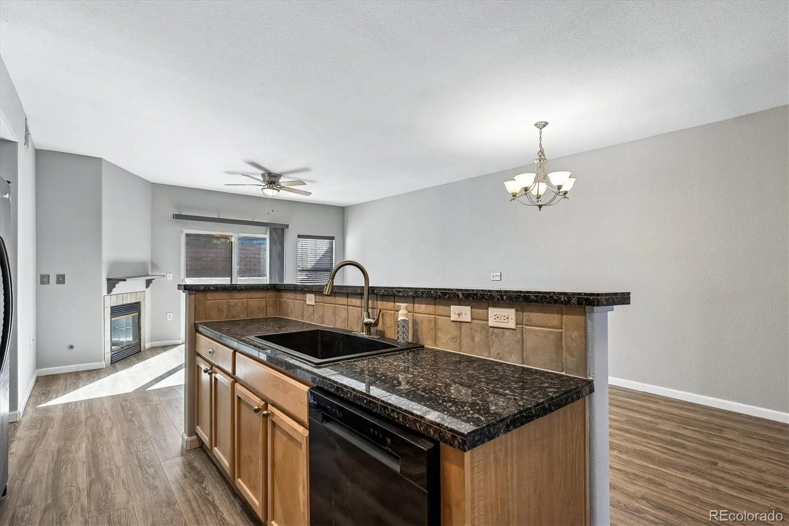 Welcome home to this spacious, beautifully updated Arvada condo! Step inside to brand-new luxury vinyl plank flooring throughout the main living areas and fresh interior paint, creating a bright, clean, and inviting feel. New carpet in the bedrooms adds comfort and warmth. The open floor plan flows seamlessly from the living room—complete with a cozy gas fireplace—into the dining area and kitchen, featuring bar-top seating that’s perfect for everyday living and entertaining. Step outside to your private balcony, a low-maintenance retreat with added privacy. It’s an ideal spot to relax and unwind, with the bonus of being perfectly positioned to enjoy summer fireworks from the nearby Stenger Sports Complex. The spacious primary suite offers mountain views, a walk-in closet, and a well-appointed en suite bath with double sinks and a walk-in shower. The second bedroom provides generous space and double closets, while the full secondary bathroom and oversized laundry room with built-in cabinetry add functionality and convenience. Additional highlights include an oversized 1-car attached garage, newer A/C, and an updated furnace blower. The community features a low HOA with excellent amenities, including a clubhouse, pool, playground, and ample guest parking—all just steps from your front door. Enjoy a prime location just minutes to Olde Town Arvada, the Arvada Ridge light rail station, and Stenger Sports Complex, with easy access to nearby parks, trails, shopping, and dining. Quick access to I-70 makes commuting to downtown Denver or heading to the mountains simple and convenient.