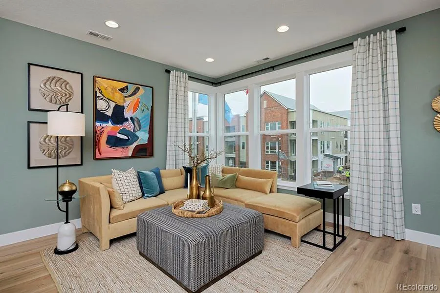 Corner unit with a second-story patio—this 4-bedroom AMP plan by Thrive Home Builders offers three-story living in Loretto Heights, Denver’s only all-electric community, with owned solar panels included.