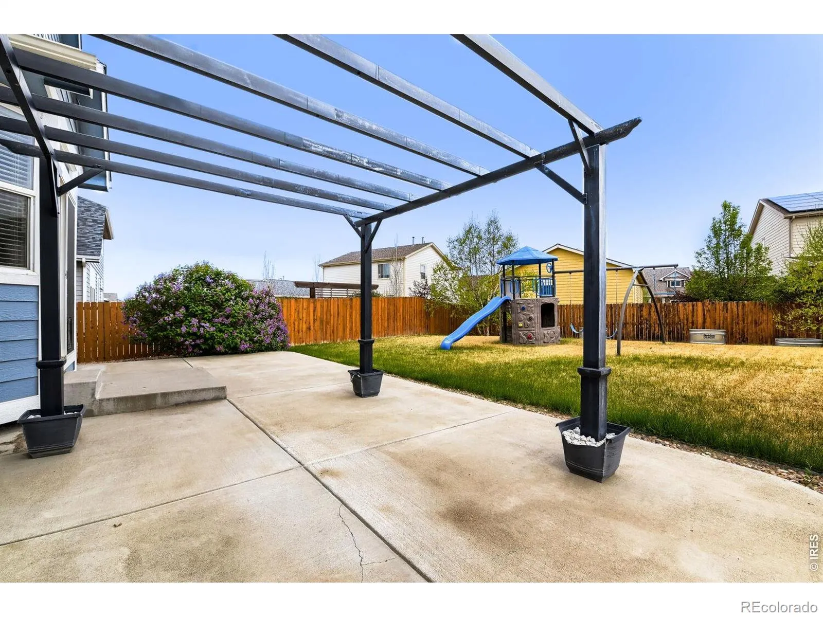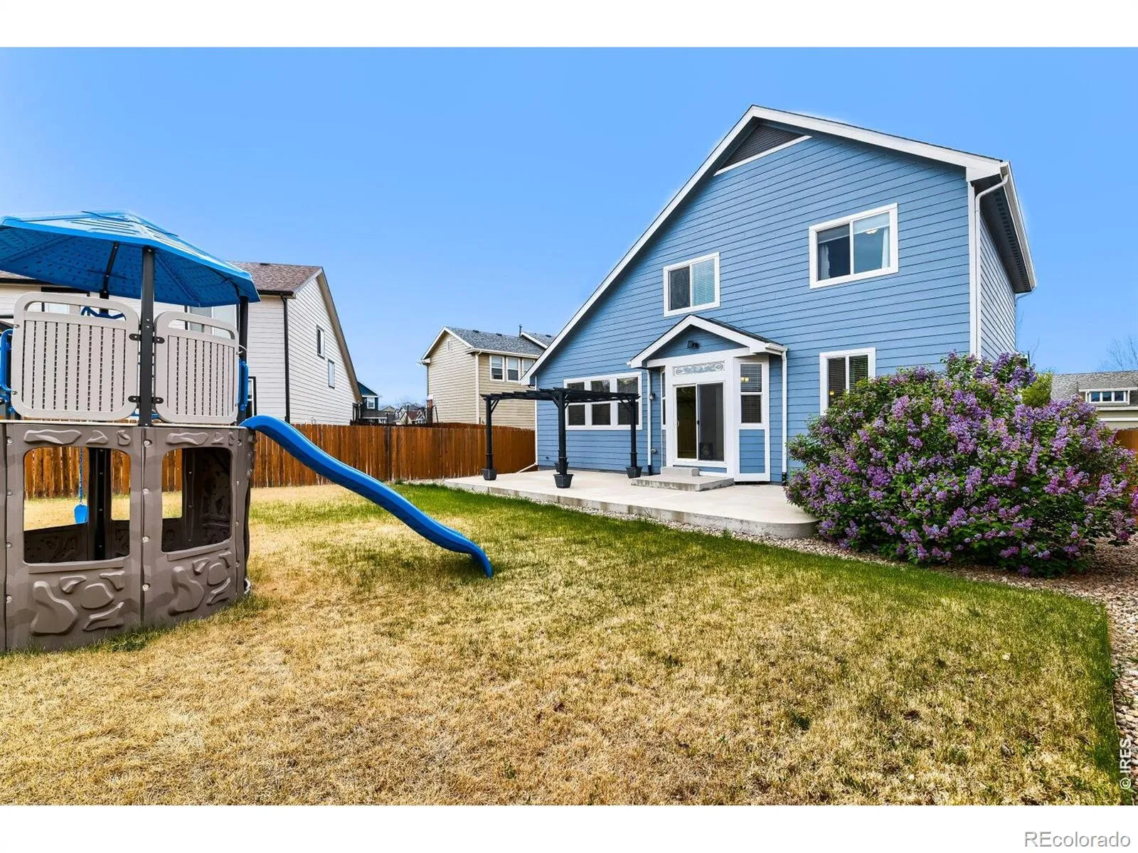 Lovely and inviting 3 bedroom, 2.5 bath, two story home in desirable Sharpe Farms subdivision.The main level boasts an open floor plan with an eat in kitchen with a large pantry and granite countertops, cozy living room with gas fireplace, laundry room with utility sink, and flex room. The flex room could be an office, separate dining room, craft room, etc. The upper level boasts 3 nicely sized bedrooms. The Primary Suite has a 5 piece bath with a barn door and walk in closet. The secondary bedrooms have closet shelving. The oversized garage provides ample room for vehicles, storage, or hobbies, and is already equipped with an outlet ready for an EV charger. The back yard has a large patio with a pergola and a play structure that stays with the home. This home offers a fantastic opportunity to get into a quiet neighborhood near parks, schools, shopping, and is convenient to I-25 and Highway 52 for commuting to Denver, Boulder, Longmont, and Northern Colorado.