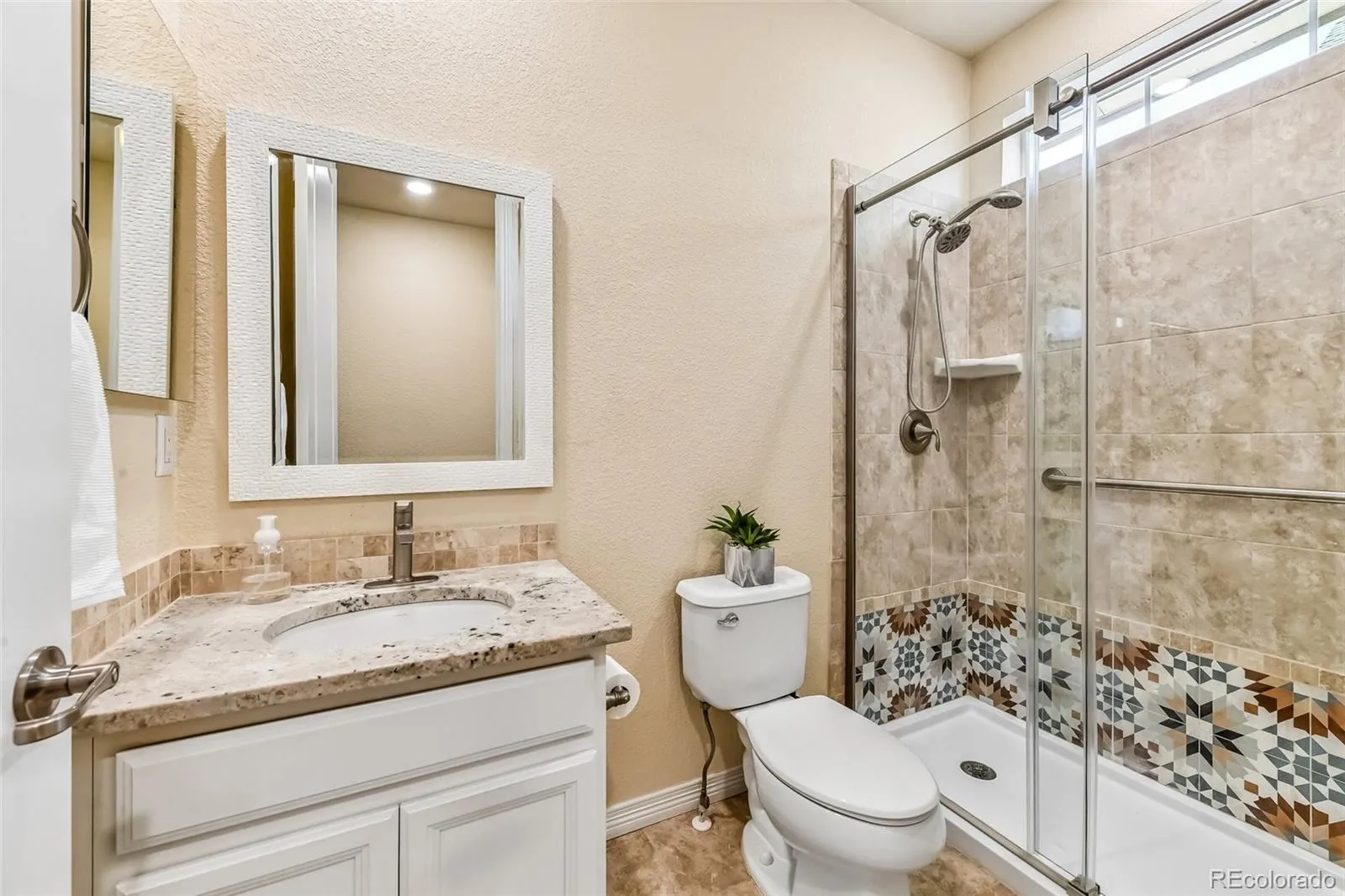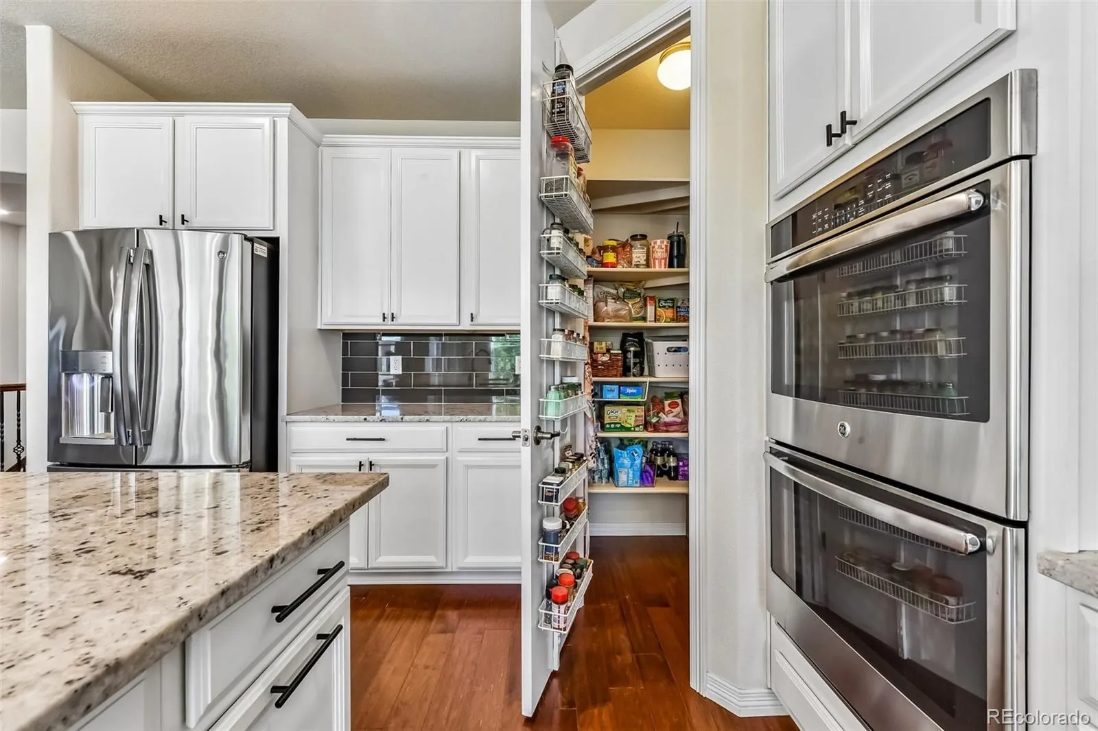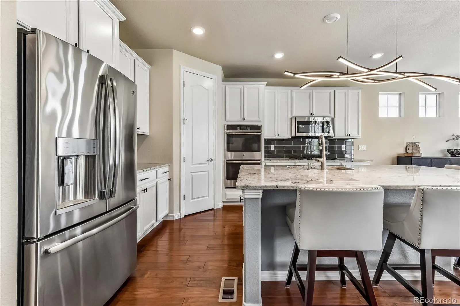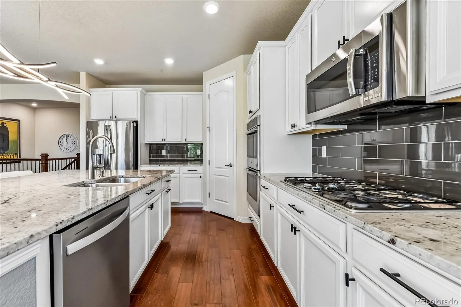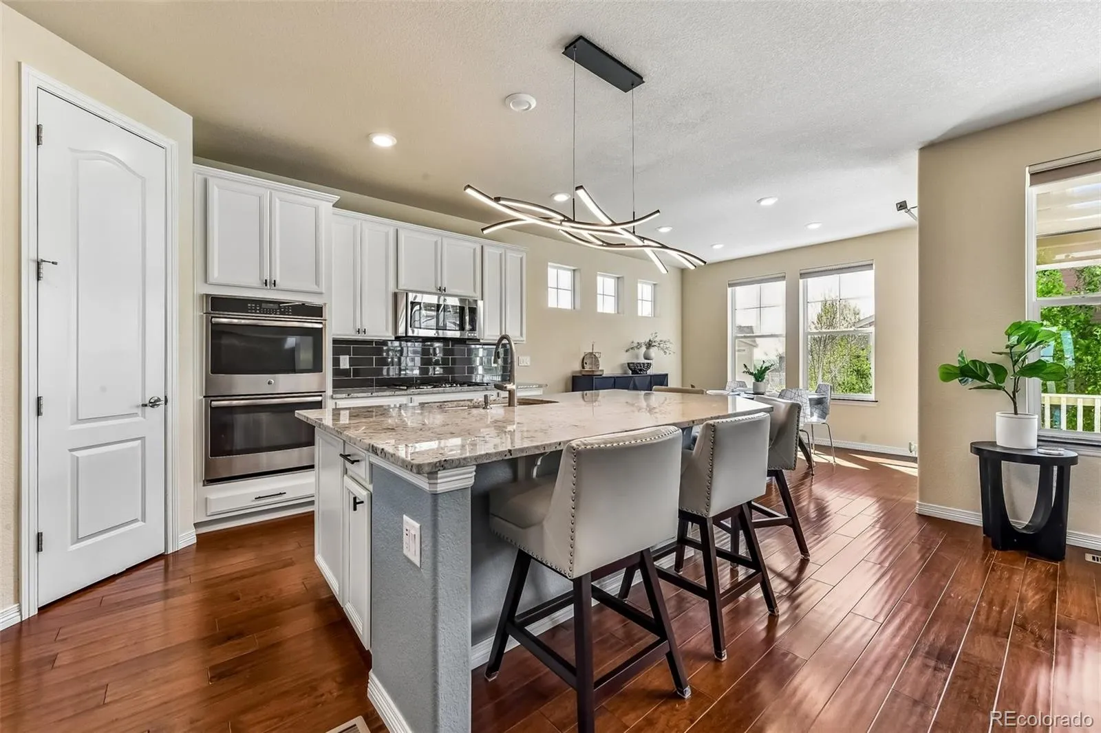Tucked into Lewis Pointe, this 3 bed, 3 bath ranch makes everyday living feel easy. The main level is bright and open, with tons of windows pulling in natural light and durable laminate wood floors throughout. The kitchen is set up for real life and real cooking—beautiful white cabinetry, granite countertops, stainless steel appliances, double oven, gas cooktop, a walk-in pantry, and a massive island with bar seating that naturally becomes the gathering spot. The dining area sits right off the kitchen and has ample room for a large table. The Kitchen flows right into the living room, making it easy to cook, eat, and hang out all at once—whether it’s weeknight dinners or a full house on the weekend. The primary suite feels like a retreat, with a spacious ensuite featuring a soaking tub, granite counters, and a large walk-in closet that conveniently connects to the laundry room. The main floor also includes a private office and an additional bedroom with a nearby bath featuring a glass-enclosed walk-in shower. The main floor is perfect for those looking for that open floorplan, as the high ceilings really make the home feel spacious. The finished walkout basement adds serious flexibility. The downstairs bedroom is oversized, with a huge walk-in closet and its own bathroom with a shower—ideal for guests or longer stays. The bonus room is gigantic, plenty of room for movie night, shuffleboard, ping pong or a dance party. There’s also an unfinished storage area, giving you plenty of room to keep things organized. Out front, a covered porch offers a quiet place to start or end your day. Out back, the setup is ready for Colorado evenings: an expanded deck with a retractable awning, plus a spacious concrete patio below complete with a fire pit and gas line for grilling. Features a 3-car garage. 30 min or less to Denver, Boulder and DIA. Shopping, dining, and parks are all very accessible and home is in Adams 12 school district. Come discover what you love, so much to see