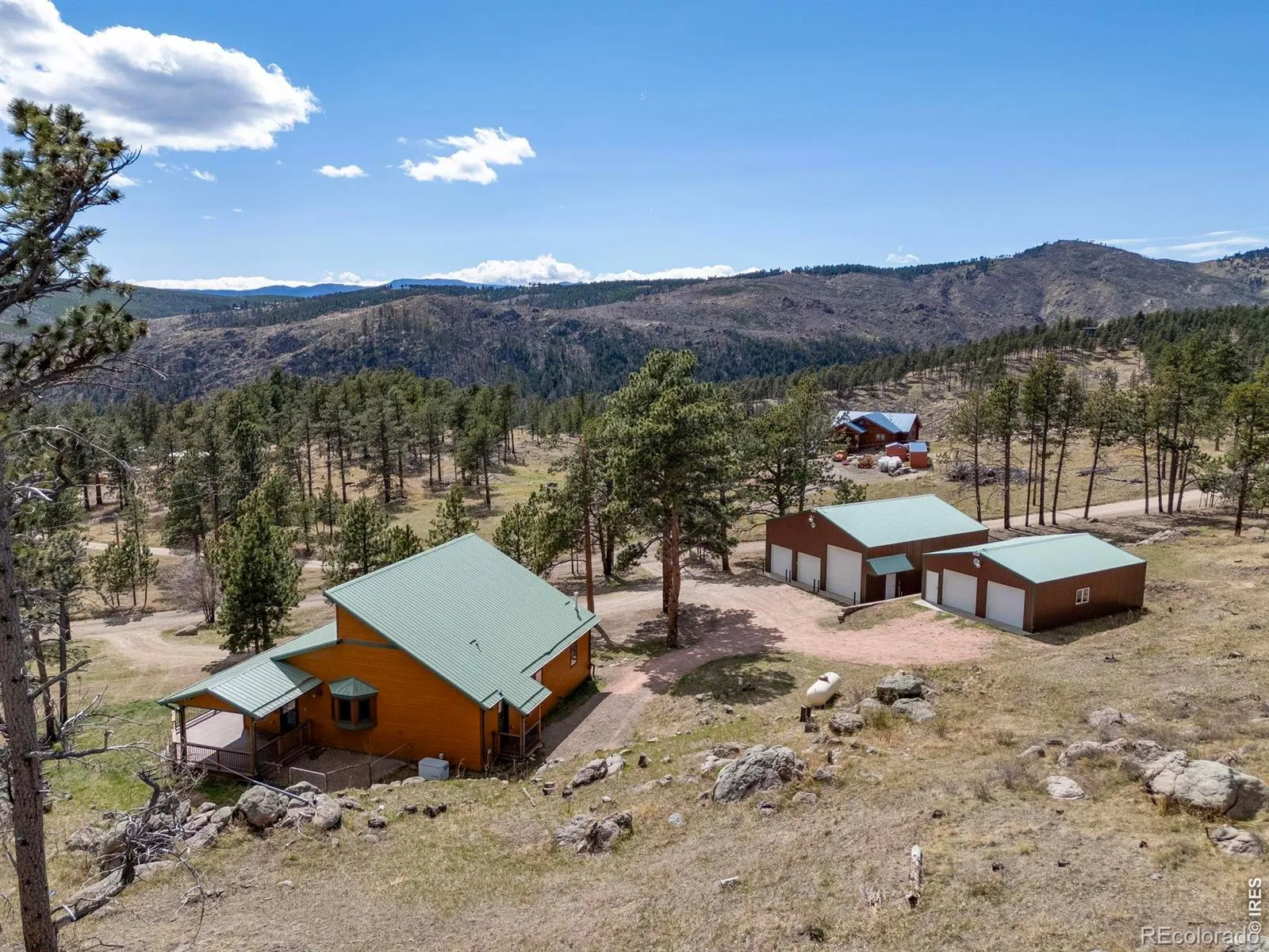 Stunning mountain home in Rist Canyon on a gently rolling 10 acre lot dotted with evergreens and rock croppings. Vaulted ceilings, open floorplan and abundant natural light from transom windows in the great room and floor-to-ceiling windows offering a 180 view. Enjoy over 800 sq ft of wrap-around deck including a covered portion stubbed for a propane grill or fireplace. Gourmet kitchen features soft-close cabinets, rolling shelves, double oven, bay window and granite counters. Main level includes three bedrooms plus a 100 sq ft bonus loft-perfect hideaway for kids or adults. Walk-out basement, new carpet and wood floors, water softener with cistern backup, Generac generator. Two insulated Cleary outbuildings on concrete pads, heated and electrified with garage door openers (two 9′ doors and one 12’x12′ door) and loft storage. A rare combination of privacy, views and ready-to-enjoy mountain living.