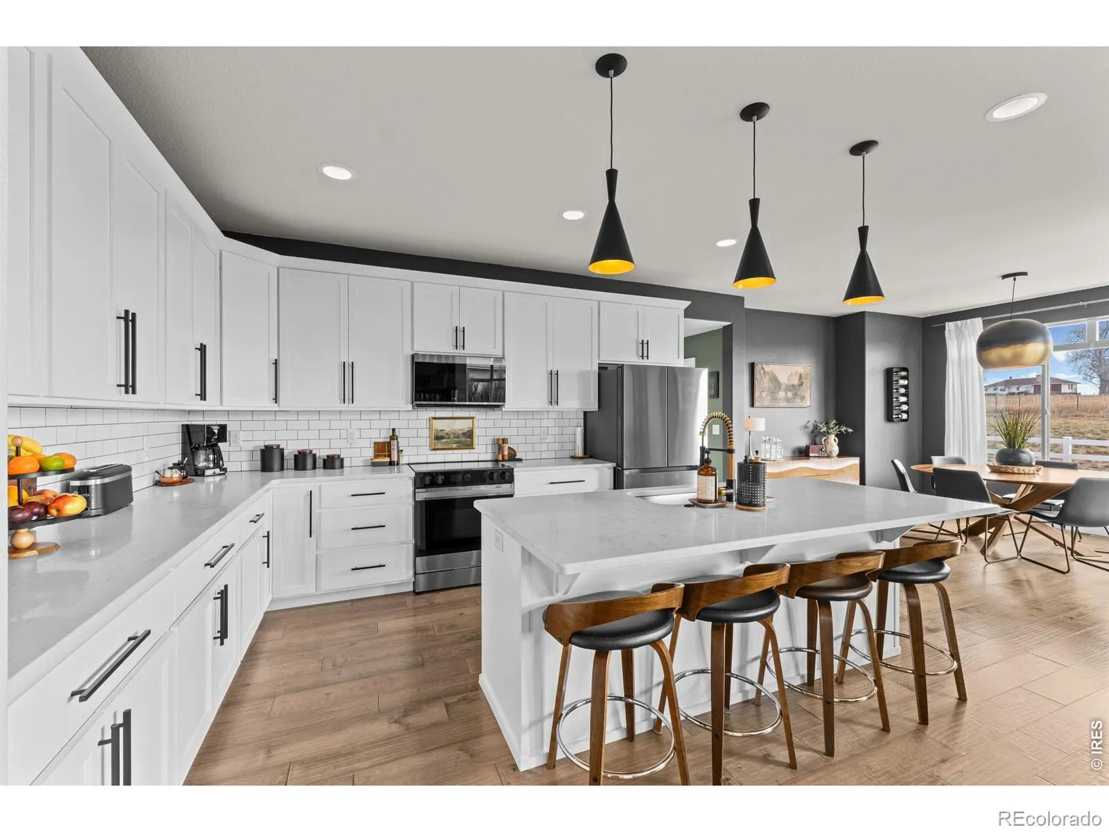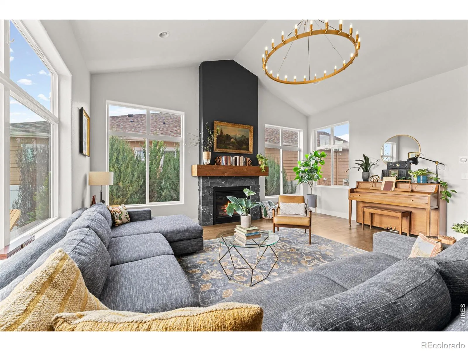 Welcome to 825 Shirttail Peak Drive. This impeccably maintained Windsor home offers 5 bedrooms, 4 bathrooms, and a 3-car garage, backing to open space with no HOA. A bright, open layout features a sunlit great room with vaulted ceilings and a gourmet kitchen with walk-in pantry, creating a space that feels both functional and inviting from the moment you step inside. Upstairs, the spacious primary suite serves as a true retreat with a five-piece bath, while two additional bedrooms with dual sinks and upper-level laundry add everyday convenience where it matters most. This home goes well beyond builder-grade with thoughtful upgrades throughout, including a custom fireplace by Pen & Scroll, upgraded lighting with digital dimmers, taller base trim, updated plumbing fixtures, and UV window filters. The kitchen has also been enhanced with upgraded appliances. Outside, the work is already done. Extensive landscaping, concrete walkways surrounding the home, front yard pavers, and an expanded rear pad behind the garage create a clean, finished outdoor space designed for both function and low maintenance living. Major systems have been addressed with a newer water heater, recently serviced HVAC, and professionally cleaned ductwork. Additional features include a Rachio smart sprinkler system, a Vivint security system with installed equipment, and a solar system with a transferable loan at $153 per month. For added peace of mind, the home is offered with a 1-year First American Eagle Premier Home Warranty.Backing to open space, free from HOA restrictions, and truly move-in ready with meaningful upgrades throughout, this is a rare opportunity in Windsor.
