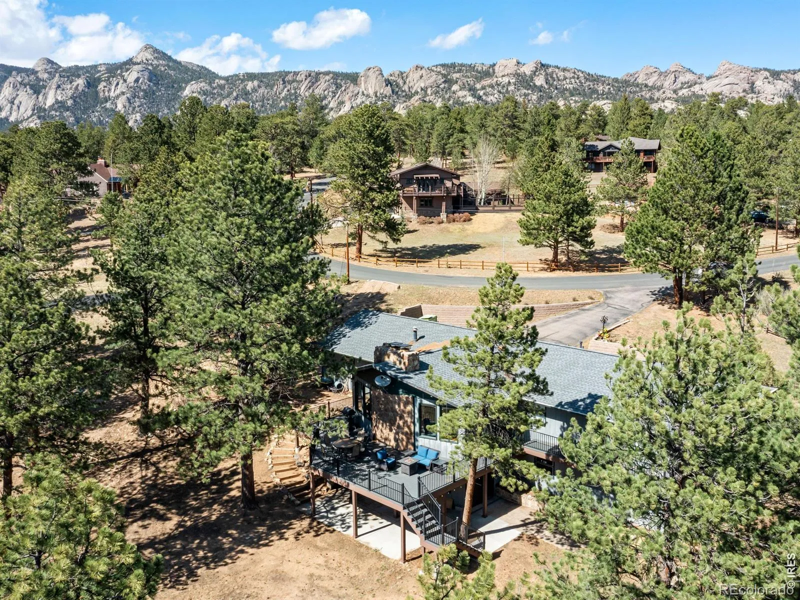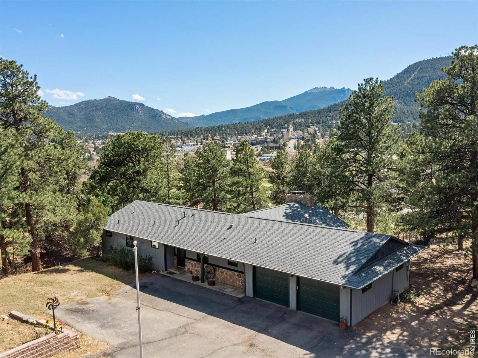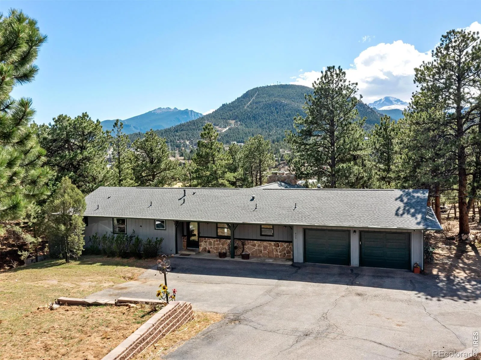 Set on 1.44 wooded acres in the desirable Stanley Heights neighborhood, this south-facing 5-bedroom home captures sweeping views of Longs Peak and the surrounding mountains-all just a short distance from downtown Estes Park. With sunlight pouring in throughout the day and a peaceful setting among the trees, this home offers a rare balance of privacy, space, and convenience.The open floor plan is designed for gathering, featuring a vaulted great room with a moss rock fireplace, a beautifully updated kitchen, and an easy flow to expansive decks and outdoor living spaces.The walkout lower level provides a large rec room, additional bedrooms, and flexible space for guests, hobbies, or work-from-home needs. The primary suite offers a comfortable retreat with an updated bath and generous closet space.Outdoor living shines with wraparound decks, a lower patio, and a firepit-perfect for enjoying cool mountain evenings and star-filled skies. The 1.44-acre lot offers great parking, including space for an RV, along with a 2-car garage with workshop area.With over 3,800 square feet, a versatile layout, and a setting that blends mountain feel with in-town convenience, this home delivers the Estes Park lifestyle buyers are looking for.
