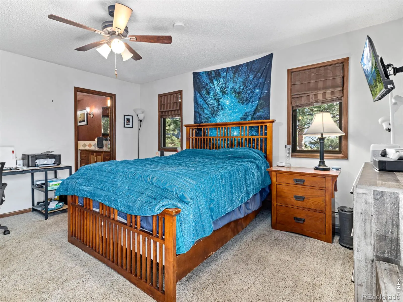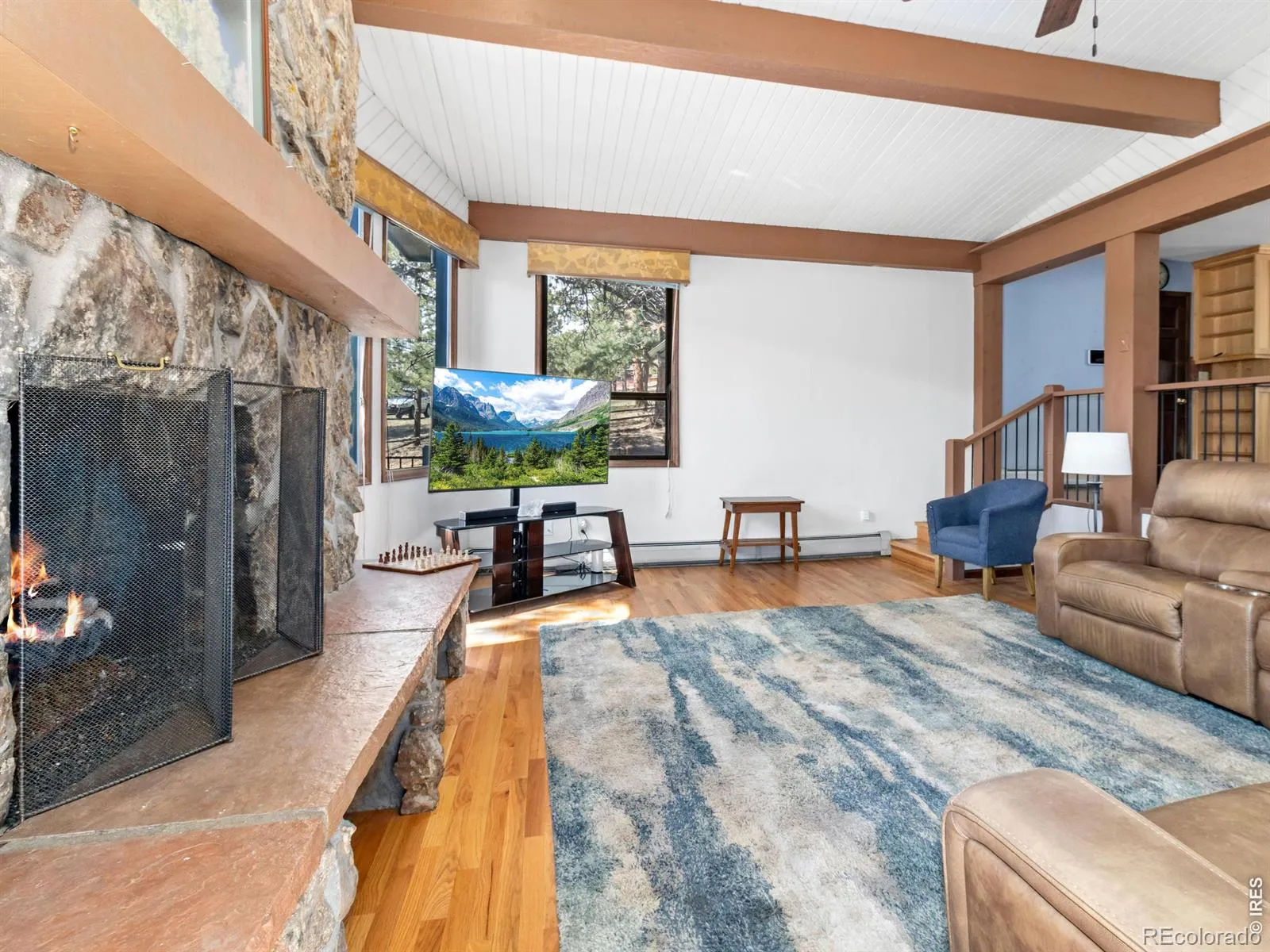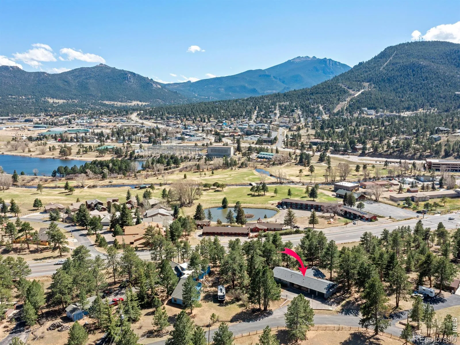 Set on 1.44 wooded acres in the desirable Stanley Heights neighborhood, this south-facing 5-bedroom home captures sweeping views of Longs Peak and the surrounding mountains-all just a short distance from downtown Estes Park. With sunlight pouring in throughout the day and a peaceful setting among the trees, this home offers a rare balance of privacy, space, and convenience.The open floor plan is designed for gathering, featuring a vaulted great room with a moss rock fireplace, a beautifully updated kitchen, and an easy flow to expansive decks and outdoor living spaces.The walkout lower level provides a large rec room, additional bedrooms, and flexible space for guests, hobbies, or work-from-home needs. The primary suite offers a comfortable retreat with an updated bath and generous closet space.Outdoor living shines with wraparound decks, a lower patio, and a firepit-perfect for enjoying cool mountain evenings and star-filled skies. The 1.44-acre lot offers great parking, including space for an RV, along with a 2-car garage with workshop area.With over 3,800 square feet, a versatile layout, and a setting that blends mountain feel with in-town convenience, this home delivers the Estes Park lifestyle buyers are looking for.