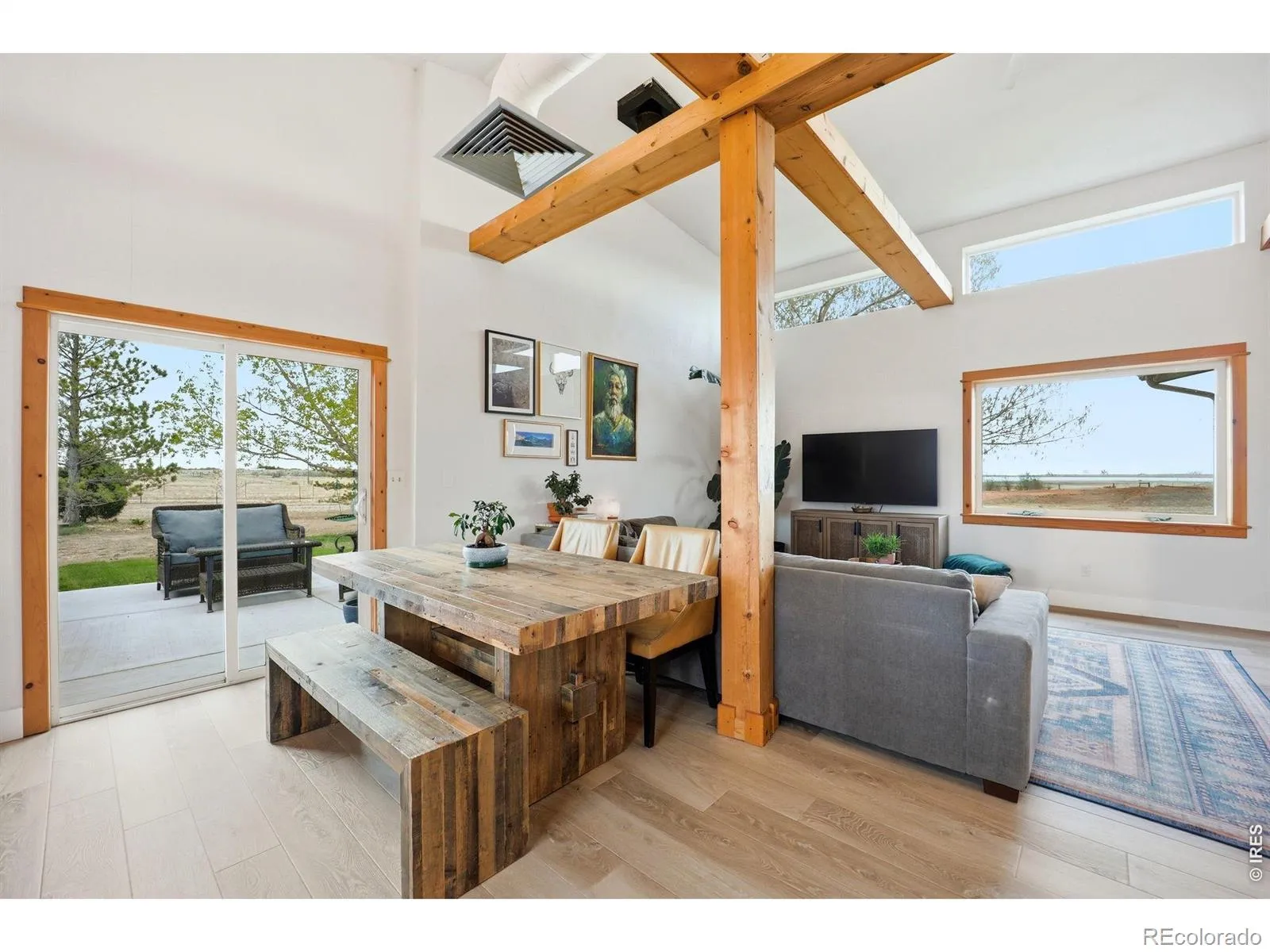 Set on 40 private acres just 15 minutes from North Old Town Fort Collins, this one-of-a-kind property offers a rare blend of space, water, and accessibility. With nearly a quarter mile of private lake frontage, you’ll enjoy your own sandy beach and non-motorized reservoir access. The 4-bedroom, 3-bath home features a thoughtfully designed layout, highlighted by a brand new 3-bed, 2-bath addition completed in 2023. Every bedroom features its own walk-in closet. The original home has also been updated with new floors, paint, and a kitchen remodel. An in-ground sprinkler system was just installed, and mature trees provide shade and beauty. Two massive, insulated shops add significant versatility and value. Each contains a finished area – an office and a home gym. The lower shop makes a great garage and has doors on both ends. The upper shop is equipped with an oversized garage door, second-level storage, and a new wood-burning stove. It also has two stall doors and a horse waterer near the covered outdoor area. There’s a finished “she shed” for additional flex space and a deck platform in the field, great for watching fireworks in the surrounding towns on 4th of July. A well-established lavender field with drip irrigation adds both beauty and charm, while blazing-fast Starlink internet ensures you stay connected (often over 200mbps). The home also has a beautiful outdoor shower for rinsing off after the beach or chores on the farm. Easy access to town, I-25, and 287 keep you close to where you need to be, but enjoying the benefits of space and privacy. The home is on a private road with friendly neighbors. You’ll see incredible sunrises, sunsets and stars every day. Wildlife sightings are daily – deer, pronghorn, bald eagles, sandhill cranes to name a few. This is Colorado living at its finest. (For clarity, the main home offers 2,351 finished sq ft, the home gym is 210 sq ft and the office is 210 sq ft, bringing the total finished square footage to 2,771 sq ft.)
