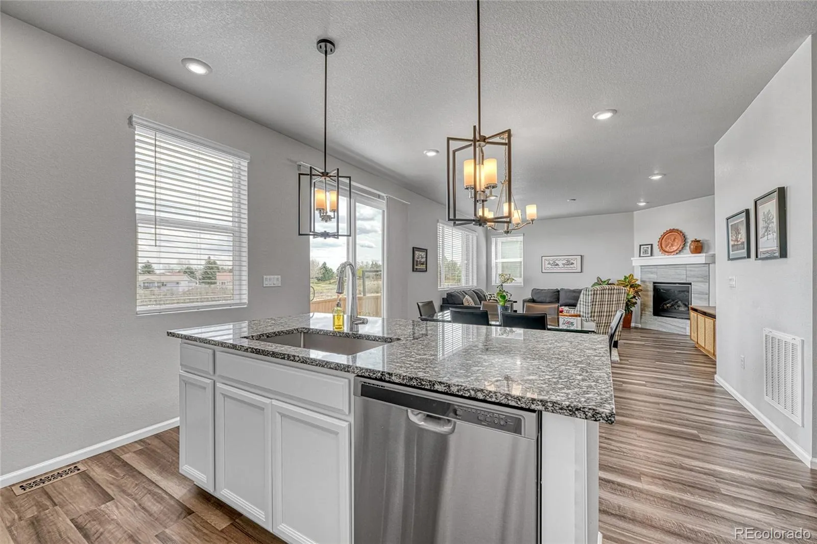You will love the location of this beautiful Meritage 2-story home located in a cul-de-sac backing to open space * Wonderful appointments with bright, open spaces and neutral color scheme throughout * As you walk through the front door, you will find a flex space/formal living/office room to the left * Engineered vinyl plank flooring in the hallway, kitchen, and great room * Lots of cabinet space in the kitchen with granite countertops, white cabinetry, center island with country style stainless steel sink, pantry, and Stainless Steel Whirlpool appliances * Cozy great room with corner gas fireplace * A half bath with tile flooring and quartz top vanity rounds out the first floor. Enjoy the peaceful backyard setting where you can occasionally view wildlife * Professional landscaped low maintenance back yard includes over $50K in updates including a stamped concrete patio, electric sun shade, perennials, and custom window well covers * The second floor features a great loft area that can be used as a flex space, office/study area, tv room * The primary suite features an ensuite to include a soaking tub, separate shower, white cabinetry vanity with two sinks, white quartz countertop, and a large walk-in closet * There are two secondary bedrooms, a full bath with tile flooring and white quartz countertop with white cabintry, as well as a large laundry room with space for additional storage. The full, unfinished basement is waiting for your personal touch. Two-car garage features a workspace area. This is the home you’ve been waiting for! Many amenities are close for your convenience! Just 5 minutes to the Terrain Swim Club, 7 minutes to downtown Castle Rock, and less than 5 miles to I-25!