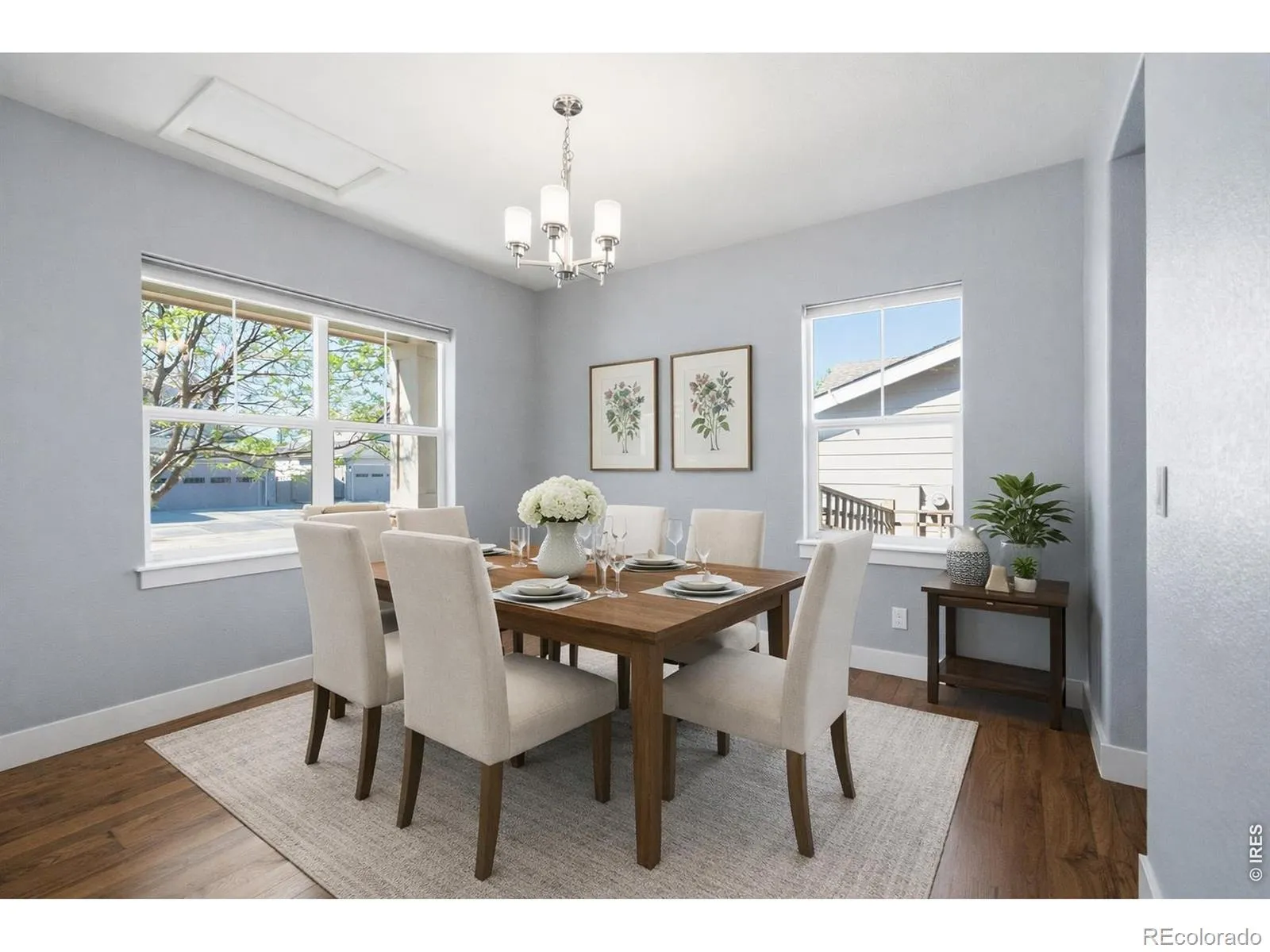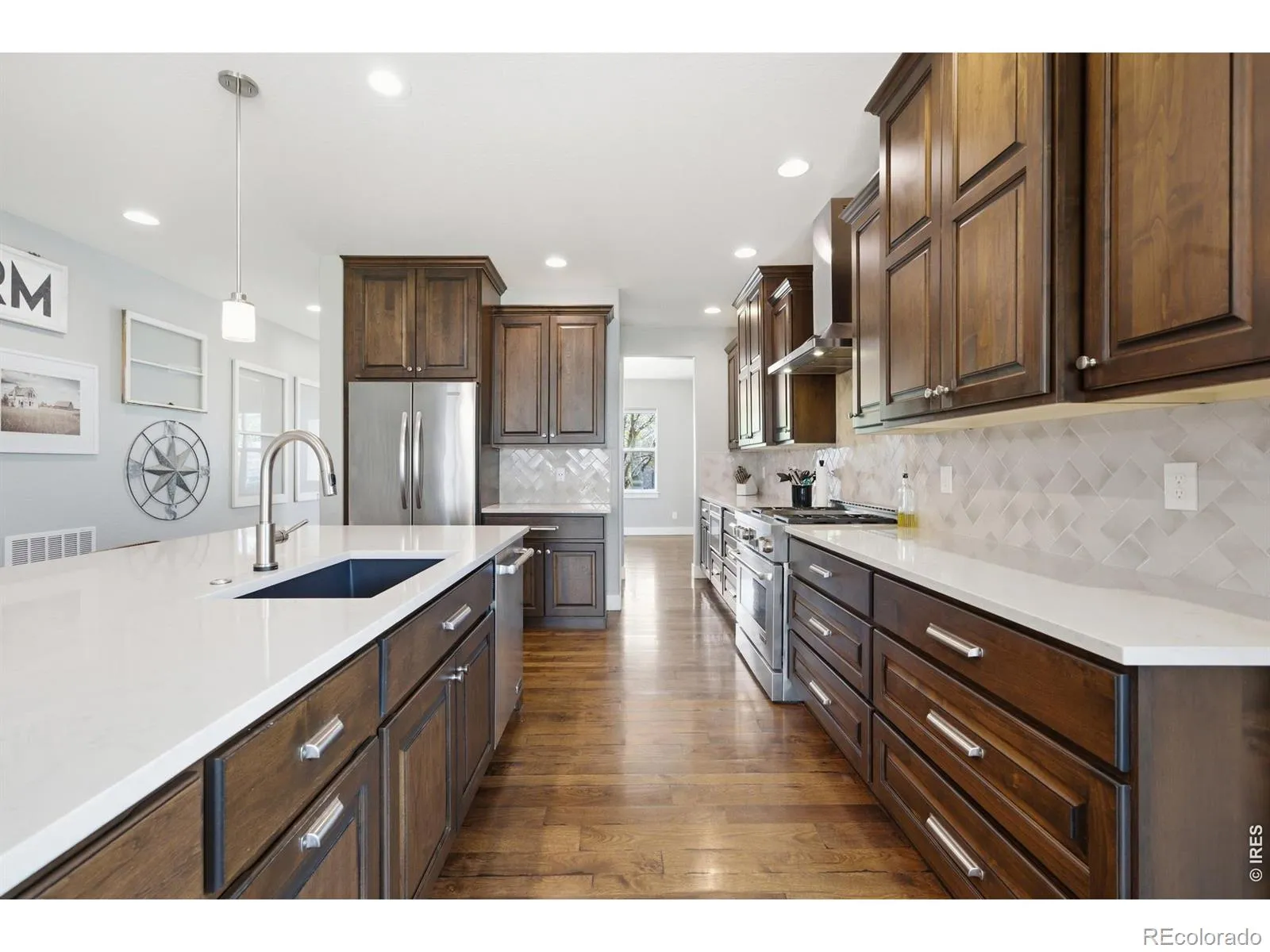 Welcome to McClelland Creek-where thoughtful updates, quality finishes, and a highly functional layout come together in one of Southeast Fort Collins’ most sought-after neighborhoods. Step inside and you’re greeted by an open, expansive main level that’s easy to live in and perfect for entertaining. Real hardwood flooring runs throughout the primary living areas, and the layout flows seamlessly from the foyer into the living room and a truly standout kitchen. Designed with intention, the kitchen features custom Tharp cabinetry, a massive 10-foot island with quartz countertops and storage on both sides, and a high-end appliance package including a Jenn-Air gas range with skillet inlay and oversized oven, Jenn-Air dishwasher with a steel liner, and a Bosch microwave. A walk-in pantry and adjacent formal dining space make it as functional as it is beautiful. Upstairs offers a spacious loft, two additional bedrooms, and a well-appointed primary suite with a tray ceiling, large walk-in closet, and private en-suite. Laundry is conveniently located on this level, and you’ll find brand new carpet throughout the upstairs, stairs, and main floor office. All bathrooms have been refreshed with quartz countertops and undermount sinks, along with a new glass enclosure in the primary bath. The finished basement adds even more flexibility with a large rec room, a generous fourth bedroom, a full guest bath, and ample storage. Major systems have been thoughtfully maintained, including a brand new water heater and an upgraded tri-zone HVAC system for customized comfort on every level. Outside, enjoy both a covered front porch and covered back patio, along with updated landscaping. The tandem three-car garage offers flexibility for vehicles, storage, or a workspace. All just minutes from Twin Silo Park, Harmony’s shopping and dining, top-rated schools like Zach Elementary, and quick access to I-25. A home that truly checks the boxes-and then some.