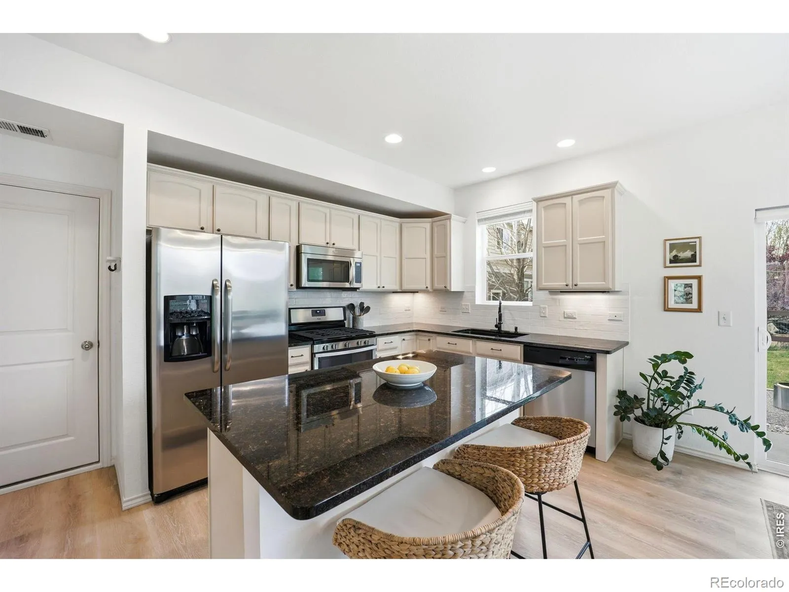 Charming two-story home just minutes from Old Town Fort Collins, offering comfort, functionality, and a great space for entertaining. This 3-bedroom, 3-bathroom home features an inviting open floor plan that seamlessly connects the living room to the kitchen and dining area, creating an ideal setup for both everyday living and hosting. Beautiful vinyl plank flooring runs throughout the main living spaces, and the sliding glass door in the kitchen allows lots of natural light throughout the home. Step outside to a spacious yard complete with a patio and fire pit area – perfect for relaxing evenings or gathering with friends and family. The primary bedroom upstairs has beautiful mountain views outside the window, allowing you to enjoy peaceful mornings and stunning Colorado sunsets from the comfort of your own space. The homeowners have made significant upgrades over the last few years, including new high-durability vinyl plank flooring throughout the main level, upstairs laundry, and bathrooms. All bathrooms also have new lighting and hardware. The primary bathroom also has a newly tiled shower and an upgraded double-sink vanity. The exterior paint is new as well. Clubhouse with access to exercise facility is included in the HOA. With its thoughtful layout, new upgrades, and desirable location just a few miles from shopping, dining, and entertainment, this home truly offers the best of Fort Collins living.
