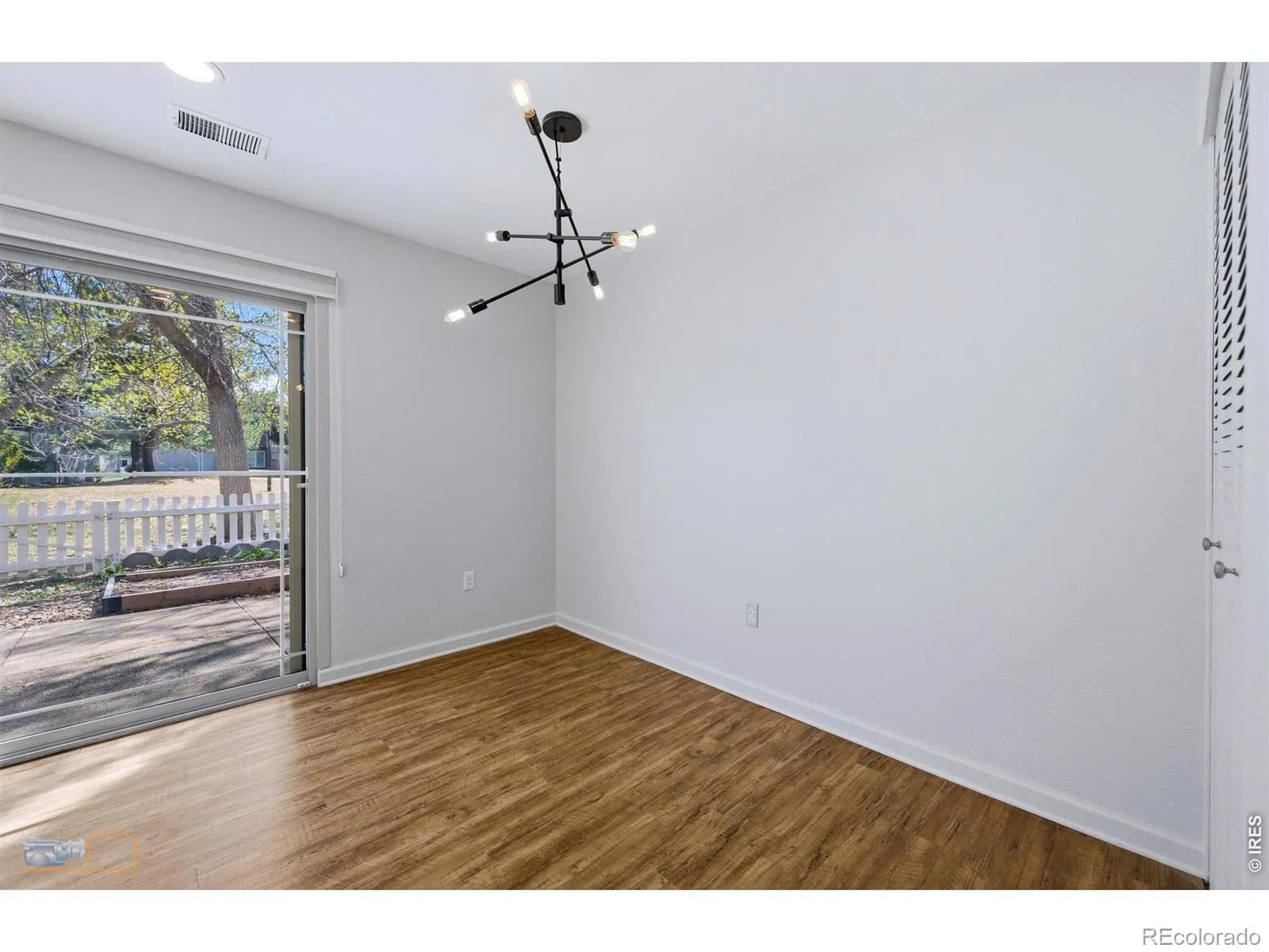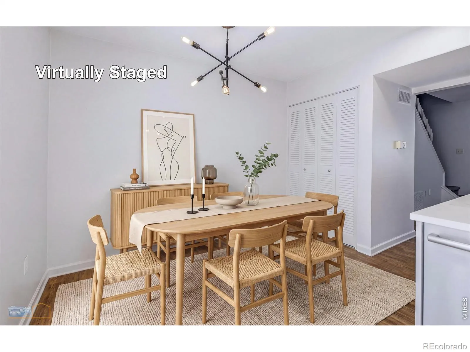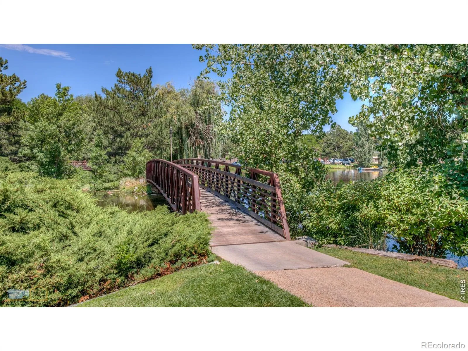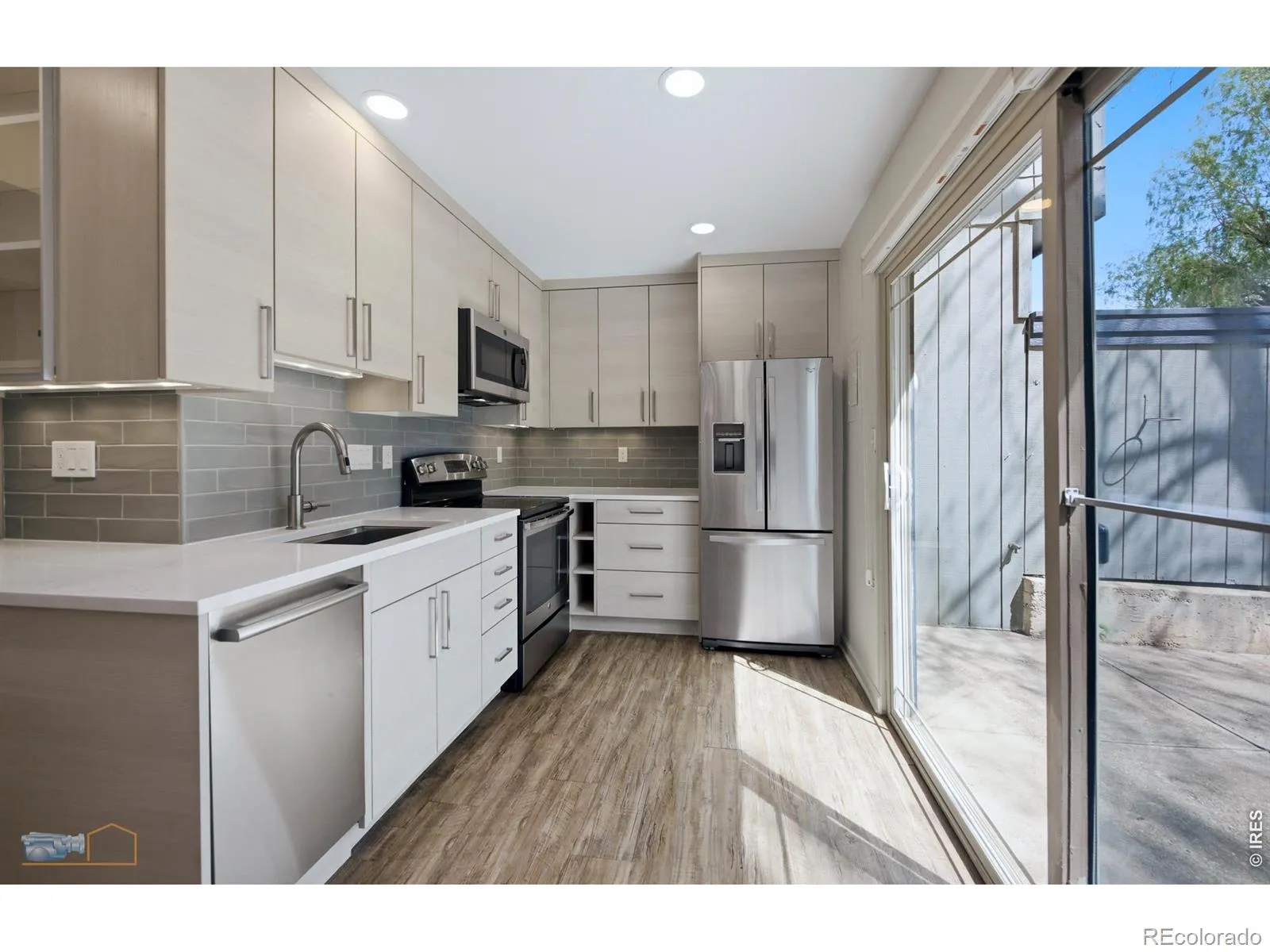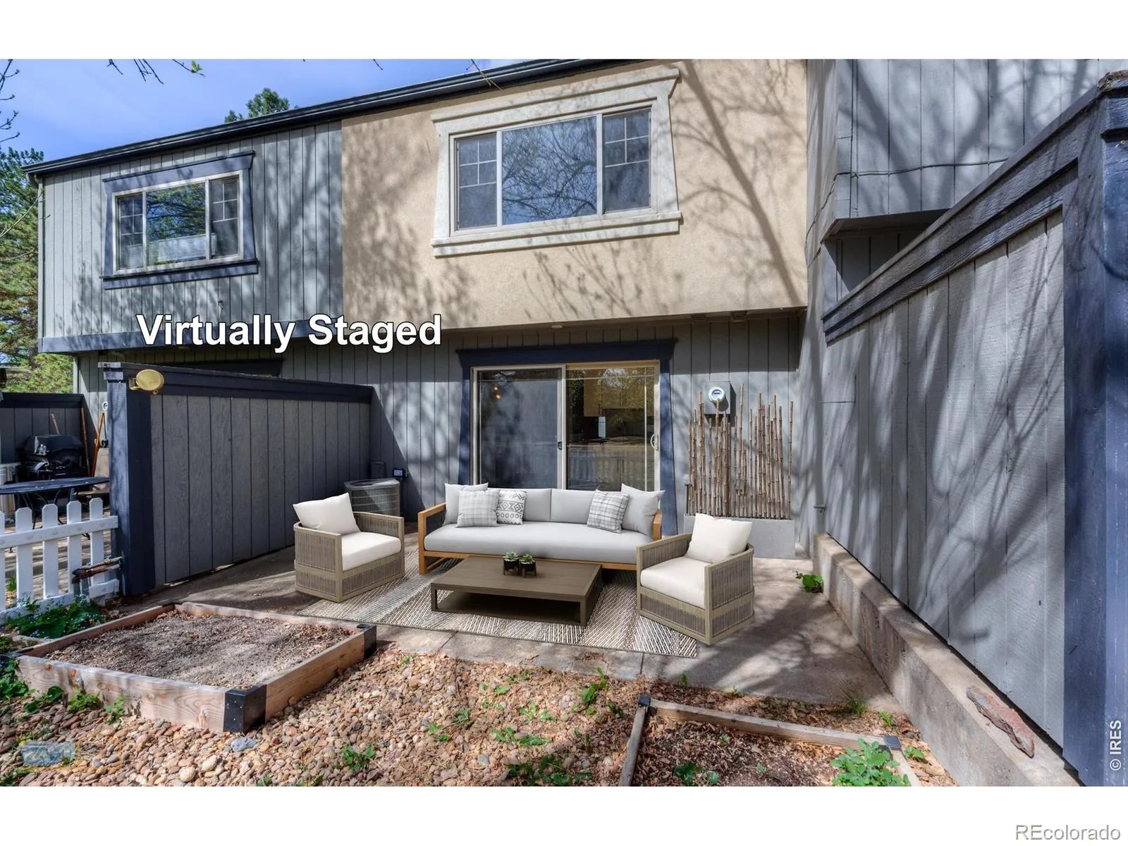 BACKS TO COMMUNITY OPEN SPACE! Nothing to do but move in! Lovely remodeled Tantra Lake townhome-style-condo w/ fenced patio, garage, & reserved parking space! Aluminum wiring pigtailed; popcorn ceilings mitigated; fresh interior paint throughout; newer flooring throughout. Entry foyer has coat closet & leads to spacious living rm. w/ picture window. Open plan features updated kitchen & dining areas w/ stainless appliances, quartz countertops, stylish cabinets (including glass front display area), brushed nickel hardware, glass tile backsplash, & modern lighting. Sliding door to private patio/yard allows easy access for entertaining/gardening – perfect for outdoor dining. Newer full-size stackable washer/dryer is located within remodeled powder room. Additional storage is located under the stairs. Upper level includes large primary BR w/ large closet & sliding dr. to deck, bright 2nd BR, remodeled full bath & expansive linen closet. Exceptional location near trails, lake, bike path, CU South Campus open space, bus/Park-N-Ride, shopping & restaurants. Includes access to clubhouse/exercise room-tennis/common parks.