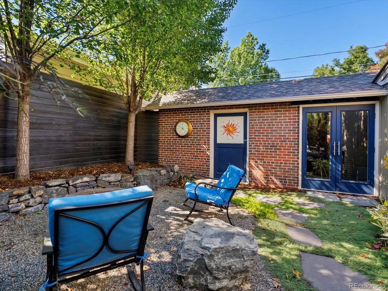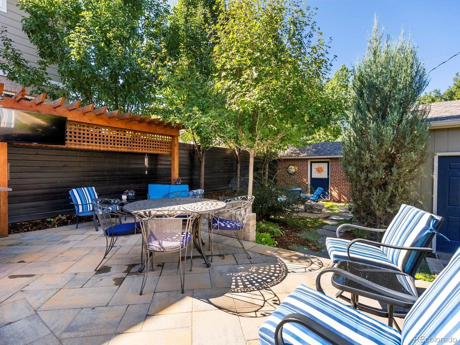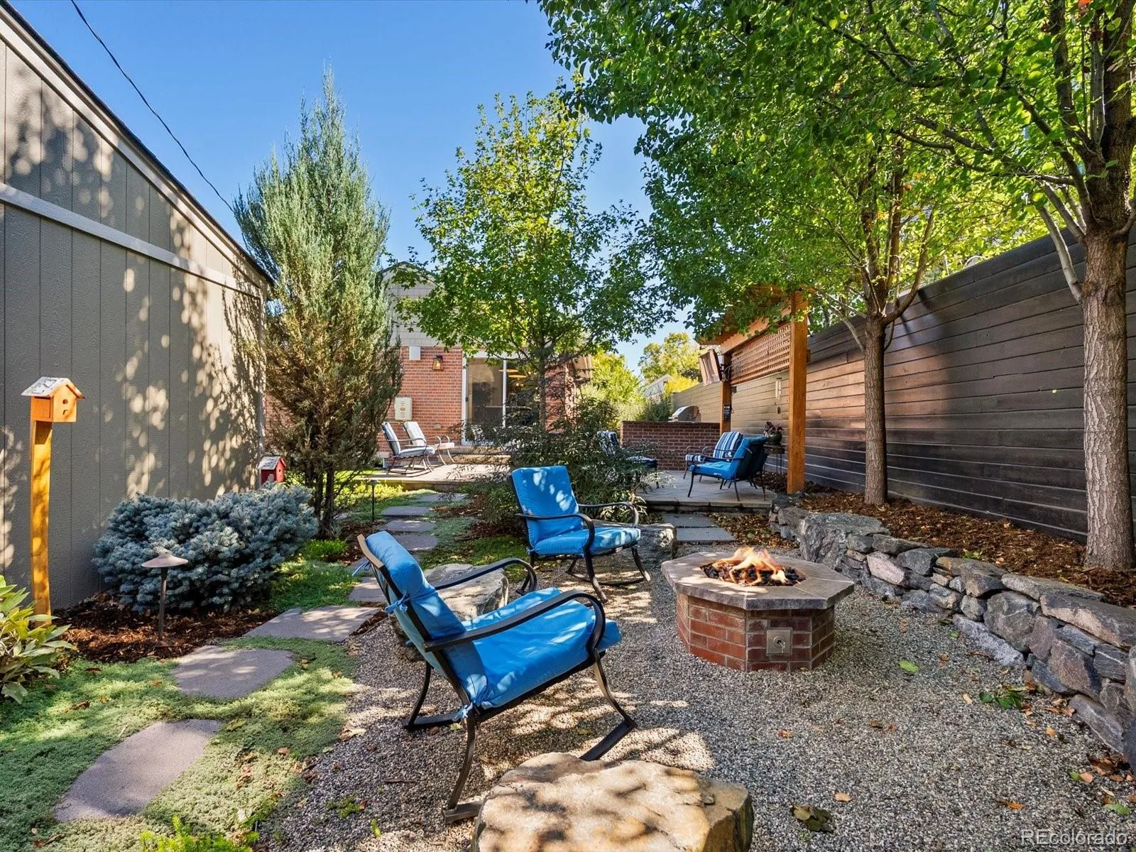 Outside, a professionally designed yard by landscape architects is a showstopper, featuring a built-in outdoor kitchen, gas fireplace, mounted TV, and multiple seating areas for year-round enjoyment. The beautiful water-wise front yard blooms from spring through fall, adding vibrant curb appeal, while a dedicated grass area offers space for pets or play. Adding an unforgettable touch, the property includes a beautifully preserved historic trolley ticket station, ideal as a studio, office, or guest space. Fully curated for comfort and style, this home also offers fully owned solar for ultra-low utility bills, a 2023 Class 4 shingle roof, a 2-car garage with built-in storage, plus an additional off-street parking spot—all in the highly sought-after Park Hill neighborhood.