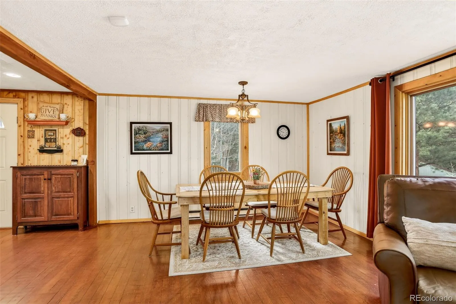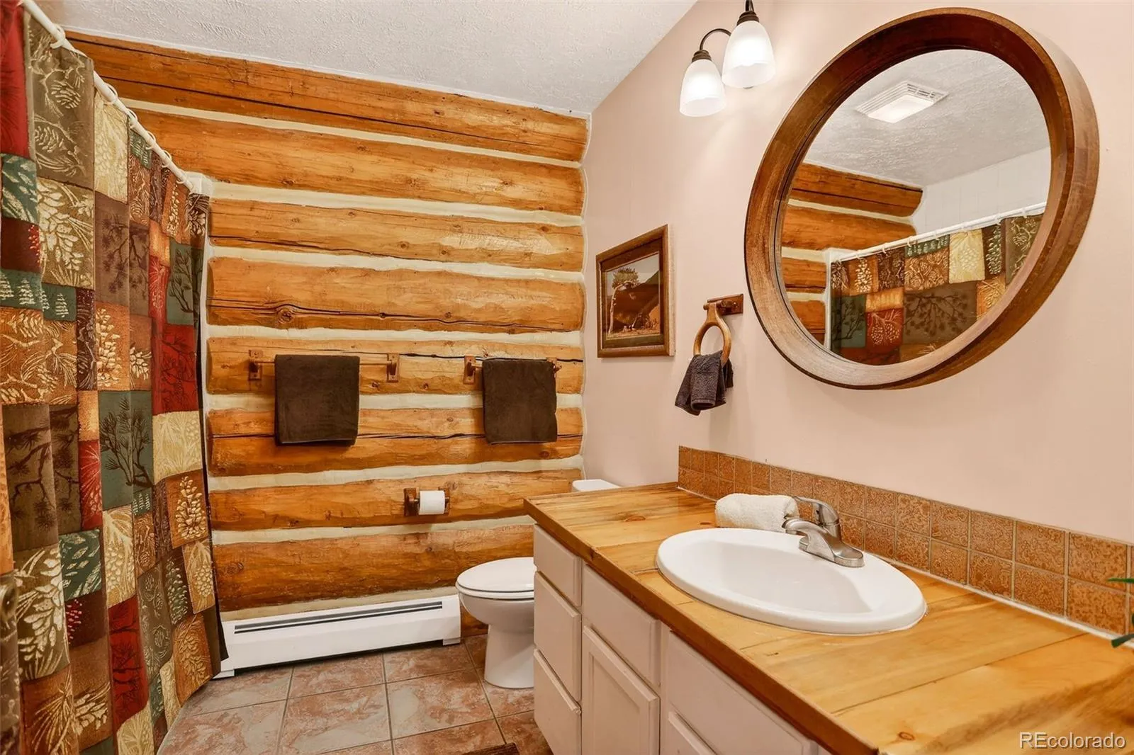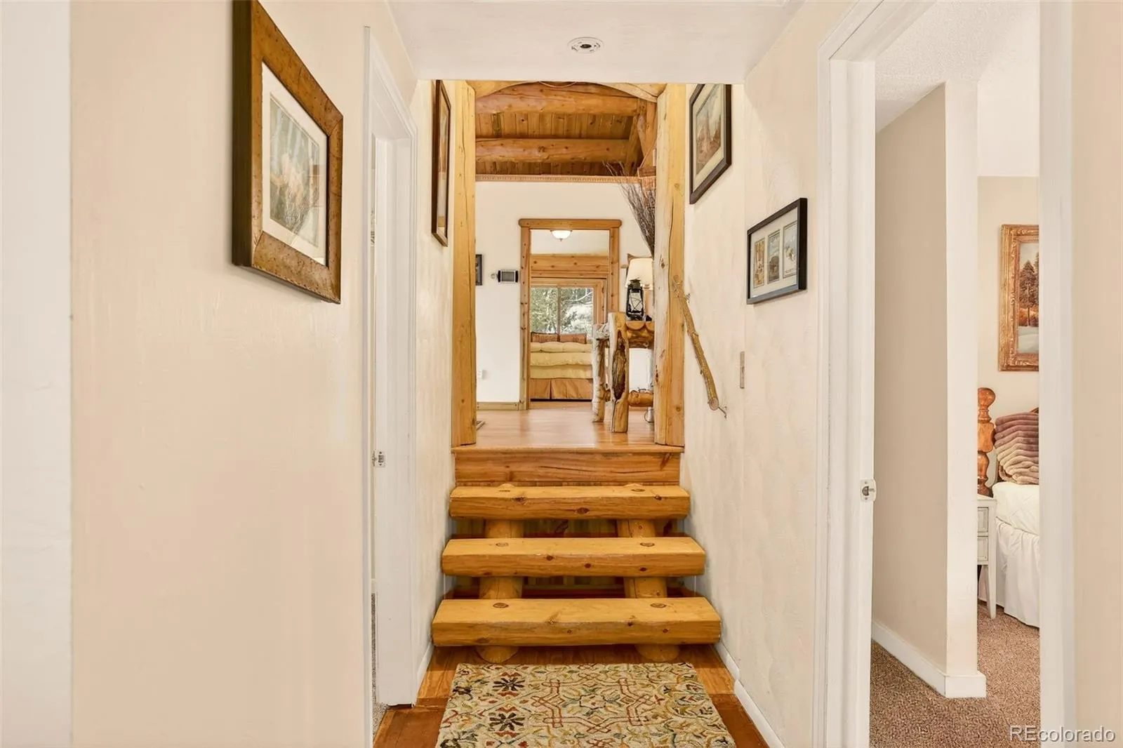 Step into the stunning 1982 hand-hewn imported log cabin addition, where soaring vaulted ceilings, massive logs, and extraordinary architecture create unforgettable living space. The spacious living room offers a deck, expansive picture window, and wood-burning stove for the perfect Colorado ambiance.