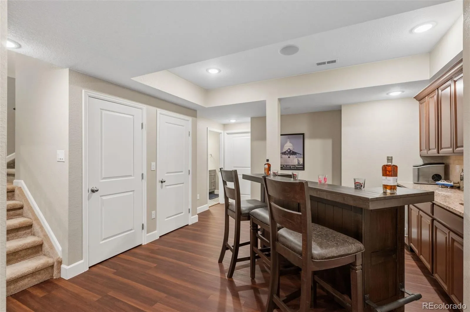 This is where thoughtful design meets real life functionality, an elevated Castle Rock home that adapts to you, not the other way around. Thoughtfully maintained, the home welcomes you with a calm, confident presence. Just off the entry, a dedicated office space that feels dialed in and distraction free, perfect for focus and flexibility as life shifts. The main level flows effortlessly. Open, inviting, and designed for connection. Whether it’s quiet mornings with coffee or a full house on a Saturday night, the layout moves with you, not against you. The mudroom just off the garage keeps everything in its place, while the oversized 3-car garage with epoxy flooring adds function and polish. Upstairs, the home settles into its rhythm. Four bedrooms are positioned alongside a cozy loft-style space, ideal for relaxing or creating a secondary living area. Three bathrooms serve the upper level, including a private ensuite, while the conveniently located laundry room keeps routines simple. Downstairs, the finished basement offers a different experience. With an additional bedroom and bathroom, plus a built-in bar, this level is ready to host, unwind, or transform into a theater, gym, or guest retreat. Step outside and the lifestyle continues. Turf in both the front and backyard keeps maintenance low, while the hot tub adds comfort for every season. Behind the scenes, dual-zone climate control with a newer HVAC and furnace system keeps comfort dialed in. Just beyond your front door, the lifestyle expands. Located within the Terrain community, you’ll have access to miles of scenic trails, a dog park, and neighborhood parks including Wrangler Park with tennis courts, playgrounds, and open fields. Ravenwood Park offers sweeping views of McMurdo Gulch and the Rocky Mountains, along with its hillside slide. The clubhouse and swim club provide spaces to gather and connect. All just minutes from I-25, with access to dining, shopping, Douglas County schools, and outdoor recreation.