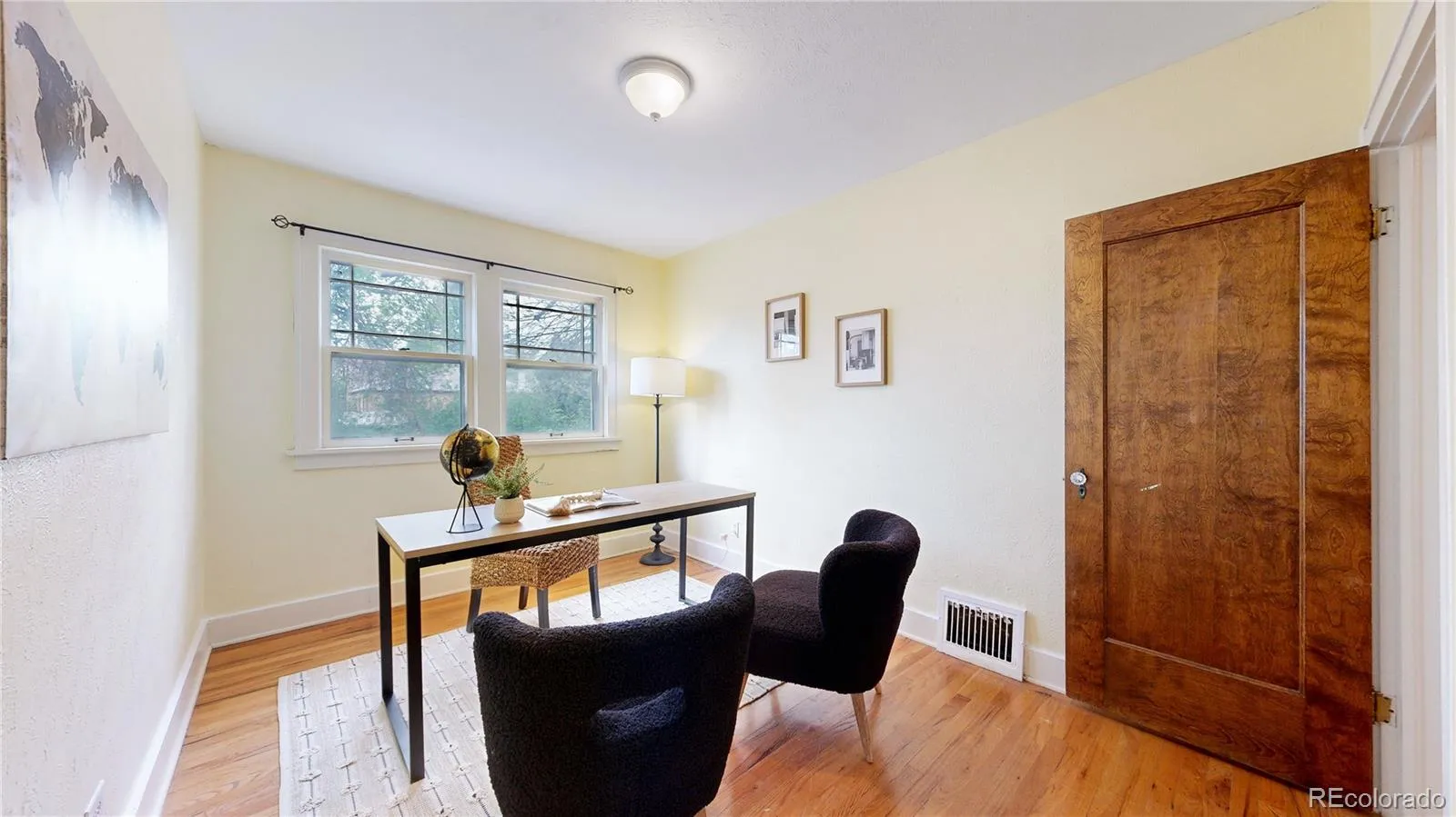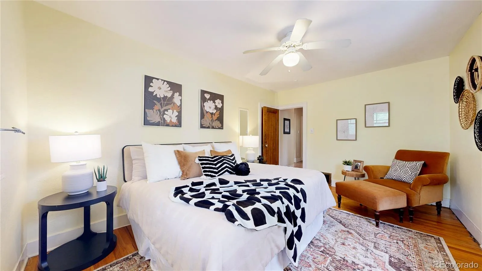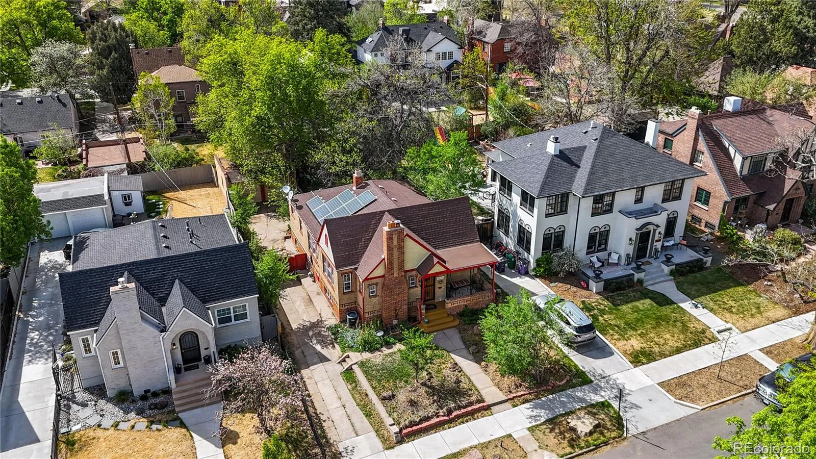 Wow! Great home with 3 bedrooms on the main floor with a bonus 4th bedroom/office in the basement. Gorgeous hardwoods throughout the main. Light and bright. Hard to find large formal dining and cozy family room complete with fireplace welcome you home. Primary bathroom recently remodeled. Completely finished basement doubles your living space and boasts of large great room, office/bedroom, nice full bath, laundry and bonus storage areas. Amazing location, easily walk/bike to Parkhill Elementary, City Park, restaurants, music! Environmentally friendly – assumable solar, electric vehicle ready, xeriscaped. New sewer line, water heater, and carpet. Buyer to verify all.