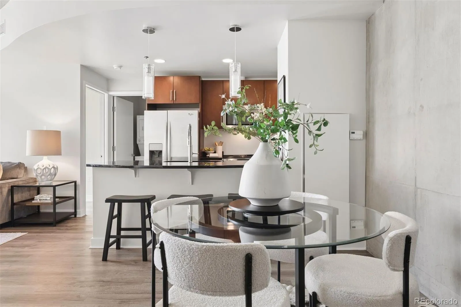 An Exceptional Downtown Denver Residence Offering A Rare Blend Of Architectural Sophistication And Elevated Urban Living. Framed By Dramatic Floor-To-Ceiling Glass, This Light-Drenched Home Captures Breathtaking Panoramic City And Mountain Views, While Exposed Concrete And Sculptural Curved Lines Create A Refined, Gallery-Like Aesthetic. The Designer Kitchen Is Both Striking And Functional, Featuring Rich Hardwood Floors, Sleek Stainless Steel Appliances, Polished Granite Surfaces, And A Statement Island Perfect For Entertaining. The Private Owner’s Retreat Feels Like A Boutique Hotel Escape, Showcasing Serene Ambiance And Captivating Vistas. A Grand Living Space With Soaring Ceilings Invites Both Intimate Evenings And Stylish Gatherings. Indulge In Resort-Caliber Amenities Including A Heated Rooftop Pool Open Year-Round With Skyline Views, Private Theater, Billiards Lounge, Multimedia Spaces, Outdoor Entertaining Areas, Dog Park, And Attentive 24-Hour Concierge Service. This LEED-Certified Building Offers A Seamless Lock-And-Leave Lifestyle With Gigabit Internet, Premium TV, Guest Suites, Secure Garage Parking, A Dedicated Scooter Space, And Two Storage Units. Perfectly Positioned Just Steps From Denver’s Most Coveted Dining, Shopping, Sports, And Cultural Destinations, This Residence Defines Effortless Luxury In The Heart Of The City.