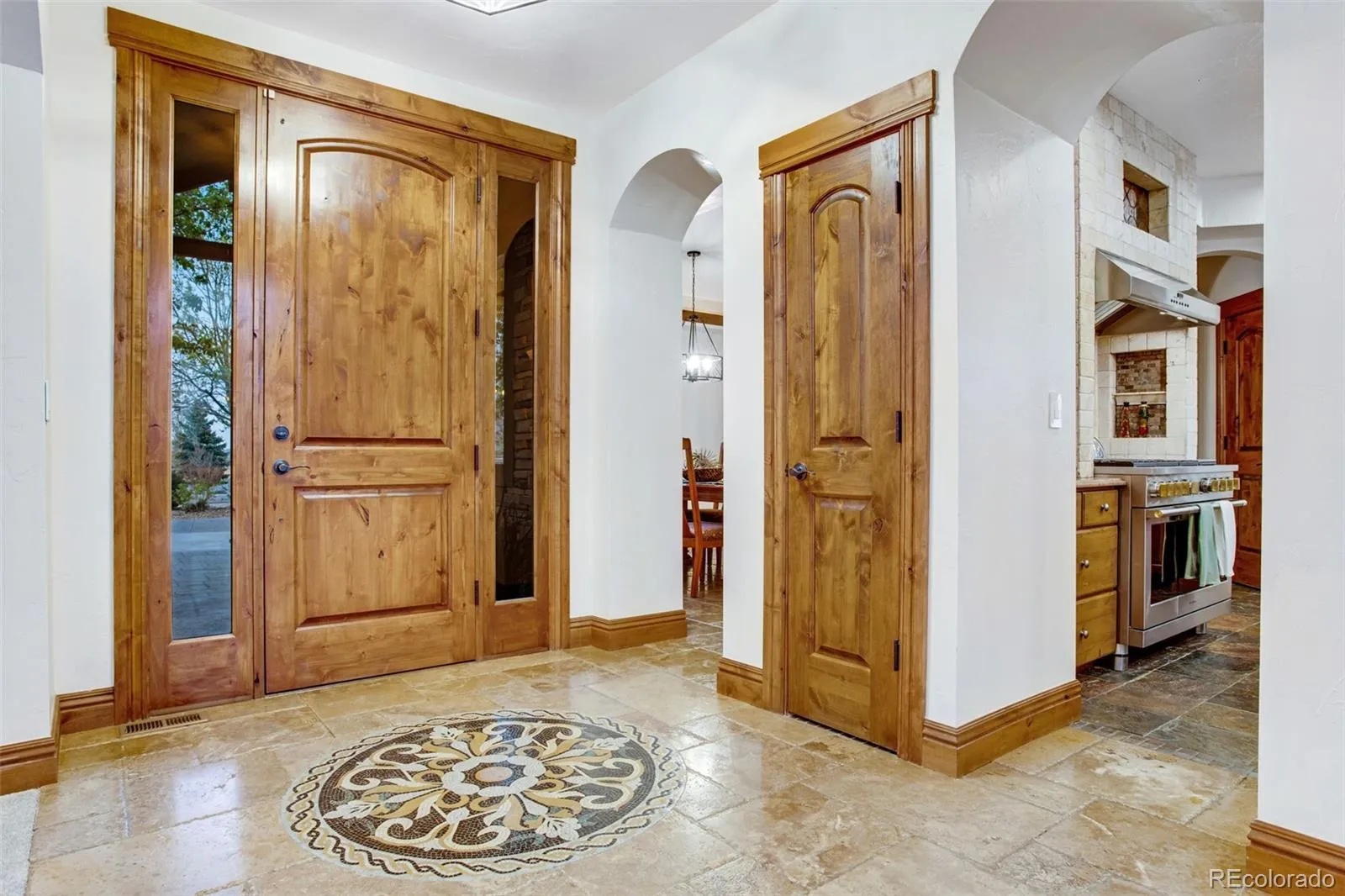 Open House Sat 18th 12-3pm and Sun 19th 1-3PM. Location, location, location. In a gated community just 4 miles west of I-25 with quick access to Longmont, Loveland, Johnstown and Denver, minutes to downtown Berthoud, TPC Colorado, Carter Lake and the gateway to Estes Park and Rocky Mountain National Park. Situated on 2.31 acres with no Metro Tax and FA1 zoning. This custom home built in 2005 offers exceptional indoor and outdoor living. Exterior highlights include a circular stamped concrete driveway, stone and stucco siding, mature landscaping, retaining walls, wraparound covered front patio with tongue and groove ceiling, courtyard with stamped concrete, iron railing and flower garden plumbed for a 2-story water feature, plus an oversized backyard patio and woodburning firepit. The main level features newly refinished travertine flooring, formal living and dining, executive office with French doors, spacious laundry and a gourmet kitchen with knotty alder cabinetry, granite slab counters, copper quartzite accents, dual sinks, center island, wraparound bar, pantry and high-end appliances including built-in refrigerator and 42″ gas range. The vaulted family room showcases a dramatic stacked stone fireplace and opens to a bright breakfast nook. Upstairs offers a luxurious primary suite with retreat, fireplace, balcony, dual walk-in closets and spa bath, plus additional bedrooms, loft and second laundry. The walk-out basement includes a kitchenette, theater or gym space, billiards area, family room, wine room, guest suite and remodeled bath. Additional features include smart home switches, upgraded lighting, surround sound prewire, dual furnaces, dual AC units, heat pump, 2 water heaters and a 3-car oversized finished garage. Call for a detailed list of property features, floor plan or to schedule a private showing.
