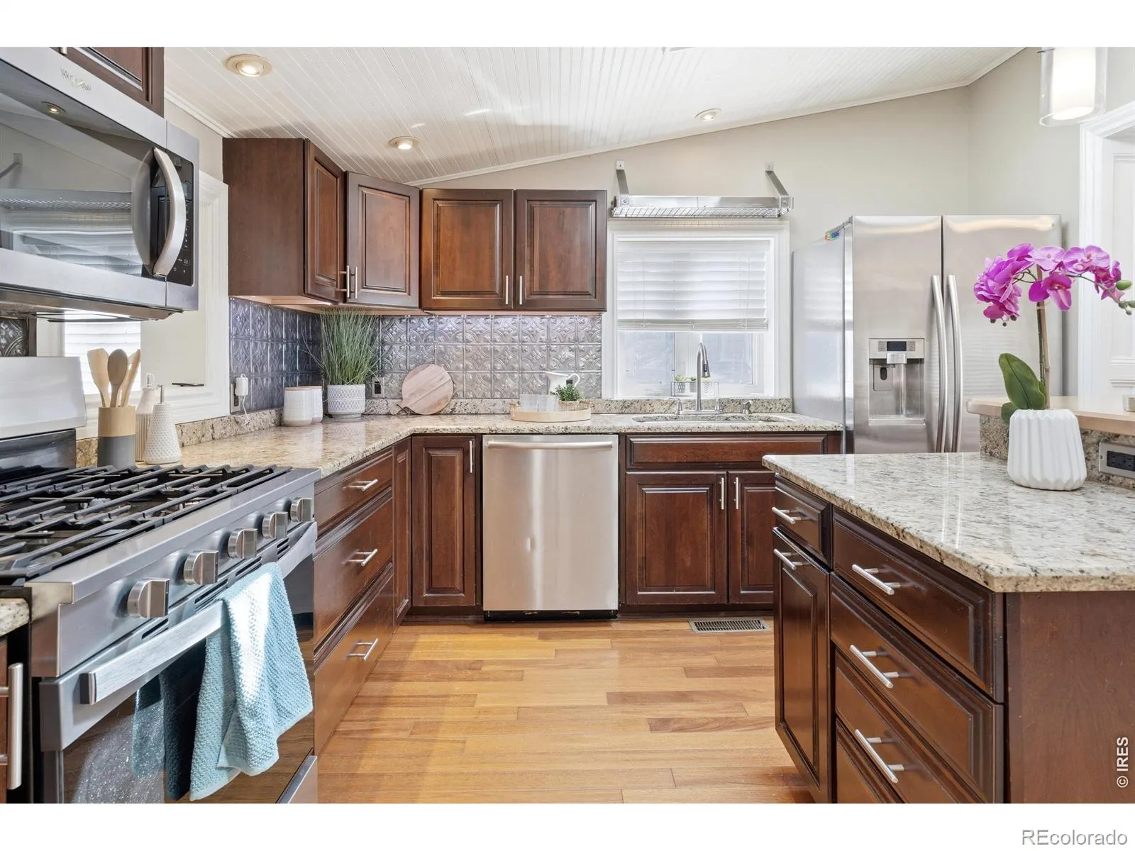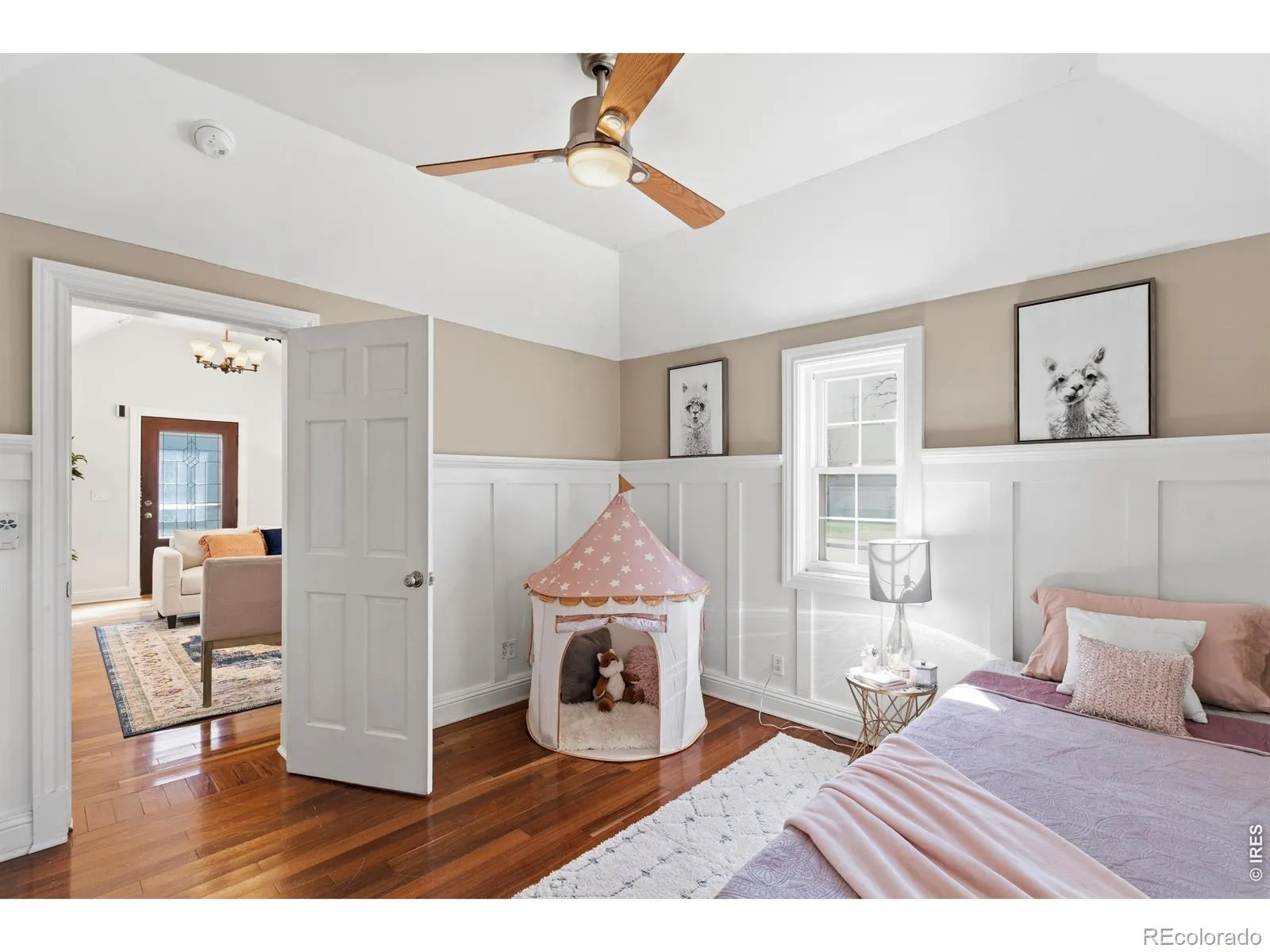 This well-maintained ranch home has been updated with vintage charm and sits in the heart of old town Berthoud. The floorplan flows well with an abundance of light streaming in and creates a bright, cheery and comfortable home. Wood floors throughout the living areas and bedrooms, fresh paint, two full bathrooms with modern updates and a touch of retro. The spacious primary bedroom has a large walk-in closet and attached full bath. All kitchen appliances, gas stove, washer and dryer are included. A large privacy fenced yard with 2 outdoor patios, lush grass yard, mature trees and plantings. 720 sq ft detached garage. A large double gate in backyard allows for space for a boat or trailer. No HOA and No Metro Tax. Ride your bike to schools or the downtown business area with breweries, restaurants, Community Art Center or local family-owned retail shopping. Recreation Center with pool, workout area, basketball courts, pickle ball courts, large playground, and soccer fields is just a few miles away. This Berthoud old town living at its finest at an affordable price.