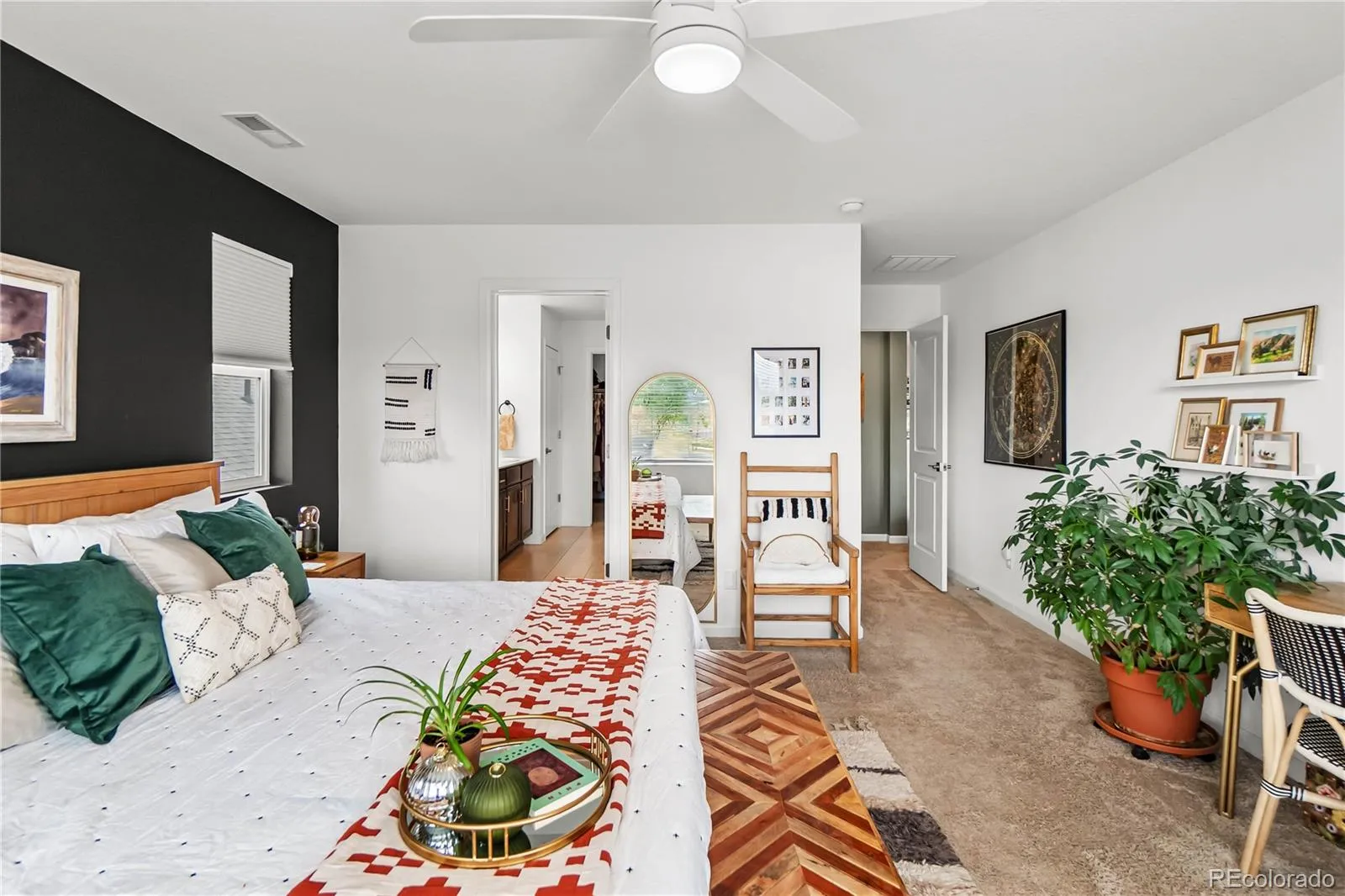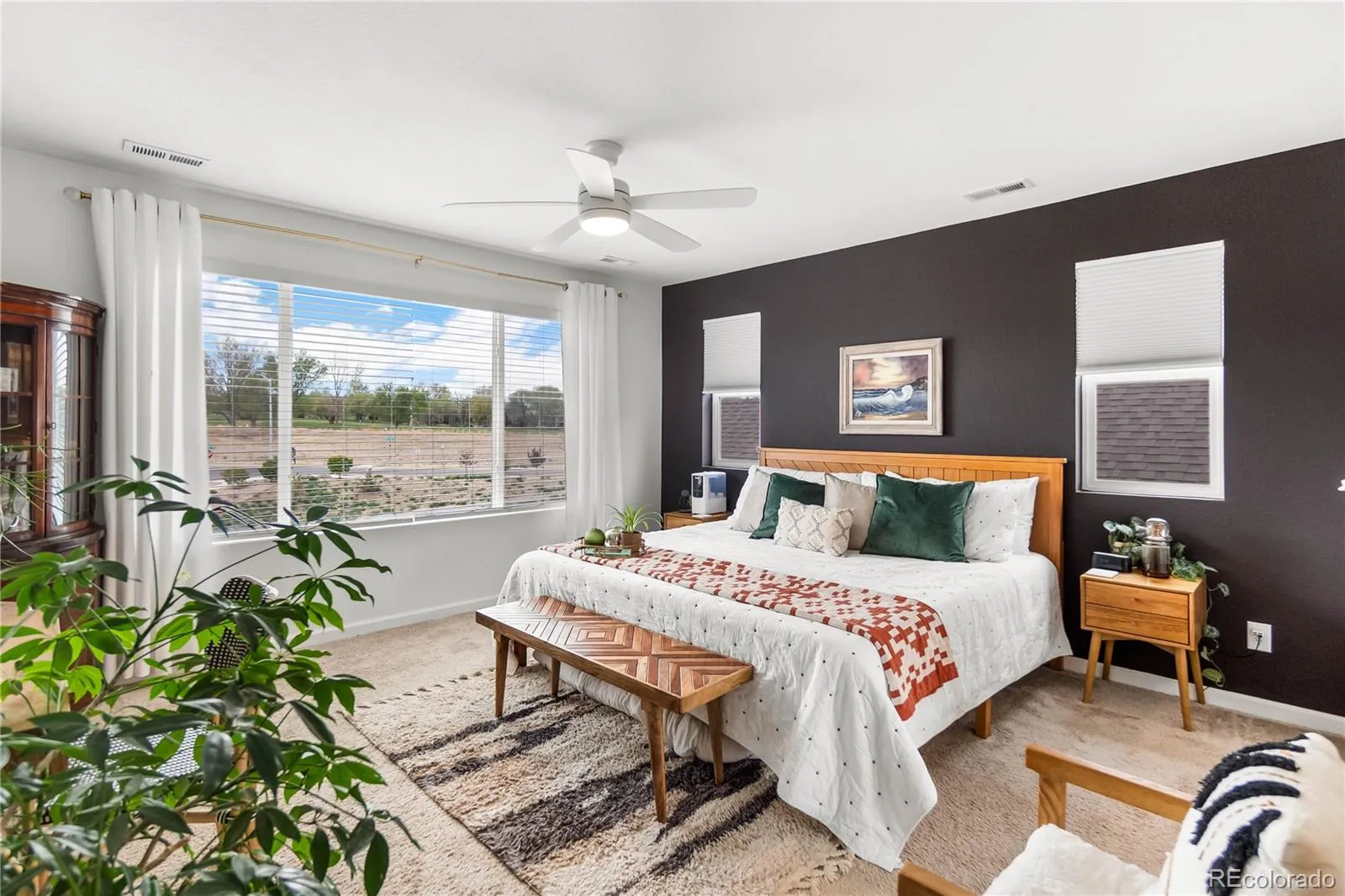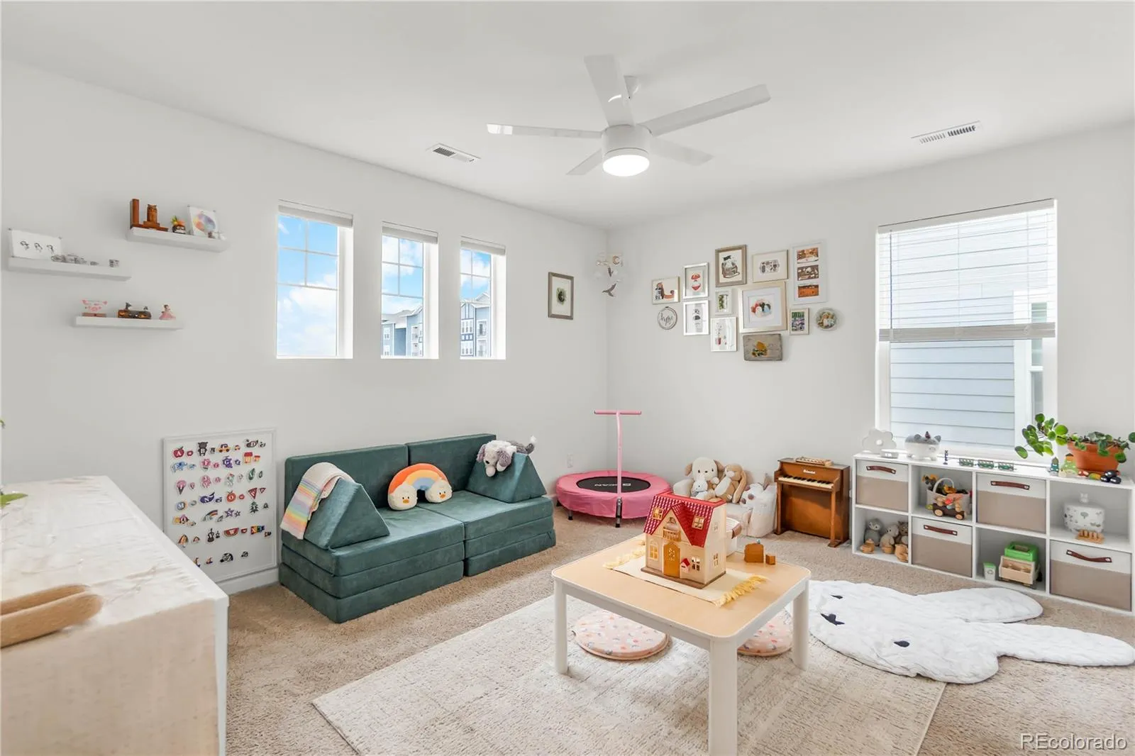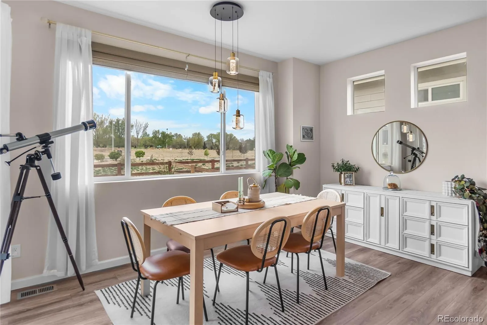 Built in 2022 in the Highlands of Longmont, this move-in ready 3-bedroom, 3-bath home offers 3,356 sq ft with an open-concept layout, many builder upgrades, and no direct rear neighbors. The main level centers around a spacious and private great room with fireplace, large windows, and natural light, flowing into a kitchen with quartz island seating, double ovens, stainless appliances, walk-in pantry, and updated lighting, hardware, and all-new faucets throughout. The dining room opens to a covered patio and fenced backyard with newly seeded lawn, garden beds, and added walkway.