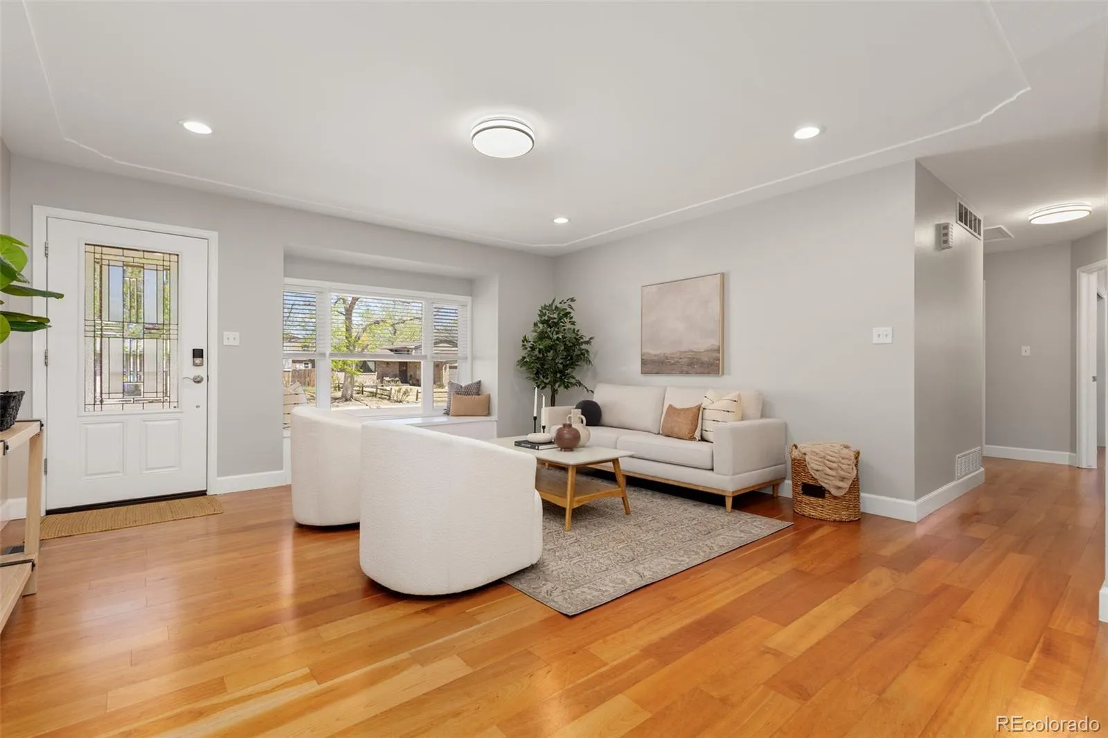 Cherry engineered wood flooring runs throughout the main level, complemented by upgraded windows that bring in tons of natural light. The partially unfinished basement offers a great opportunity to expand and make the space your own. The home is equipped with solar for energy efficiency and a radon mitigation system for added peace of mind. Enjoy both front and backyard spaces designed for everyday living and lots of entertaining. The front patio welcomes you in, while the backyard features an extensive covered patio, French doors, garden beds connected to the sprinkler system, and hidden rock speakers for even more fun.
