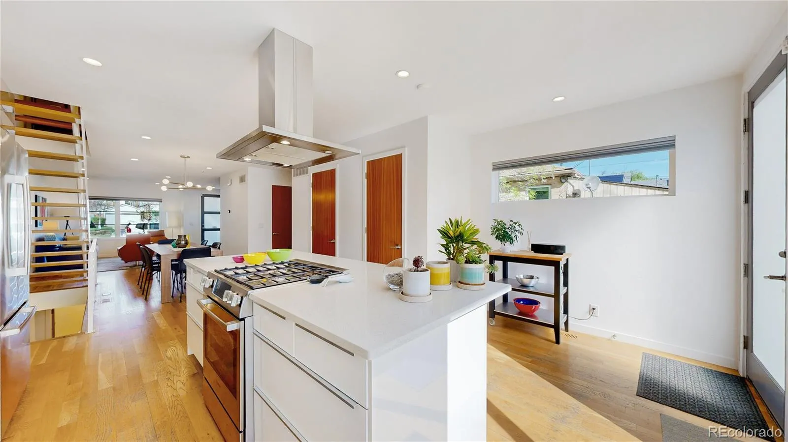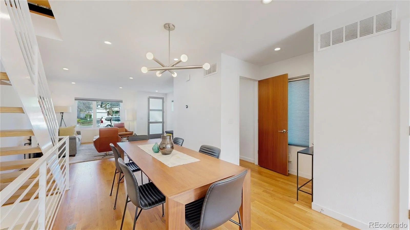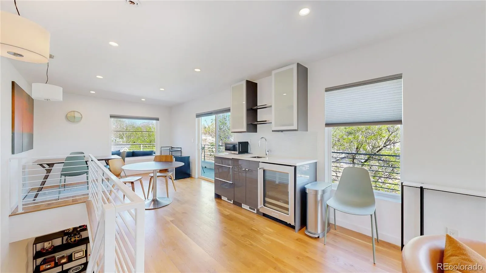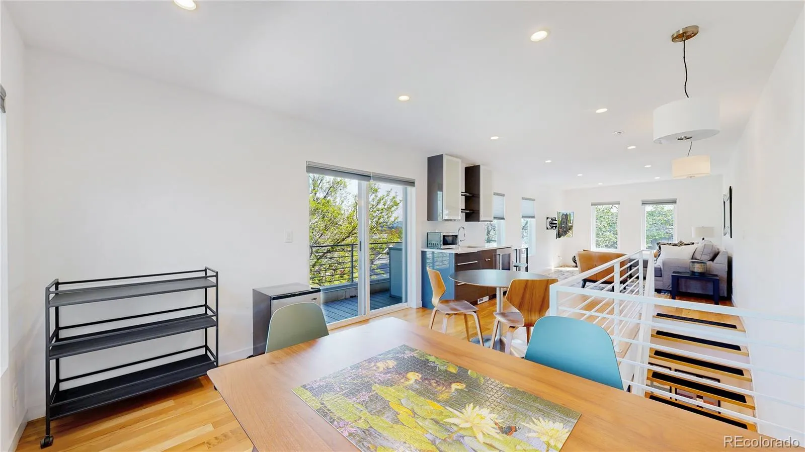 Experience elevated city living in the heart of LoHi, one of Denver’s most sought-after neighborhoods known for its vibrant energy and walkability. Built in 2014, this stunning modern duplex blends thoughtful design with high-end finishes, offering a seamless balance of comfort and style. The open-concept main level showcases gorgeous hardwood floors, a striking open rail and open tread staircase, and a chef-inspired kitchen complete with Bosch appliances, a five-burner range, quartz countertops, glass backsplash, and a generous pantry–perfect for both everyday living and entertaining.