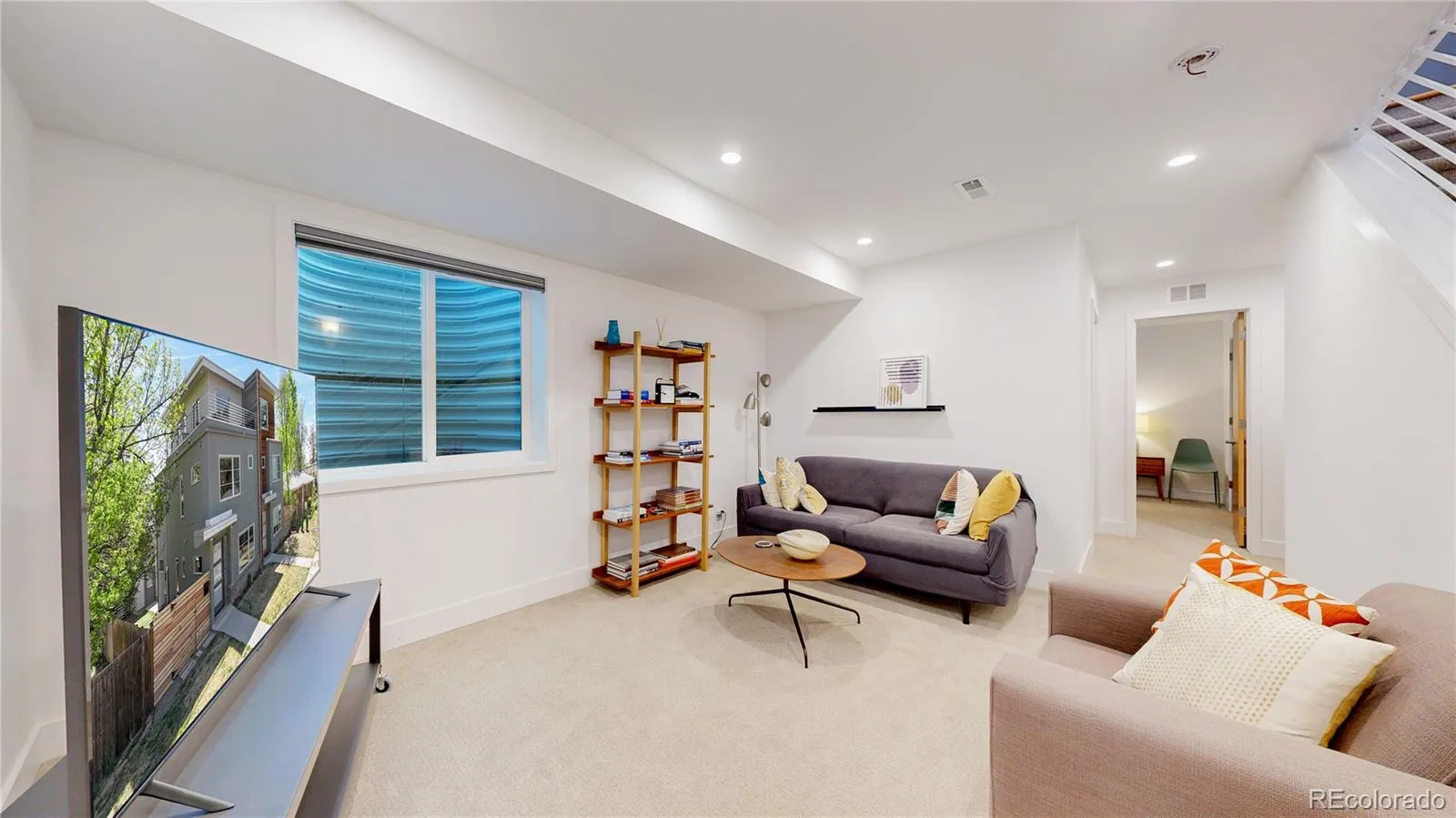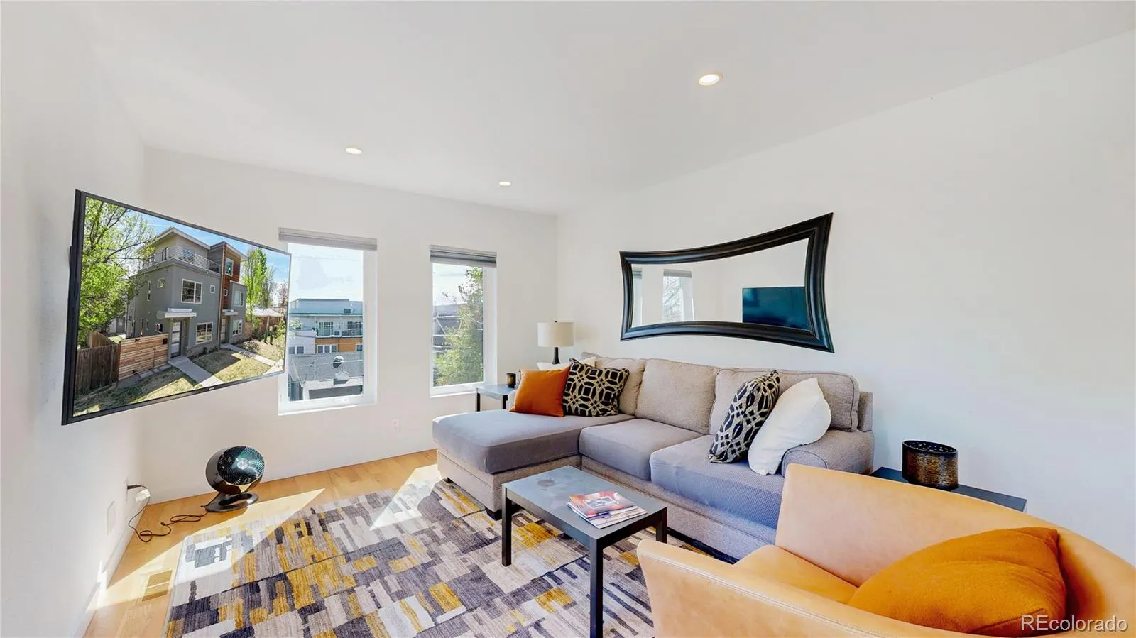 Upstairs, dual primary suites provide flexible living options, each complemented by well-designed spaces and convenient access to a second-level laundry area. The third level expands your living experience with a spacious bonus area featuring a wet bar and direct access to a rooftop deck–ideal for enjoying Colorado sunsets. The finished basement adds versatility with additional bedrooms, a full bath, and a media room.