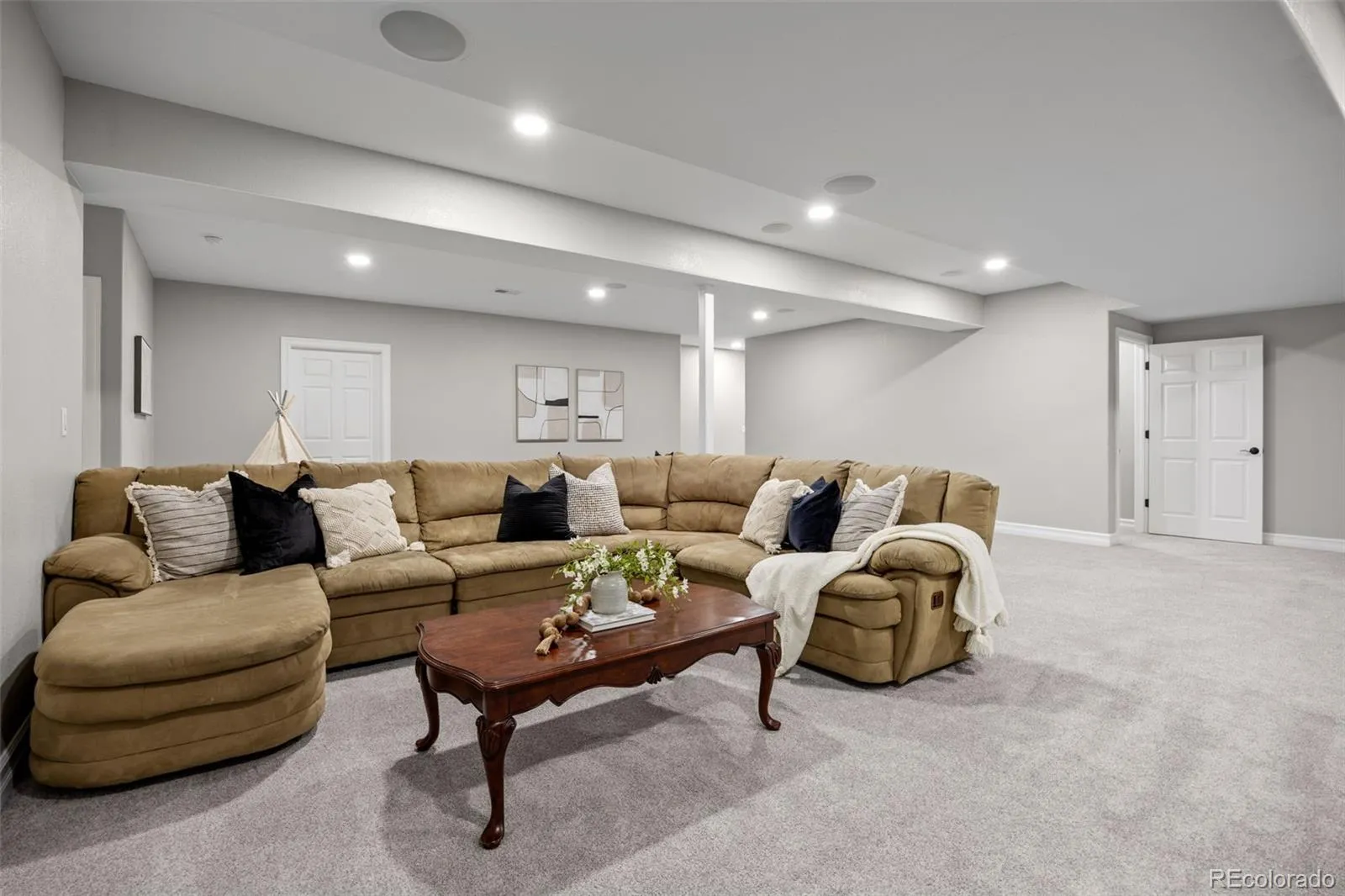 The finished basement is designed to accommodate both recreation and utility, offering three additional bedrooms, a designated panic or shelter room, and a mechanical room housing a comprehensive whole-home water softening system. Additional features include a specialized asphalt driveway designed to minimize ice accumulation and accelerate snowmelt, as well as fully paid-off solar panels that provide long-term energy efficiency without recurring expense.