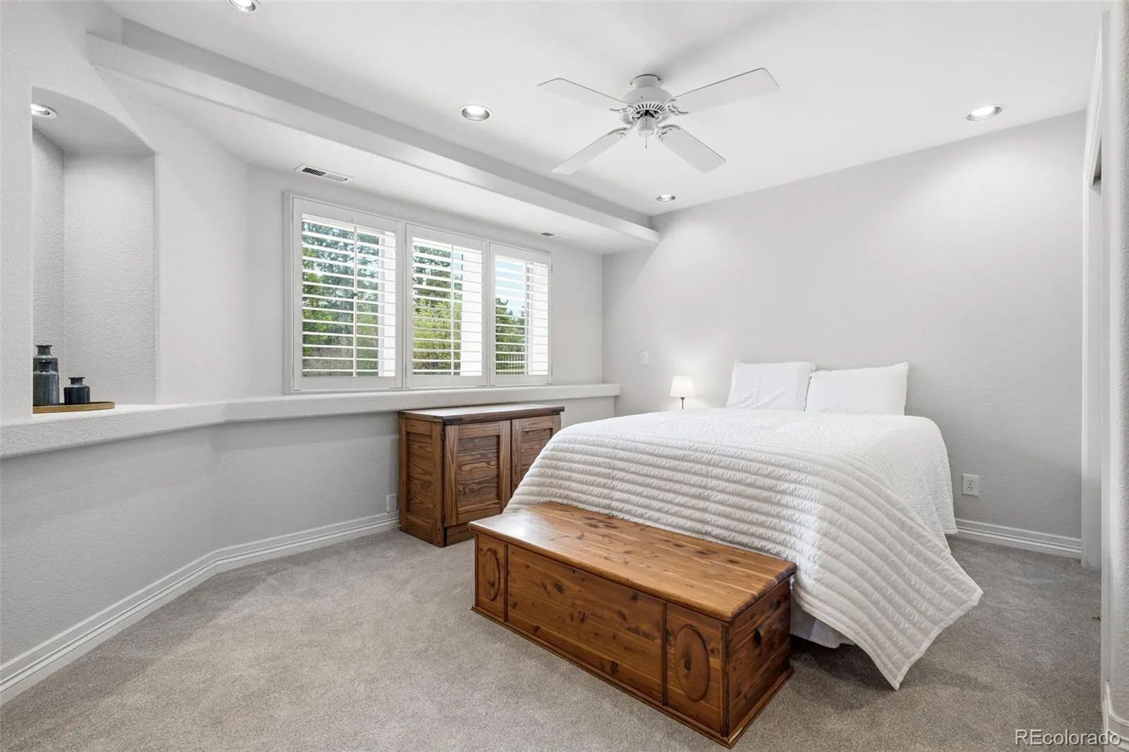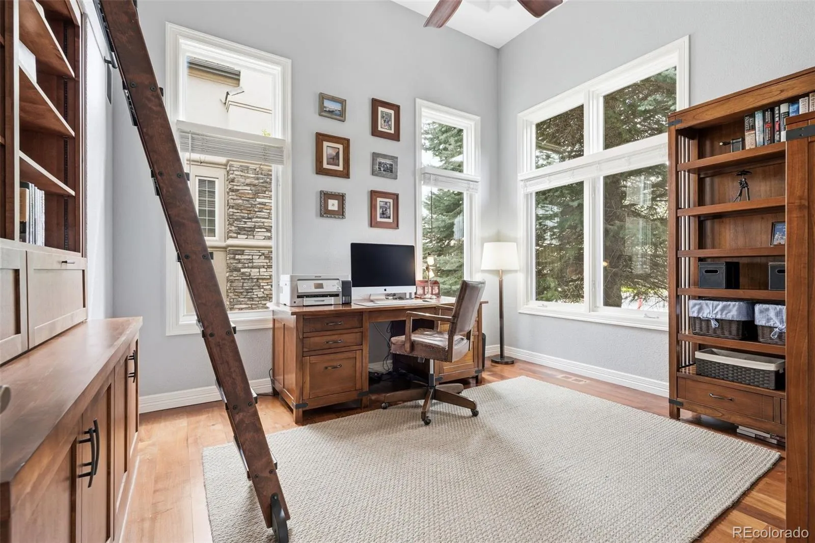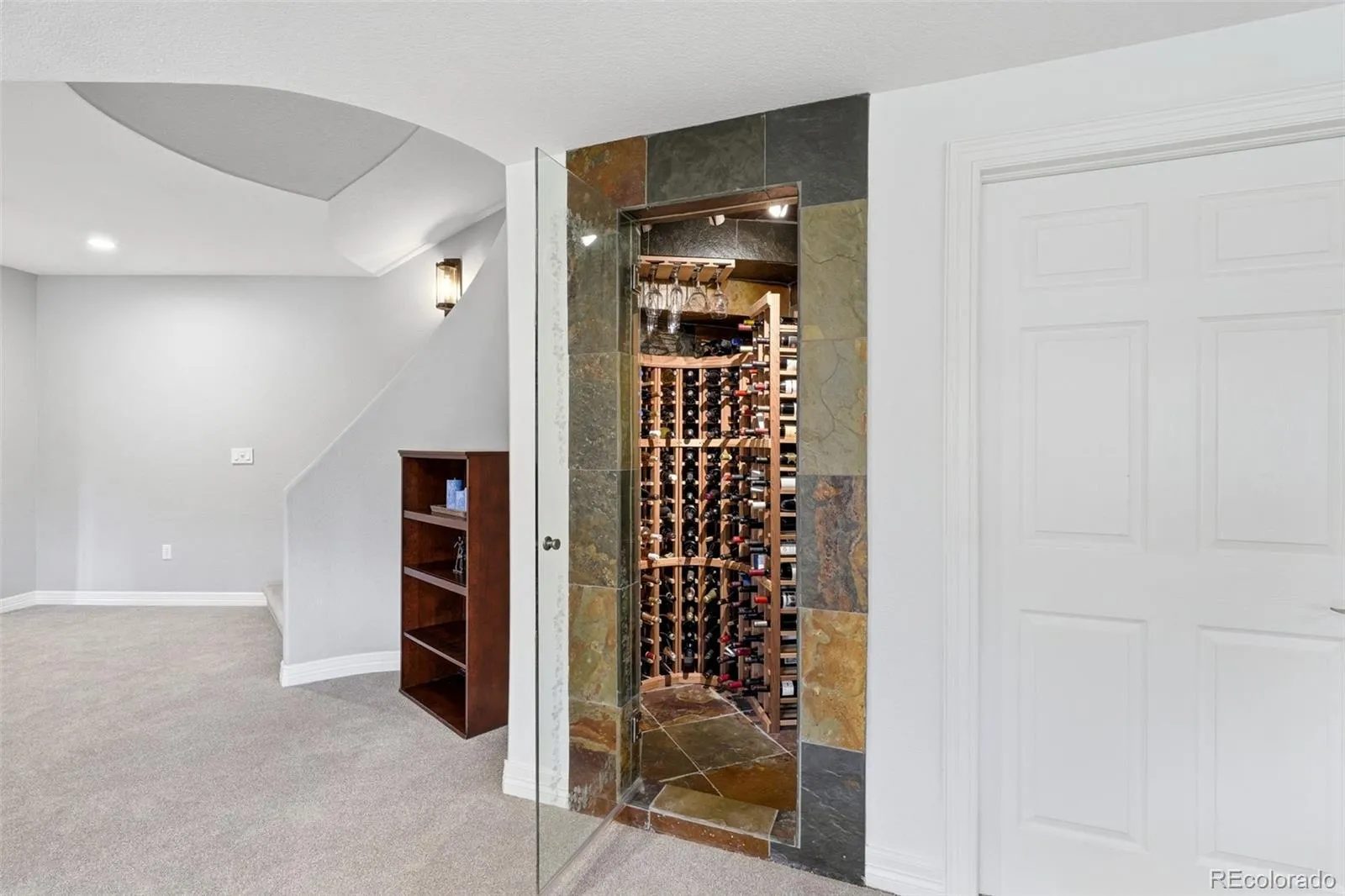 Nestled within the gated serenity of Highwoods, this exceptional residence offers a rare combination of sophisticated interior design and meticulously curated outdoor living. Backing to a lush greenbelt and featuring an expansive, flat, and highly usable yard, the home provides a private sanctuary where terraced gardens and elegant stonework create an inviting atmosphere for evening gatherings around the built-in gas fire pit. The interior makes a commanding first impression with a grand foyer and rich mesquite hardwood flooring that flows throughout the main level. Culinary enthusiasts will gravitate toward the high-end kitchen, which features a Sub-Zero refrigerator, a Viking six-burner gas range, and a sleek stainless vent hood. For those working from home, the main-floor office provides an organized workspace with custom built-ins. Throughout the upper and lower levels, brand new, premium carpeting [new in 2025] provides a fresh, modern, [neutral] foundation for any decor style. The primary suite is a masterclass in comfort, offering a dedicated sitting area with mountain views, a dramatic three-sided slate Heatilator fireplace, and the luxury of heated flooring. Each secondary bedroom is designed with privacy in mind, featuring its own ensuite bathroom. The walkout lower level is a true centerpiece for entertainment, boasting a media room and a custom bar. Wine connoisseurs will appreciate the temperature-controlled cellar, capable of housing over 200 bottles behind a striking etched glass door. A private guest suite on this level includes a steam shower for a spa-like experience. Located just moments from the community’s private and relaxing pool, tennis, and pickleball courts, this home offers an unparalleled lifestyle of comfort and function. Every detail of this property has been thoughtfully maintained to meet the highest standards of modern luxury.