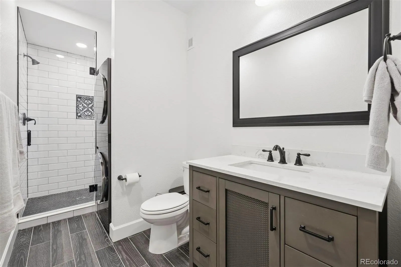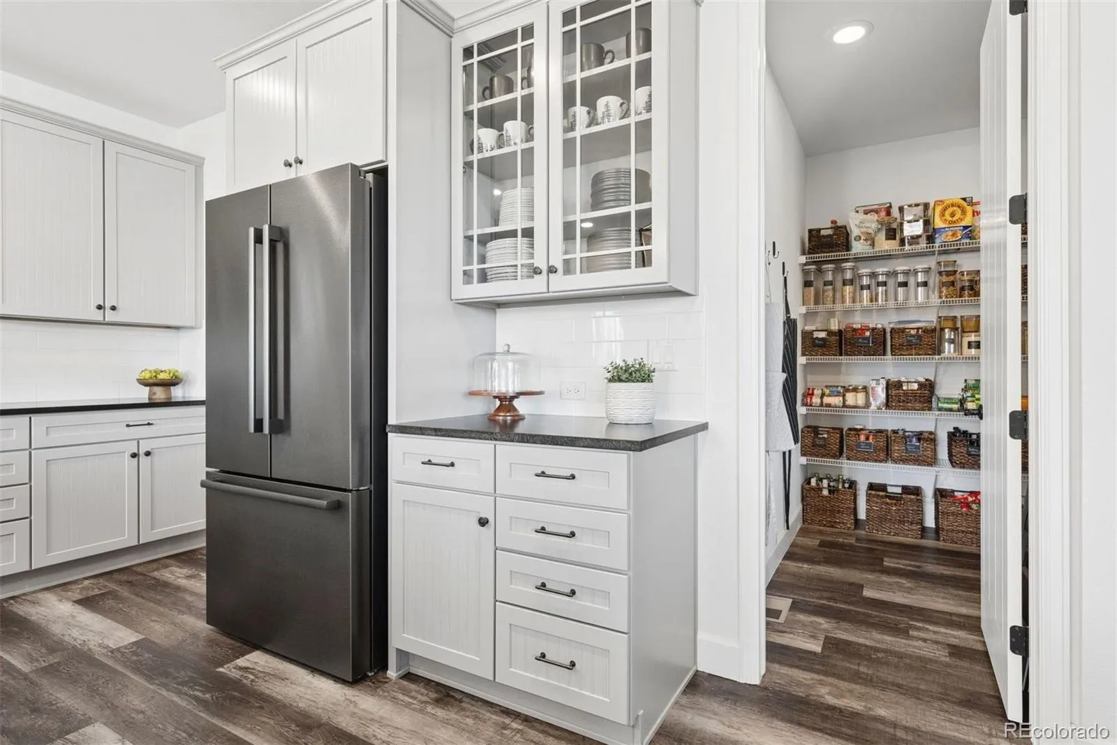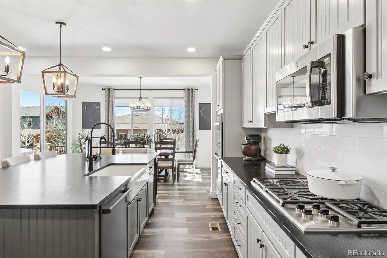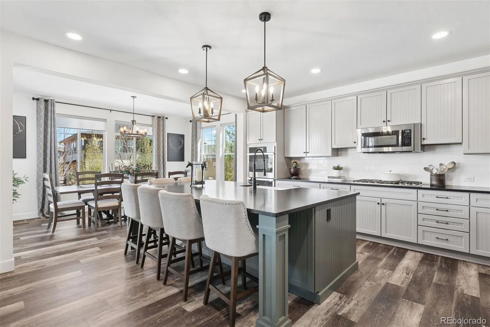 Newer construction, thoughtful design, and beautifully scaled spaces come together to create a home that truly lives well. Built in 2019 and located in Whispering Pines, within the highly sought-after Cherry Creek School District, this expansive residence offers nearly 5,000 finished square feet with a layout that has been maximized and customized well beyond builder grade. The kitchen is a true centerpiece, featuring an expanded island that seats six, leathered granite countertops, Bosch and Wolf appliances, a farmhouse sink, and a massive walk-in pantry that functions as a true extension of the space. The kitchen opens seamlessly to the oversized family room, sun-filled breakfast nook, and generously sized formal dining room creating an ideal setup for everyday living and true entertaining. The main level also includes a flexible office or playroom. Upstairs, the primary suite is expansive and thoughtfully finished with upgraded lighting, custom blackout shades, and a beautifully appointed five-piece bath with soaking tub, frameless shower, and dual custom walk-in closets. Secondary bedrooms are equally well designed, including multiple ensuite options and a Jack-and-Jill layout, offering comfort and privacy throughout. The professionally finished basement adds over 1,400 square feet, including two bedrooms, 1.5 bathrooms, a large family room space with wet bar and wine fridge, and a second private office. The guest suite features a fully private ensuite bath and its own stackable washer and dryer—an ideal setup for extended stays or multigenerational living. Outdoor living is equally dialed in with an expanded two-tier patio and low-maintenance turf yard. With 6 bedrooms (3 ensuite) and 2 dedicated office spaces, this home offers a level of flexibility and longevity that is hard to replicate. Meticulously maintained and thoughtfully upgraded throughout, every detail has been considered, creating a move-in ready home that stands apart from the rest.