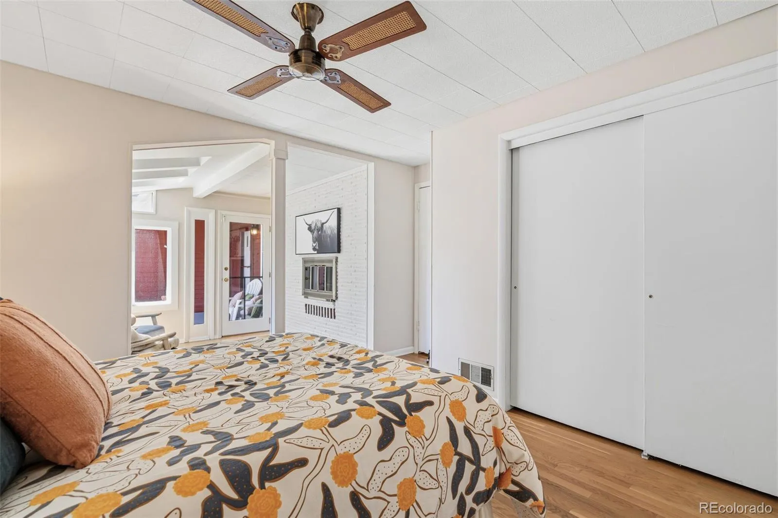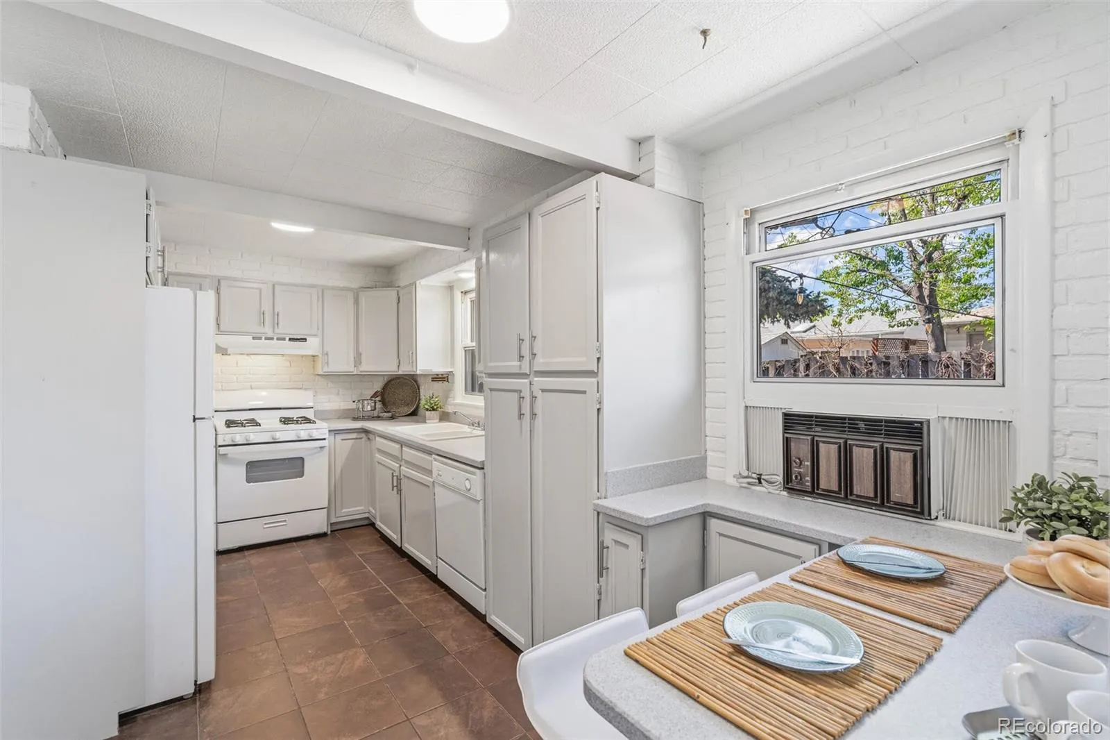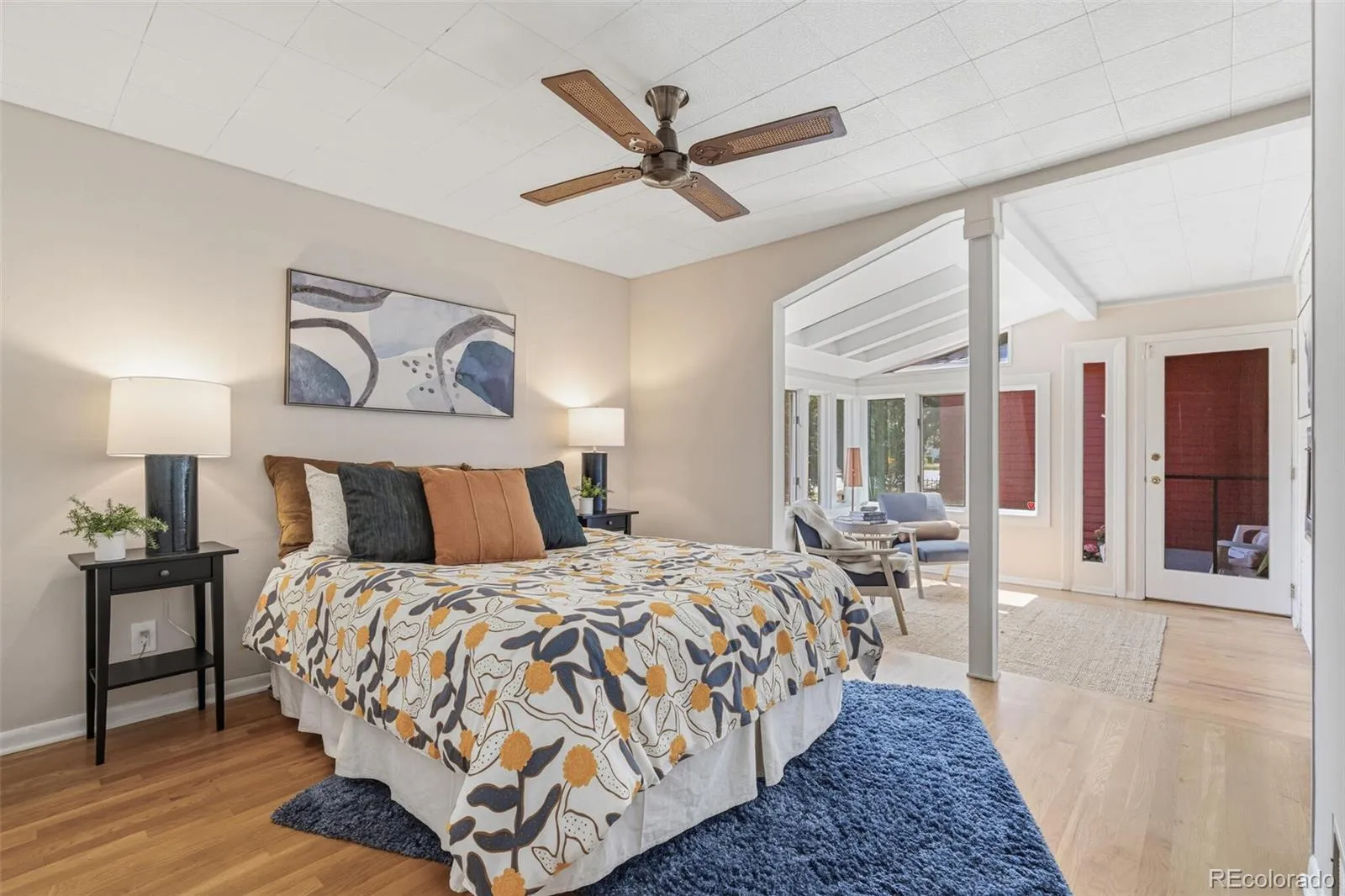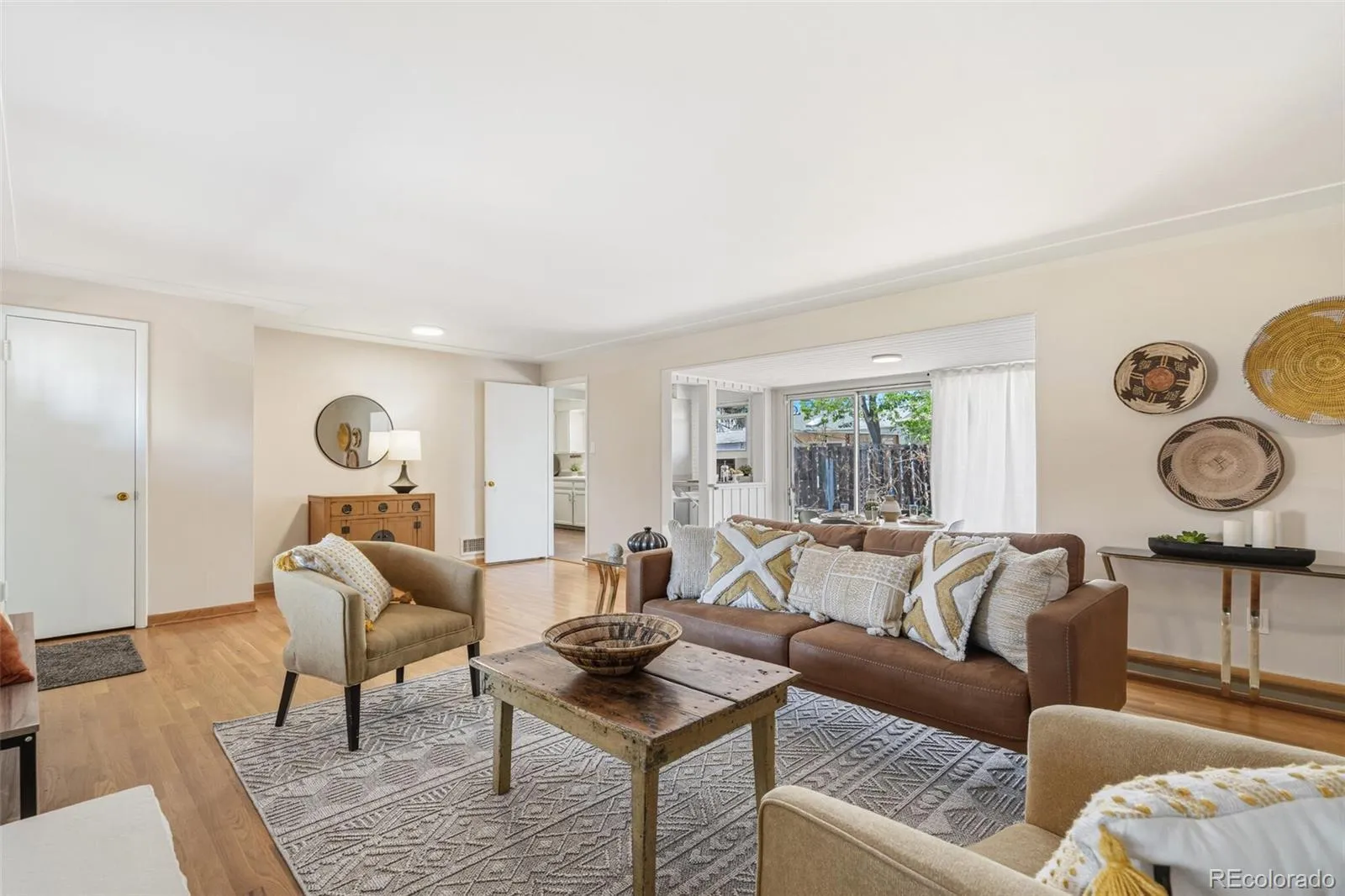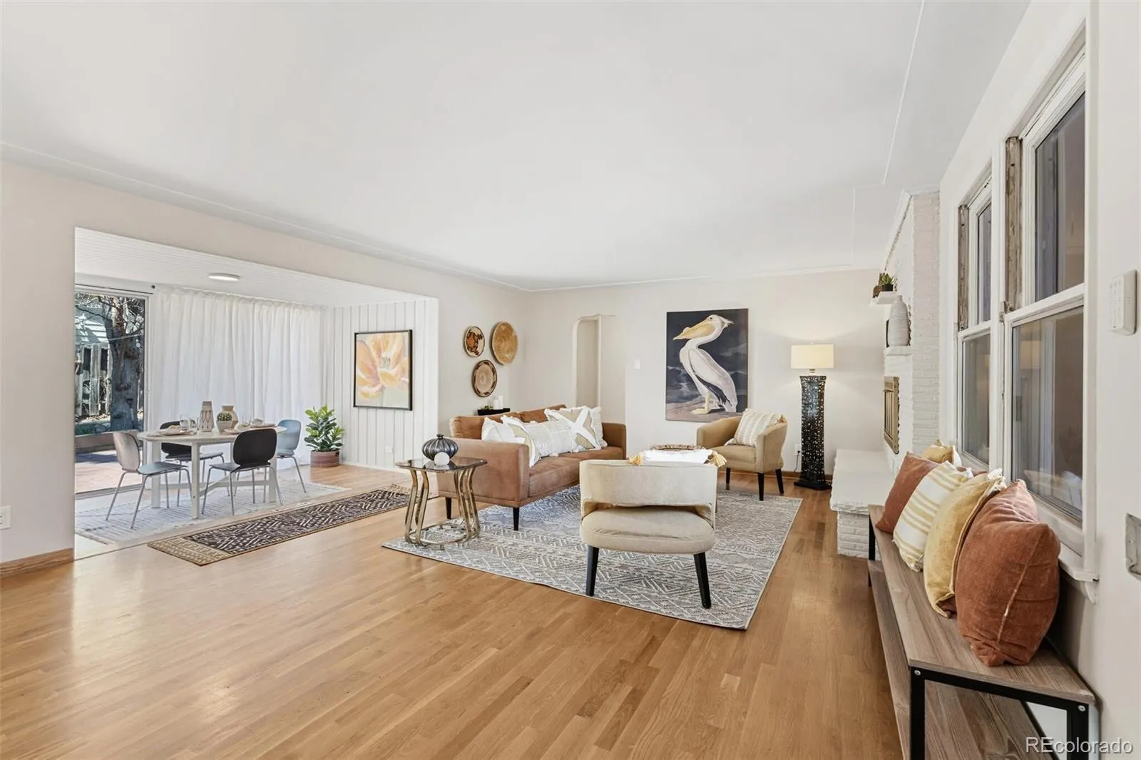 This spacious mid-century, original owner home in Edgewater is light, bright and move-in ready! Unique details can be found throughout and everything is on one convenient level. 3 bedrooms, 1 1/2 baths, large living room with a 2 sided fireplace opens to a charming sunroom, which could be a great studio or office with separate entrance. This home also features wood floors, a breakfast bar in the kitchen, dedicated laundry room and attached garage with opener. Oversized patio doors in the dining room open to the back yard and bring in wonderful afternoon light. Brand new electric panel being installed, new outlets and switches throughout, 5 year old furnace, central A/C, and hot water heater, and pre-inspected roof for peace of mind. Great location near Sloan Lake, Edgewater Town Center, schools and 26th bus line. A community food garden is just down the street. Perennials abound, but the yard needs a little love. Lawn photos have been enhanced to show potential.