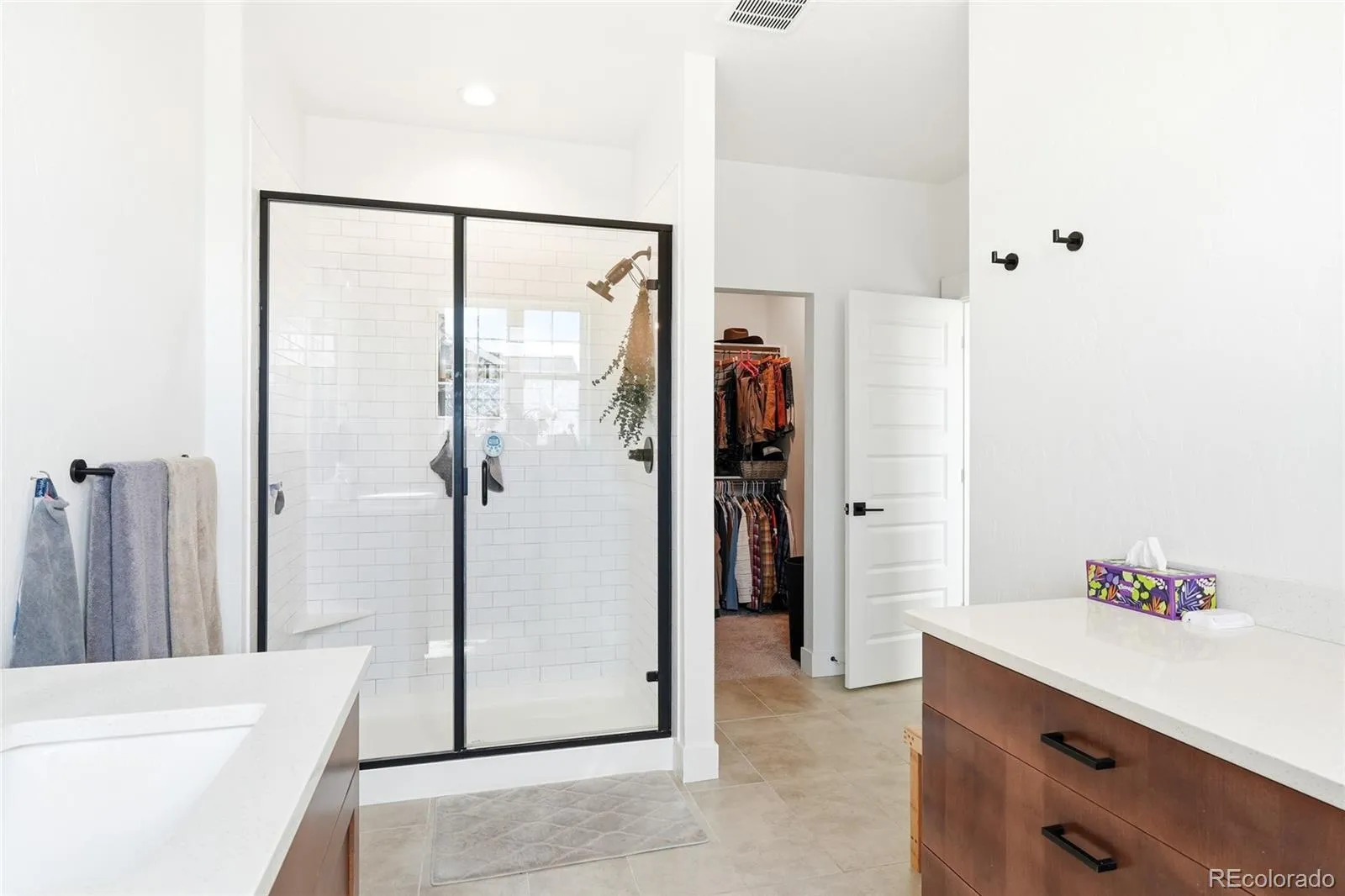 Upstairs, the spacious primary suite includes dual sinks, quartz countertops, and subway tile finishes, with matching upgrades in the full bathroom. Closet organizers in the primary walk-in closet and third bedroom provide added convenience and organization.