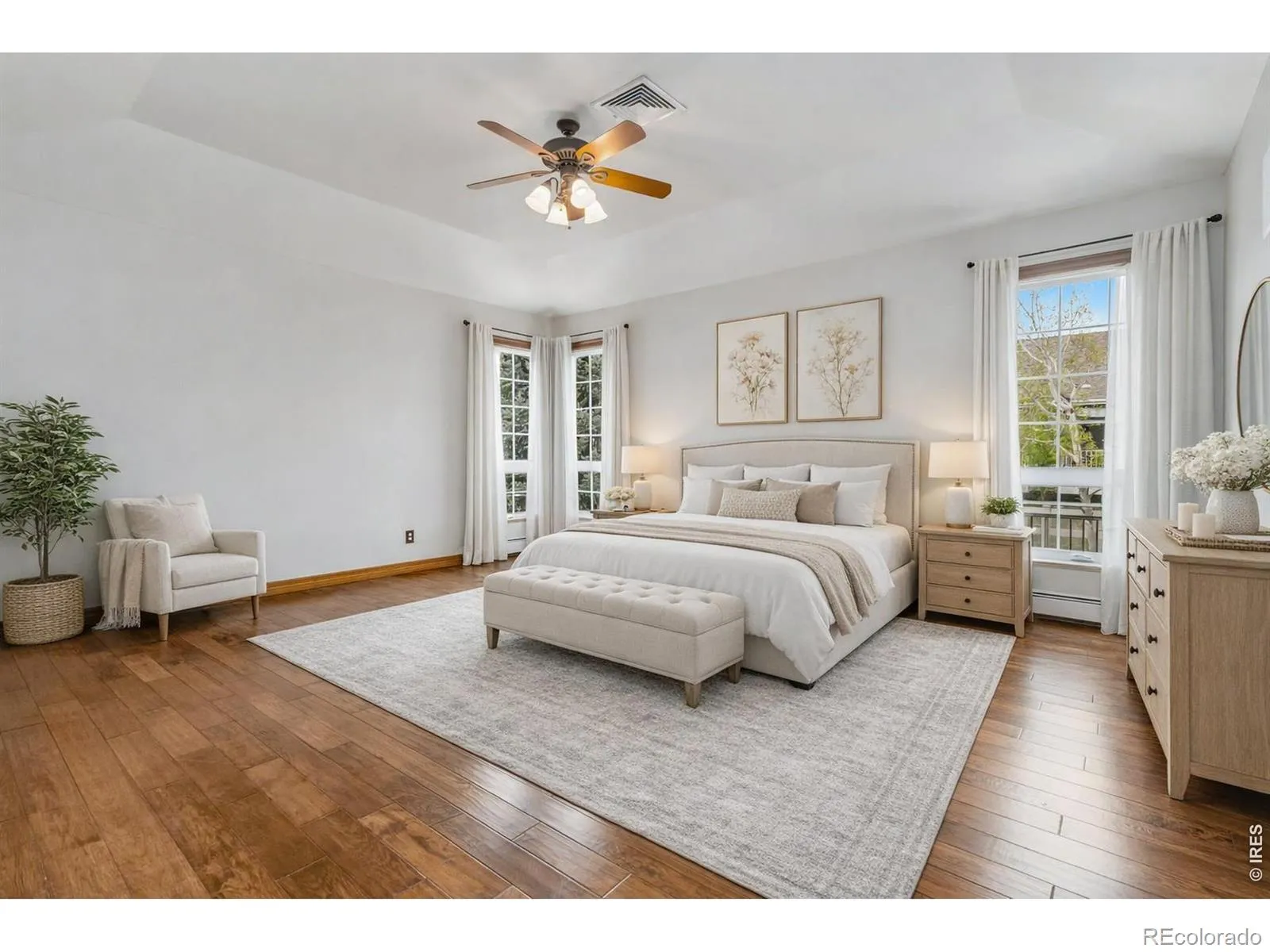 **OPEN HOUSE SUNDAY 4/19 FROM 11:00-1:00.** Welcome home to your beautiful, semi-custom home in desirable Rigden Farm! This home features a corner lot, walk-out basement, 2×6 exterior construction, and great curb appeal with brick and a wraparound porch. This is definitely not cookie cutter and is for the Buyer who is looking for something special. All 4 beds are situated apart for privacy, and an additional flex room would be a great 5th bedroom with walk-in closet and full bath. There is a dedicated home office, and high-speed internet is available. The open concept transitions one room to the next and includes a spacious living room with gas fireplace, surround sound, formal dining room, and large kitchen. Stainless steel appliances, island, gas range, eat-up breakfast bar, and generous cabinets make this the heart of the home. The walk-out basement level has a family room, rec room, en-suite bedroom, wet bar, another bed/office, and a flex room, making it great for multi-generational living. High ceilings, a spacious feel, oversized garage, and plenty of storage at every turn make this a comfortable place to call home. Low HOA and no Metro tax. Close to I-25, minutes from Old Town, and a close proximity to shopping and restaurants make this an easy choice. Call for the floorplan, special features list, or to set up a private showing. Do not wait on this one!
