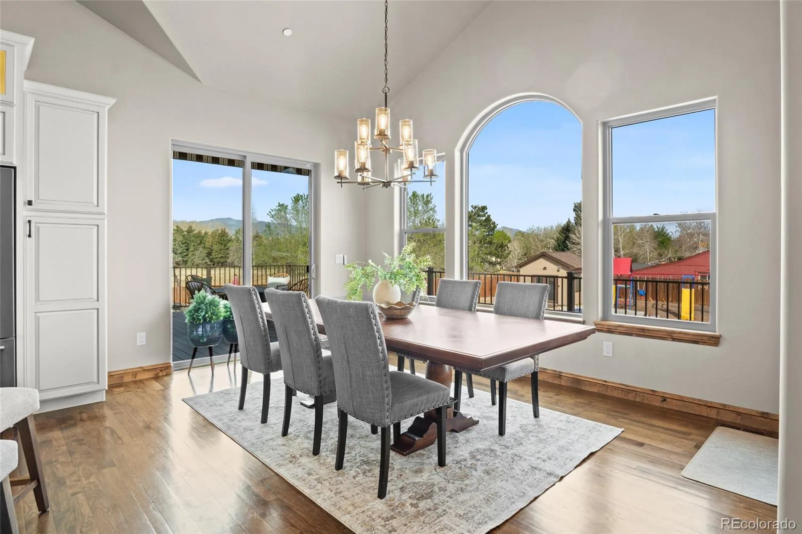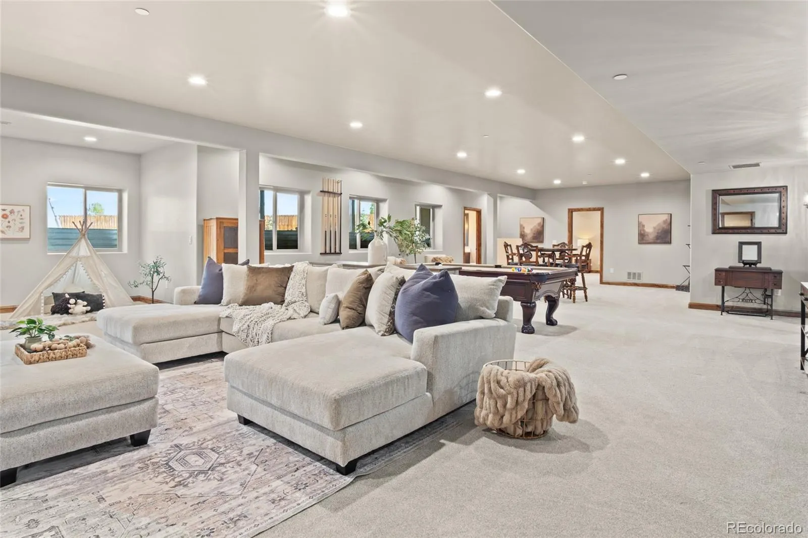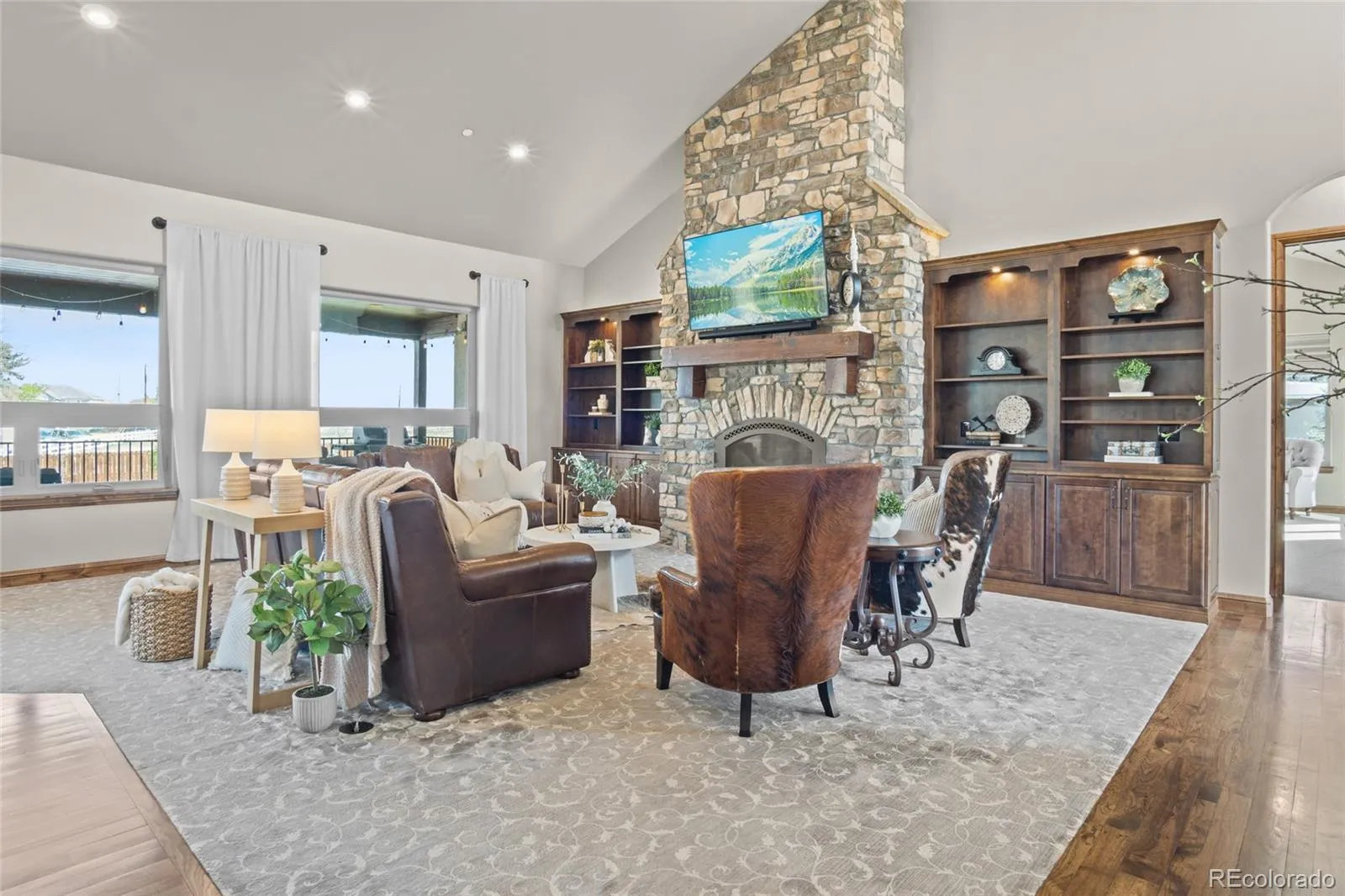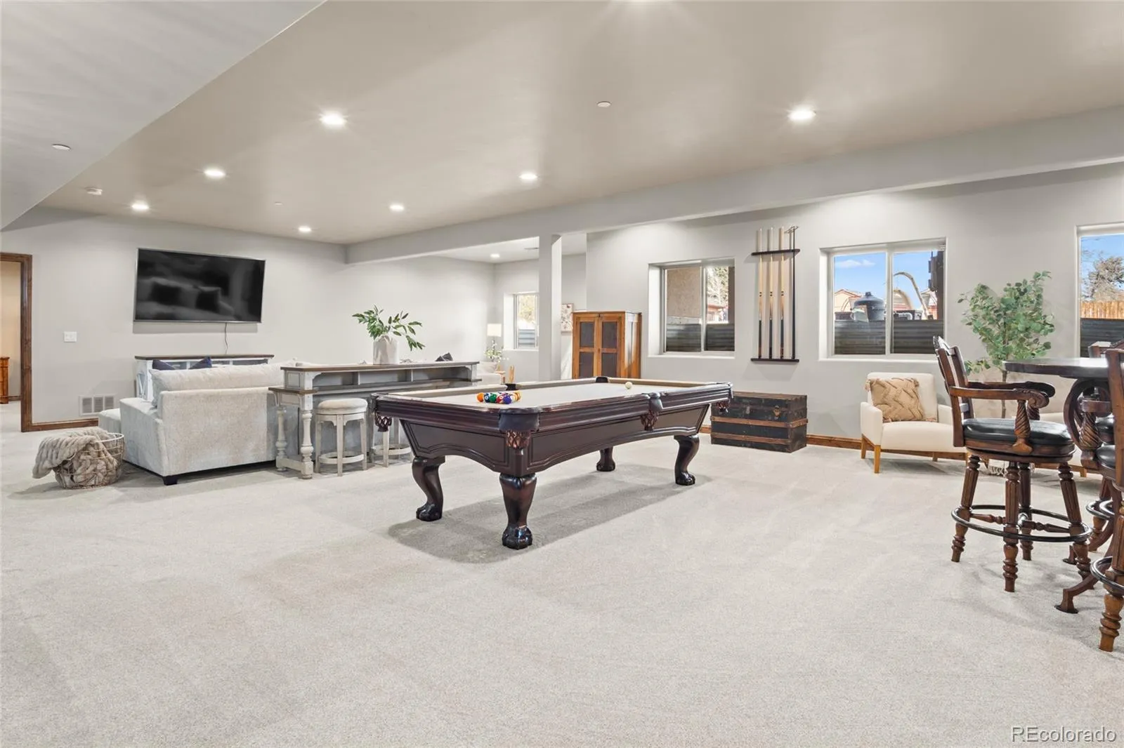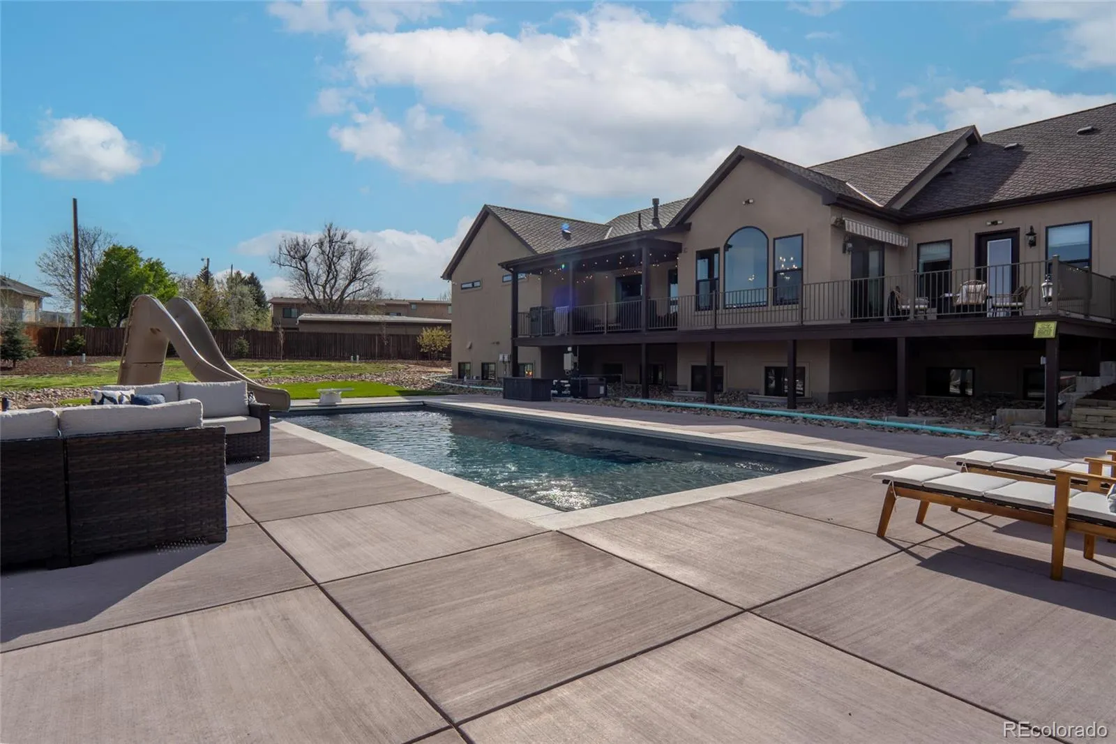 Outside, the setting feels like a private retreat. A saltwater pool, expansive patio areas, and beautifully designed grounds create the perfect backdrop for long summer days and quiet evenings under the Colorado sky.