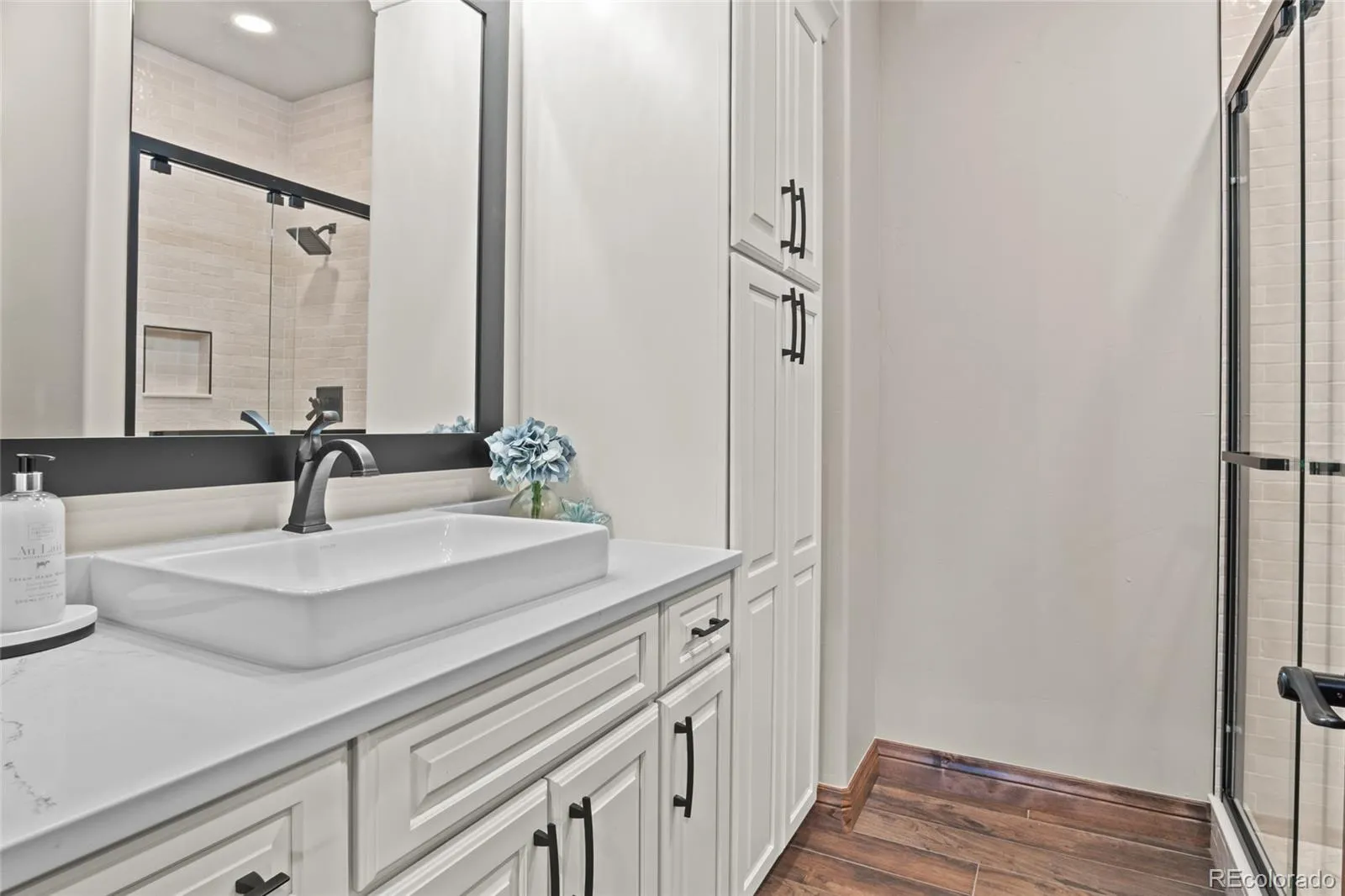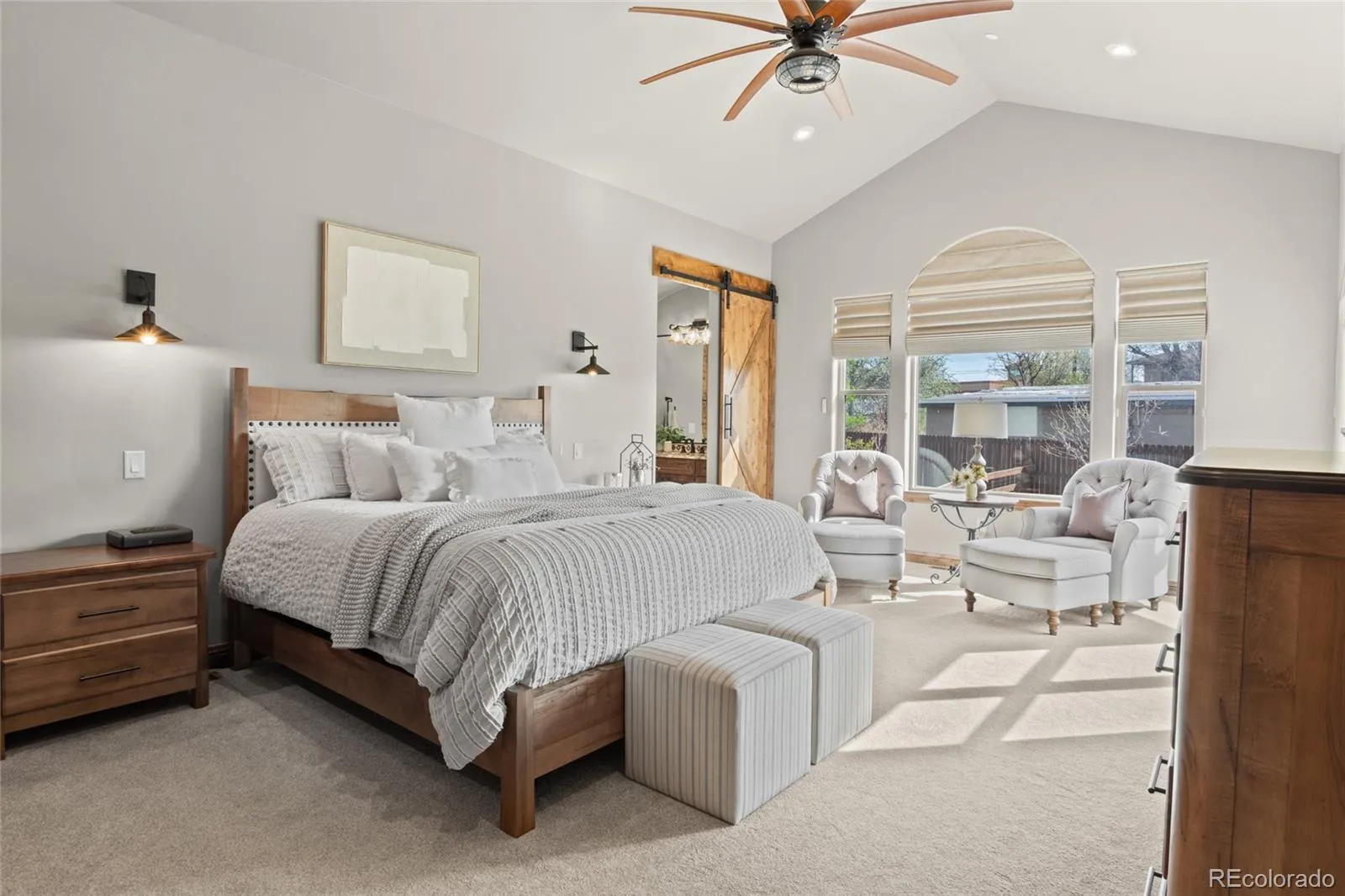 Set on a rare 1-acre lot in Arvada, this custom ranch offers true main-level living with a layout defined by intention and balance. A grand foyer welcomes you in, framed by two private offices with custom coffered ceilings, ideal for focused work or quiet retreat. Natural light, architectural detail, and elevated finishes create an atmosphere that feels both sophisticated and inviting throughout.