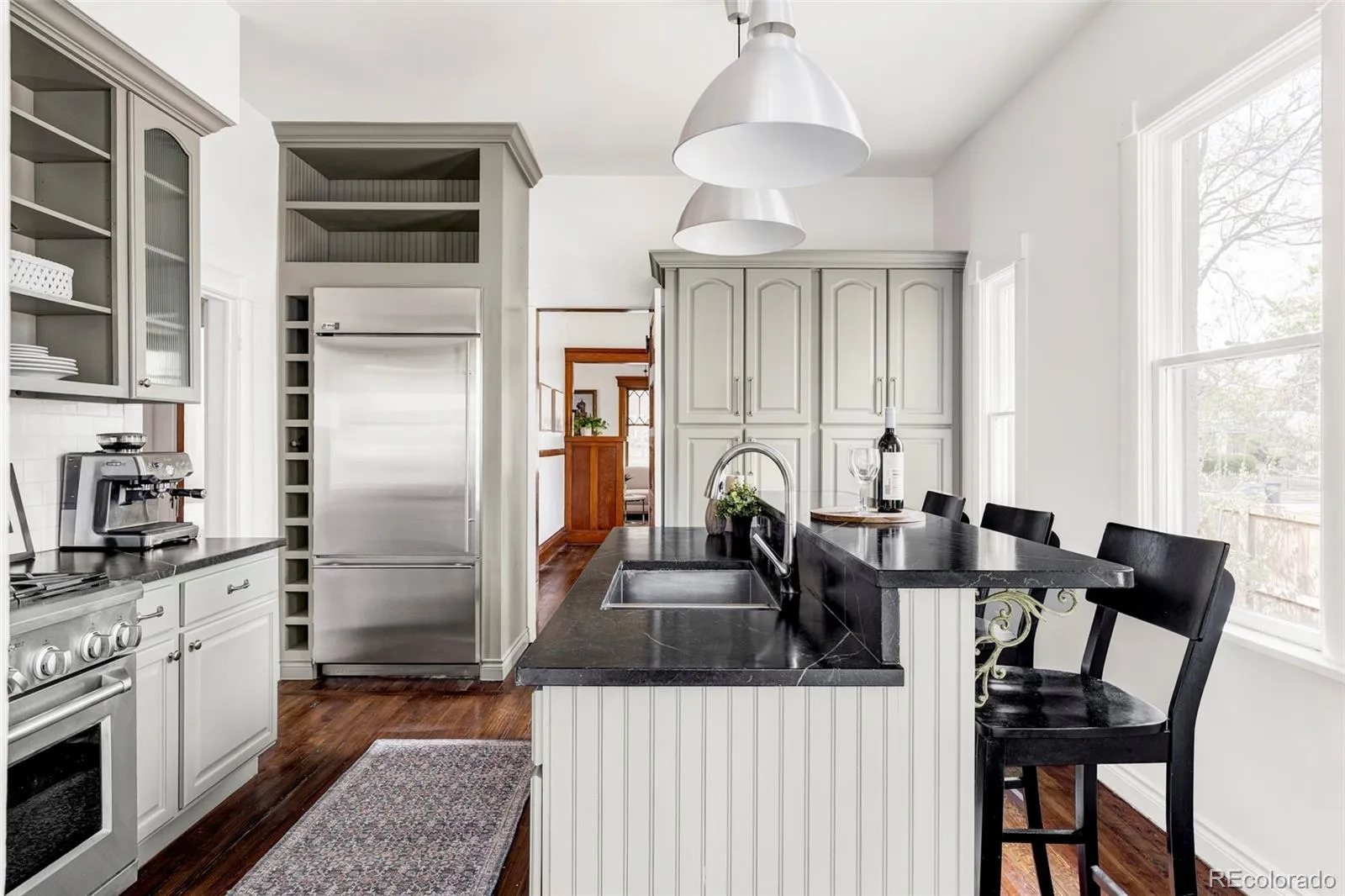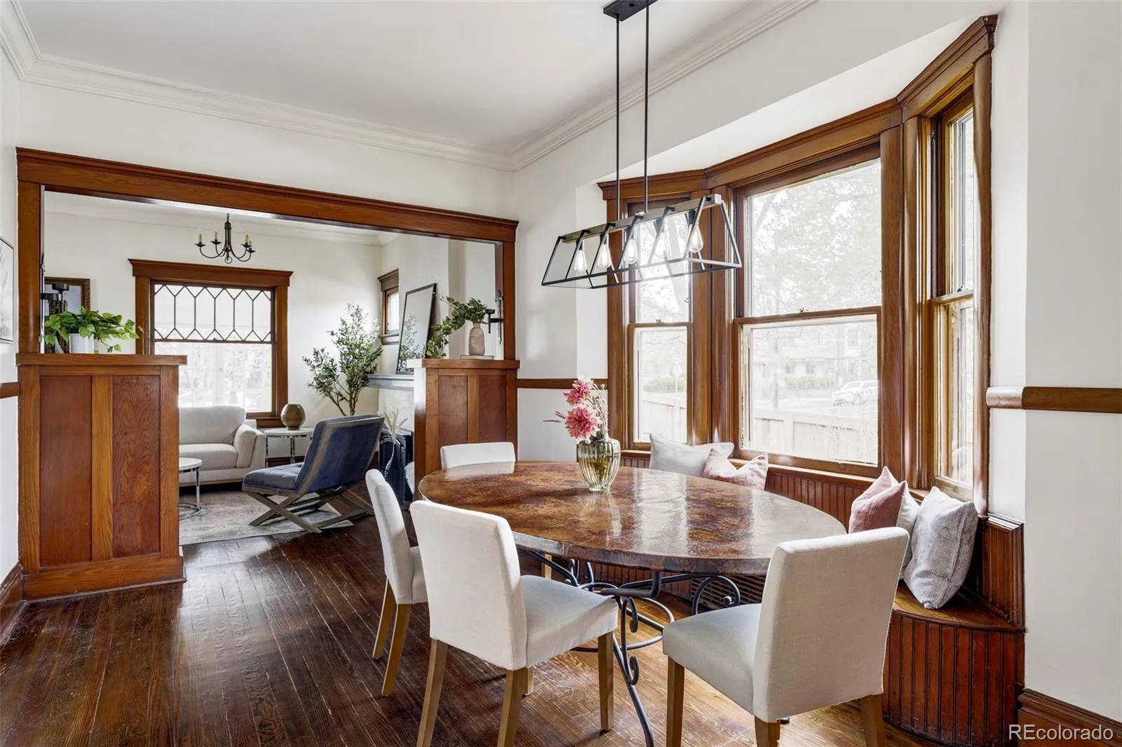 **A beautiful piece of Denver history in the heart of Potter Highlands neighborhood.** Set on a prominent corner lot, this classic bungalow blends timeless character with thoughtful updates and a coveted location. A charming enclosed front sunroom welcomes you into the home; while inside, original hardwood floors, high ceilings, rich Craftsman woodwork, and crown molding highlight the home’s timeless design. The living room is centered around the fireplace, while the dining room features beautiful built-ins and a window seat, showcasing the craftsmanship and charm of a classic Denver bungalow. The kitchen pairs vintage style with modern functionality, featuring soapstone countertops, subway tile, crown-molded cabinetry, a center island, and GE Monogram stainless appliances including a six-burner gas range with pot filler. Two generously sized main-floor bedrooms with high ceilings offer comfort and flexibility, along with a full bath, and convenient mudroom. Upstairs, the primary suite provides a private retreat with an ensuite bath featuring a Jacuzzi tub, along with an additional bedroom that can easily serve as an office or flex space. The finished basement expands the living space with a large media room with mini wet bar, exercise or flex room, ¾ bath, laundry room, and an additional storage room. The beautiful backyard patio offers a private space for entertaining and outdoor gatherings, surrounded by a fully fenced yard with mature trees and beautiful plantings. A HOT TUB, SAUNA and COLD PLUNGE complete the backyard wellness retreat. Located in one of Denver’s most vibrant neighborhoods, the home is blocks from neighborhood coffee shops and restaurants and just minutes to LoHi, 32nd and Lowell, Tennyson Street, and downtown Denver with easy access to I-25 and I-70. See full list of upgrades in supplements, including NEW ROOF/GUTTERS, home & garage (2025), UPGRADED ELECTRICAL (2024), TESLA EV CHARGER (2023), and two HVAC SYSTEMS (2017). See Supplements.