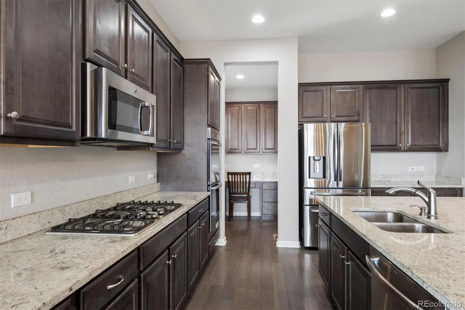 Experience the perfect blend of style, comfort, & low maintenance living in this gorgeous RANCH home where elegance meets everyday functionality. A wide, welcoming entry opens to an expansive, light filled layout featuring tall ceilings, expansive wood flooring, rich dark cabinets, gleaming slab counters & upgraded tile & design elements throughout that elevate every space ** At the heart of the home, the CHEF’S KITCHEN impresses with a huge quartz island ideal for meals, homework, & gatherings plus double ovens, gas cooktop, abundant cabinetry, separate pantry, & a hidden office nook that could convert to a 2nd walk-in pantry. The open concept design flows seamlessly into the dining & living areas, anchored by a cozy fireplace and a covered deck! ** The oversized, PRIMARY SUITE is privately situated away from the secondary bedroom & offers a luxurious retreat with a 5-piece bath incl soaking tub, double vanities, separate shower, & massive walk-in closet ** The fabulous GARDEN-LEVEL basement lives large w/ natural light pouring through full size windows. Perfect for entertaining, it features a WET BAR with double beverage coolers & a keg, plus generous space for gaming tables, movie nights, & more. Two additional bedrooms, a full bath, & extra storage round out the lower level ** OUTSIDE, step out to a COVERED DECK for morning coffee or down to the PROFESSIONALLY LANDSCAPED NATURAL ROCK & STONE XERISCAPED setting complete with trees for privacy. Easy, low/no water maintenance plus space for a hot tub and water feature addition to the already existing rock cascade ** A 3 CAR GARAGE with owner’s entry/mudroom plus a separate, dedicated laundry room adds everyday convenience. AND DID WE MENTION THE SOUTH FACING DRIVEWAY FOR EASIER SNOW DAYS? ** You will love living in COPPERLEAF, home to parks, trails, pool, clubhouse, & year round community events, all within the Cherry Creek School District & minutes to Southlands, E 470, DIA, DTC, and the Aurora Reservoir