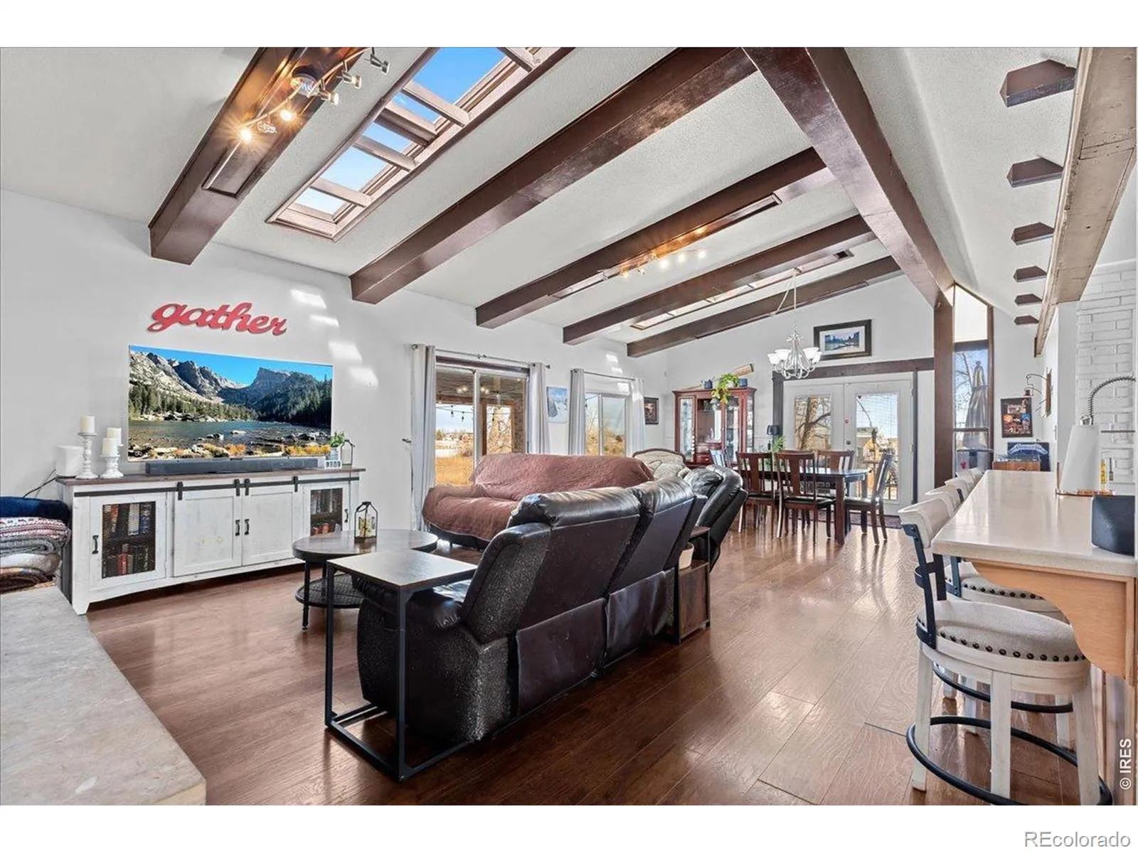 Enjoy sweeping lake views from this 2.5-acre lakefront property offering a rare blend of setting, space, and upside potential. With no HOA, usable acreage, and a 1,064 SF powered shop, this property is well-suited for a hobby farm, horse property, or anyone looking for room to live and work. Priced to reflect condition, this property presents a compelling opportunity to update, customize, and build equity over time. Buyers looking to put their own stamp on a home will appreciate the potential here, with comparable updated properties in the area reaching significantly higher values. The home features vaulted ceilings, abundant natural light, skylights, and multiple outdoor access points that highlight the surrounding views. The kitchen has been thoughtfully updated with solid-surface countertops, stainless appliances, a 5-burner gas range, and an oversized eat-in peninsula that anchors the main living space. Living and dining areas offer generous proportions, fireplace features, and easy access to covered and side porches.The finished garden-level basement expands functionality with a large flex space, additional bedroom (nonconforming), bath, and separate exterior access. An oversized attached garage and the detached shop/outbuilding with concrete floor and sub-panel add flexibility for storage, projects, or equipment. If you’ve been waiting for lakefront acreage with privacy, views, and room to create something special, this is a compelling opportunity. Property being sold As-Is.