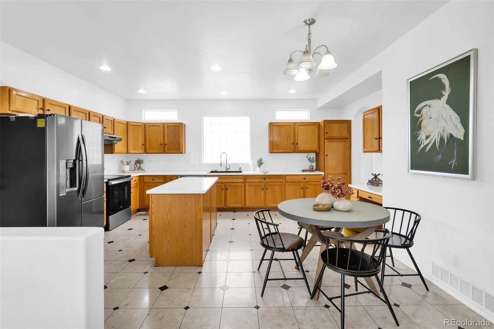 Welcome to this beautifully designed single-family home in the desirable Arvada area, offering an open and airy layout perfect for both everyday living and entertaining. From the moment you step inside, you’ll appreciate the soaring vaulted ceilings and the seamless flow between the main living spaces. The thoughtfully designed open floor plan connects the family room, dining area, and kitchen, creating a bright and inviting central hub of the home. Large windows allow natural light to pour in, enhancing the spacious feel and making gatherings effortless, whether hosting friends or enjoying a quiet evening at home. This home is truly move-in ready, while also offering an excellent opportunity for buyers to easily update finishes over time to match their personal style and design preferences. Upstairs, you’ll find three generously sized bedrooms, each offering ample space and comfort. There is an option for an en-suite bathroom connecting to one of the bedrooms. The primary suite provides a private retreat with a 5 piece en suite bathroom, while the additional bedrooms are well-appointed and ideal for family members/guests. A versatile loft space adds flexibility and can easily serve as a home office, reading nook, playroom, or additional lounge area. The finished basement w/ brand new carpet and pad expands the living space even further, featuring a large bedroom, a ¾ bathroom, and an expansive family or game room—perfect for movie nights, hobbies, or entertaining. Step outside to enjoy the private backyard with a patio, surrounded by mature trees that provide shade, privacy, and a welcoming outdoor atmosphere that is designed for low-maintenance living. The location offers close proximity to numerous schools, shopping centers, dining options, and everyday conveniences, making your daily life accessible and simple. It combines functionality, comfort, and flexibility, offering move-in ready convenience with the potential to customize and make it truly your own