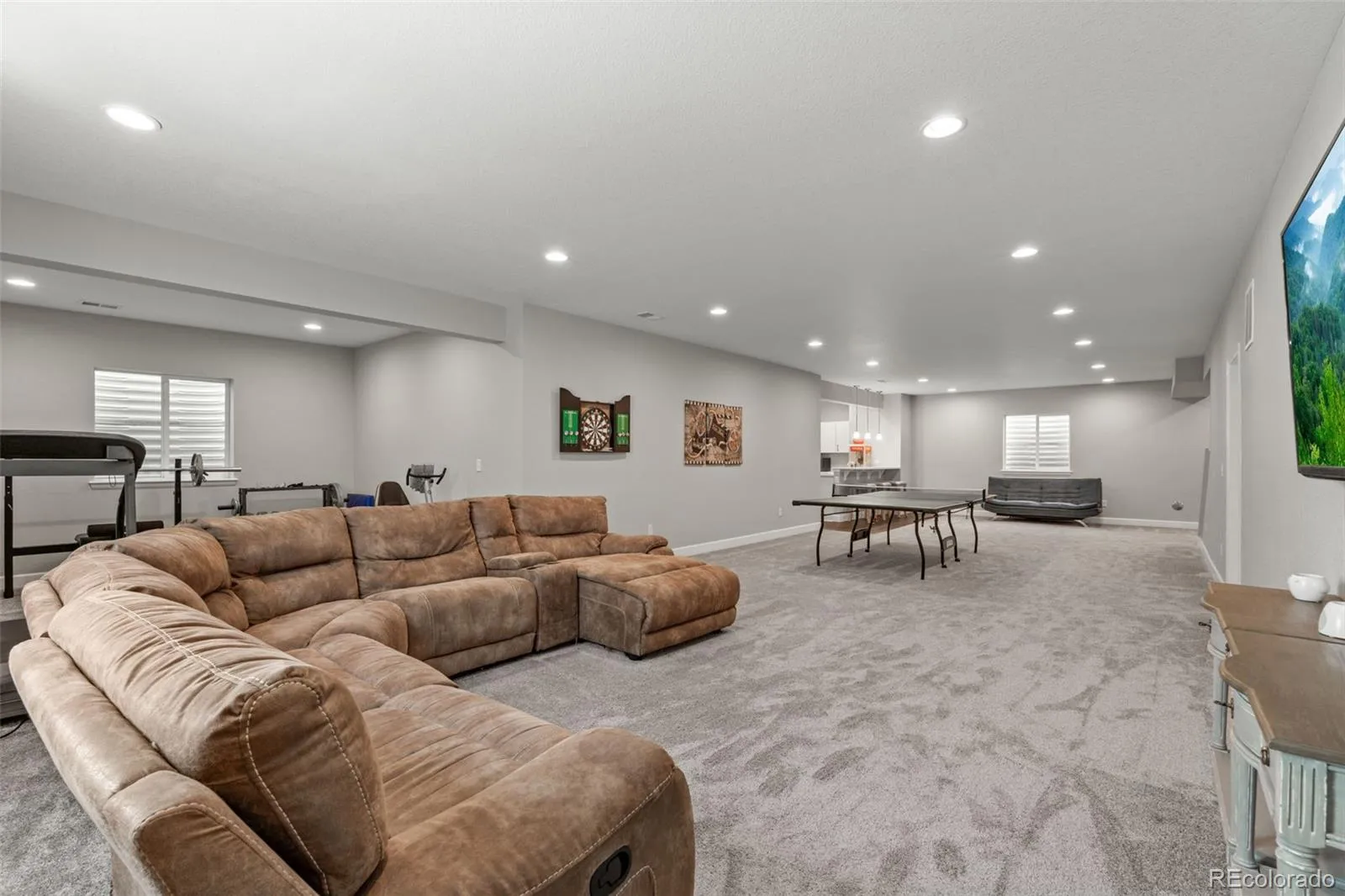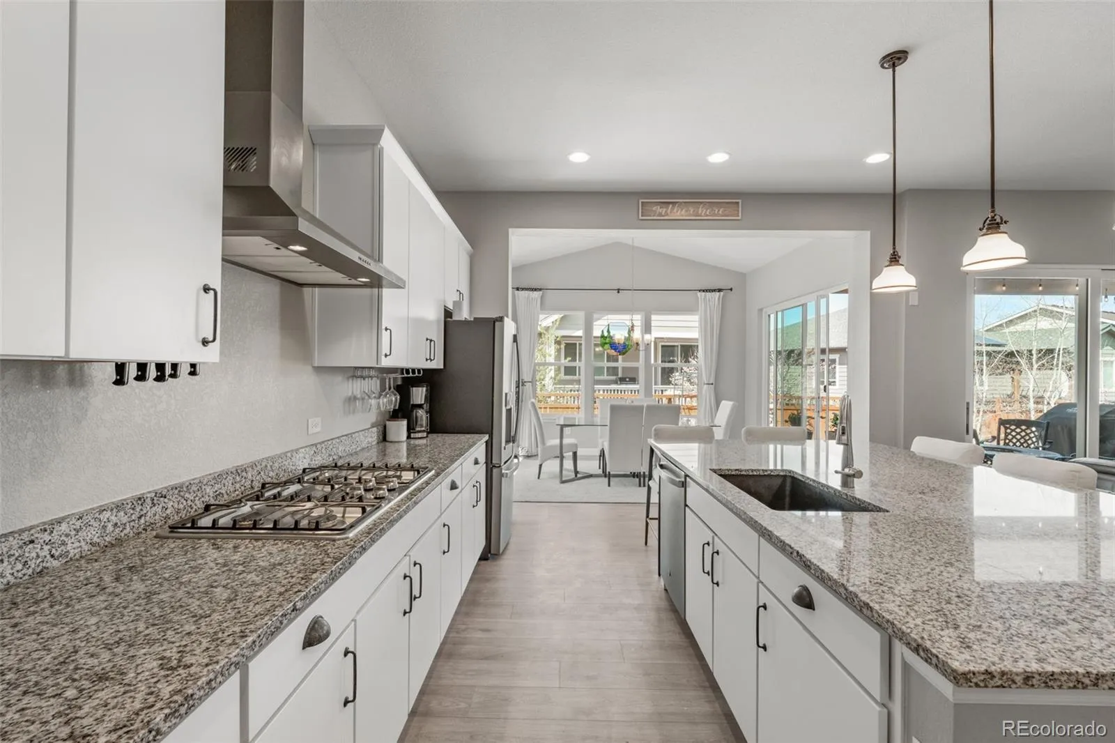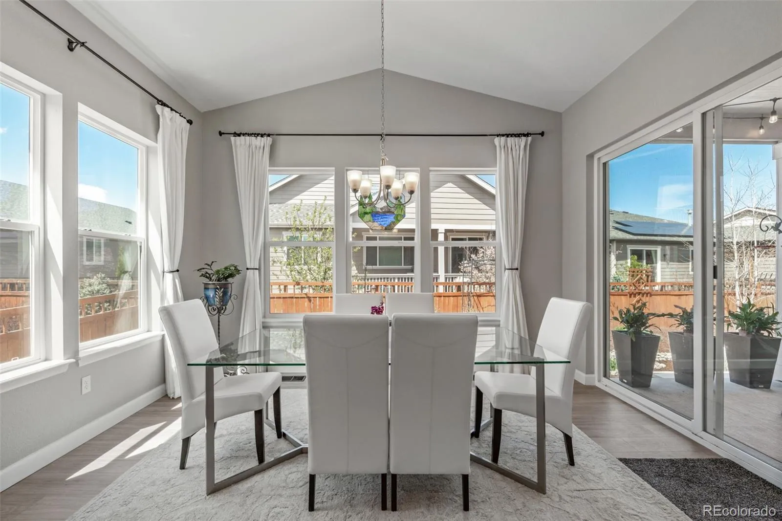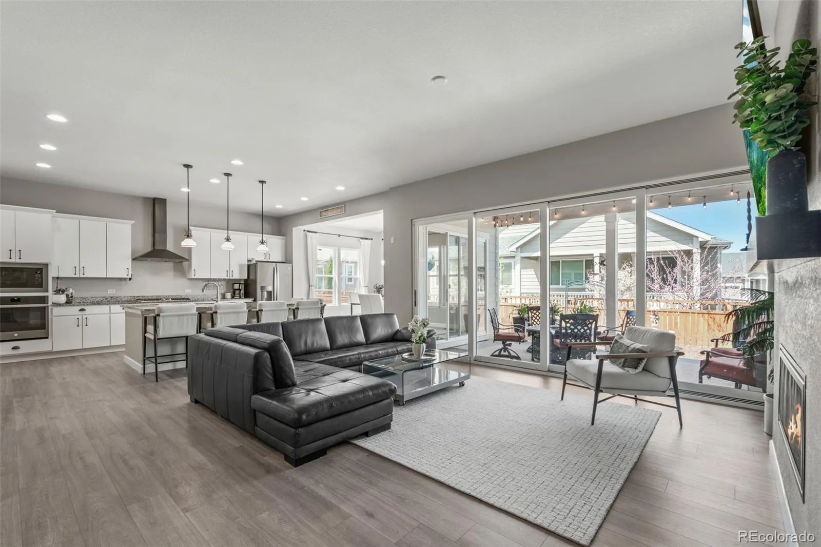This exceptional home is a true must-see, offering a seamless blend of comfort, style, and thoughtful design. A stunning infinity glass wall fully opens to the patio, creating effortless indoor-outdoor living that’s perfect for entertaining. Gather around the warmth of the indoor fireplace or step outside to enjoy two inviting patios, including a private lower patio. The low-maintenance backyard is beautifully landscaped with ornamental grasses and a variety of flowering, water-wise plants, including rose of sharon and iris.The heart of the home is the well-appointed kitchen,featuring tall cabinetry with designer hardware,pendant lighting over a large island,a spacious walk-in pantry,and a convenient built-in desk area just off the kitchen.The adjoining sunroom dining space is filled with natural light, creating the perfect setting for everyday meals.The main floor is thoughtfully designed,offering a private office with built-in shelving and a separate bedroom and full bath—ideal for guests or multigenerational living.The primary suite provides a relaxing retreat with a spa-like shower, dual sinks, and a generous walk-in closet.The finished basement expands your living space with endless possibilities, including a media area for movie nights, room for a home gym, and space for entertaining.A stylish bar with a sink enhances the experience, while a private bedroom with a large walk-in closet and full bath makes it perfect for guests or extended stays.Enjoy direct access to scenic paths leading to the Cherry Creek Trail, with convenient routes to Denver and Castlewood Canyon State Park. Residents of Cobblestone Ranch also enjoy exclusive amenities, including a private clubhouse, pool, tennis courts, and pickleball facilities.Located in an area with top-rated schools, this home truly has it all. Recent updates include new luxury vinyl plank flooring on the main level, installed in 2025, adding a fresh, modern touch to this remarkable property.
