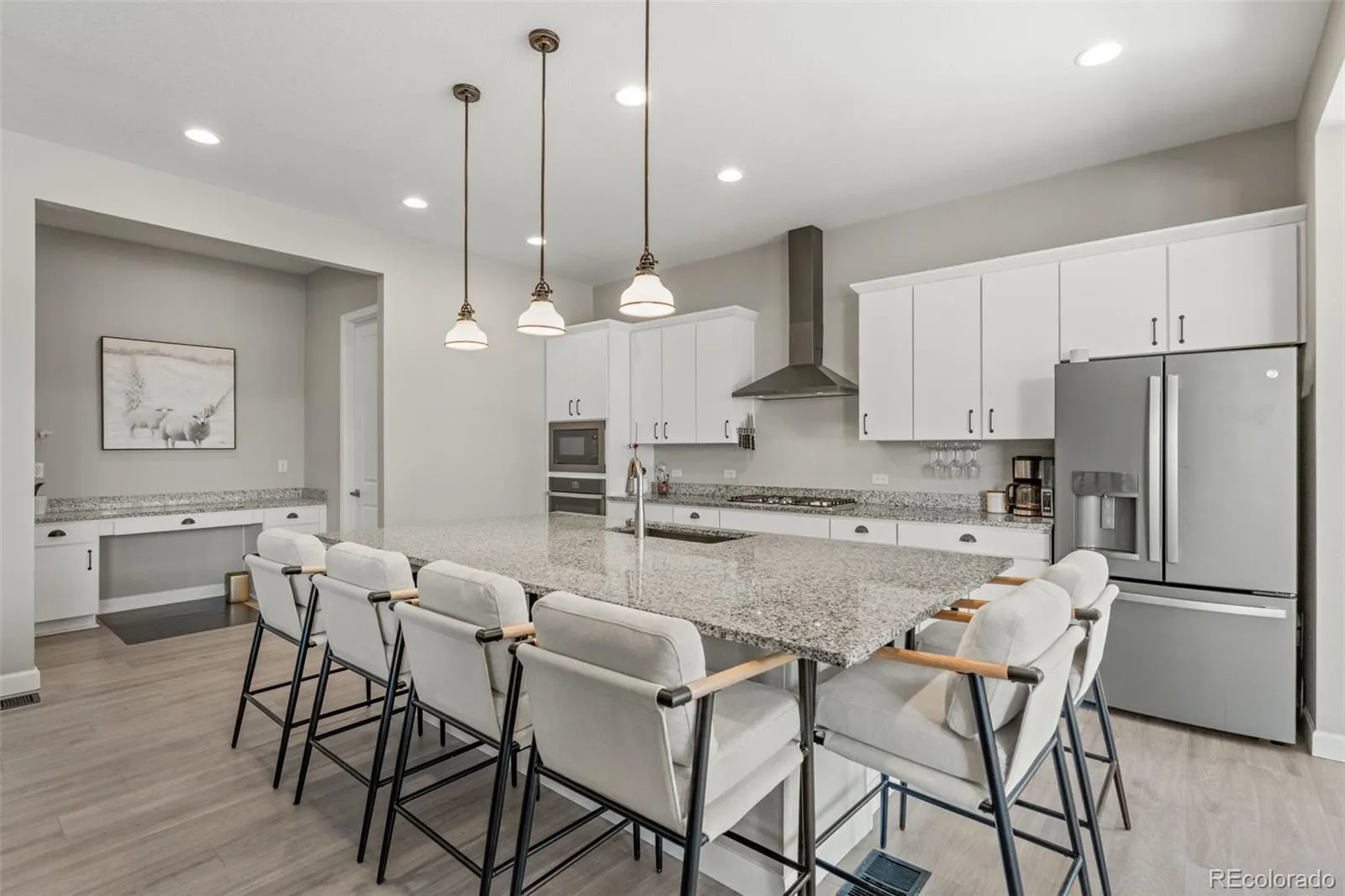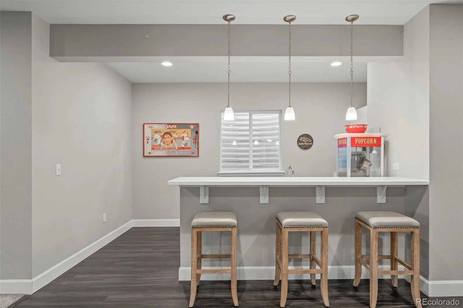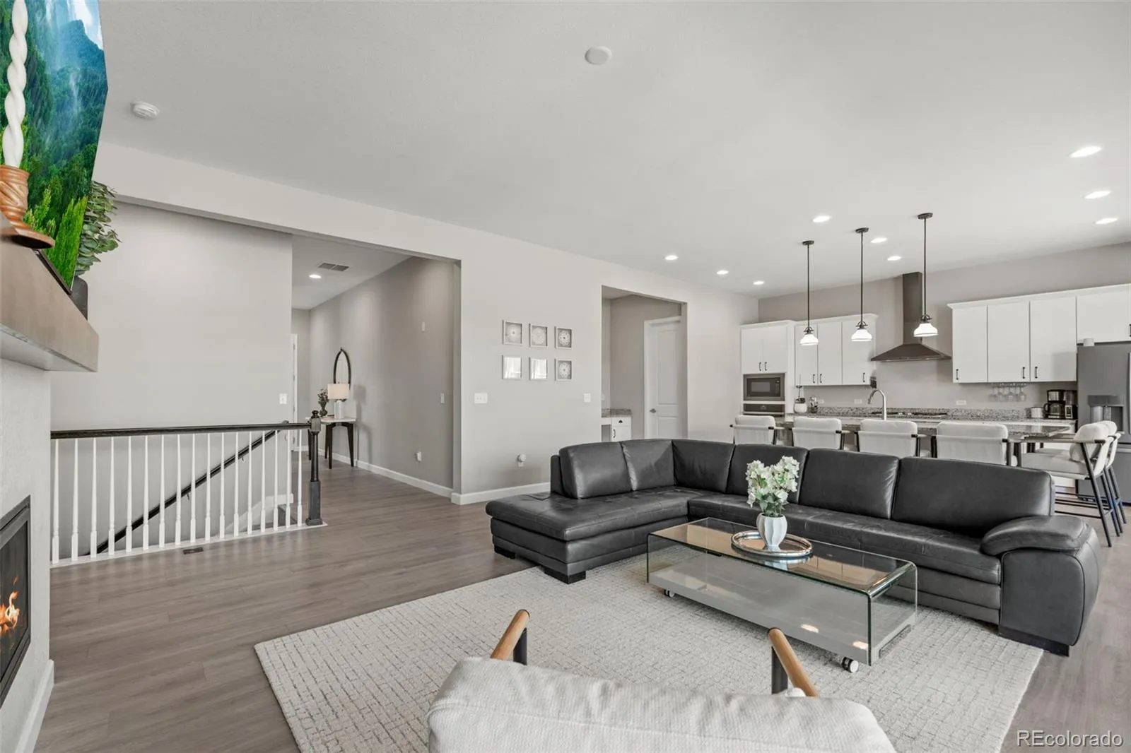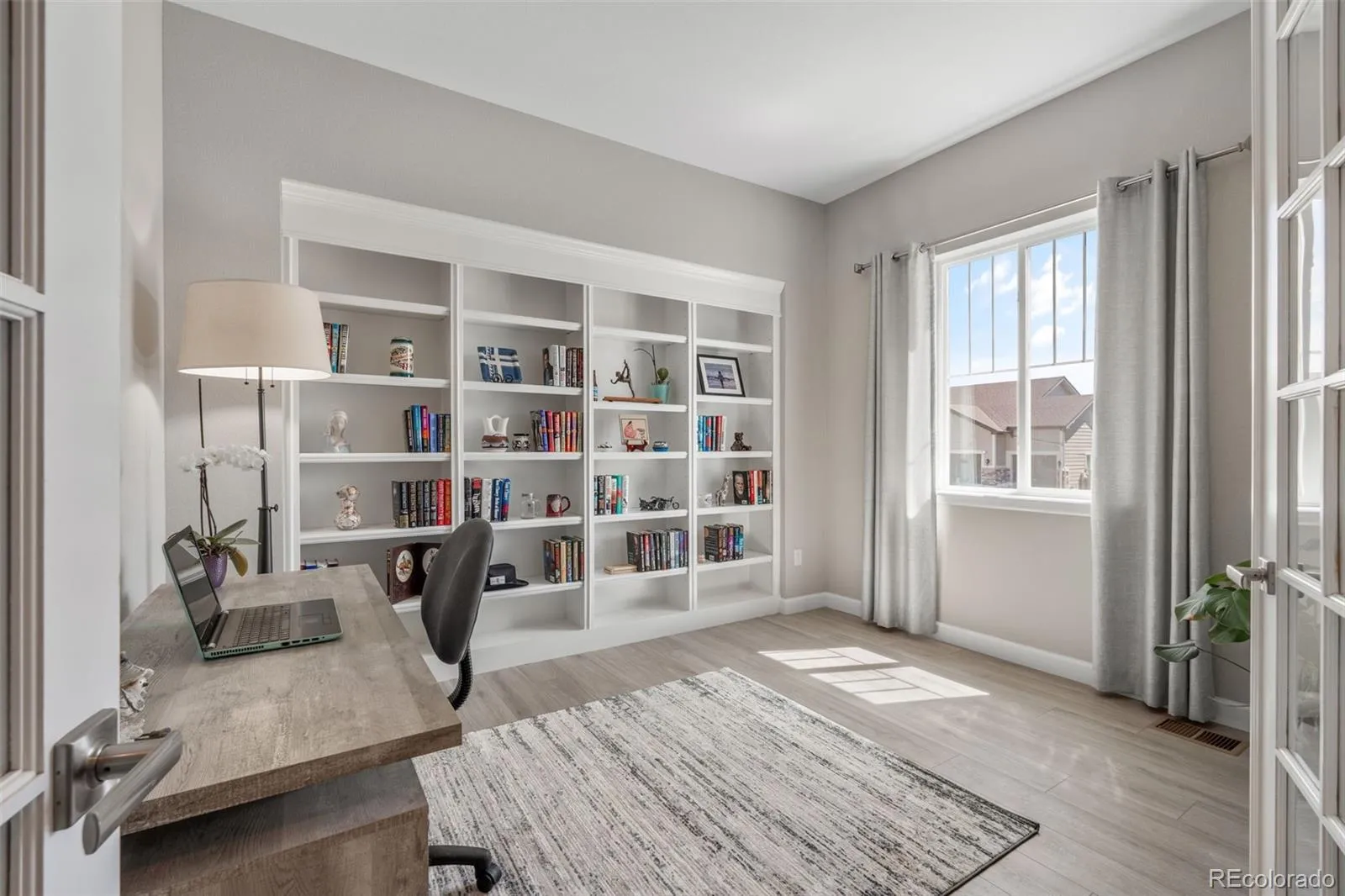 This exceptional home is a true must-see, offering a seamless blend of comfort, style, and thoughtful design. A stunning infinity glass wall fully opens to the patio, creating effortless indoor-outdoor living that’s perfect for entertaining. Gather around the warmth of the indoor fireplace or step outside to enjoy two inviting patios, including a private lower patio. The low-maintenance backyard is beautifully landscaped with ornamental grasses and a variety of flowering, water-wise plants, including rose of sharon and iris.The heart of the home is the well-appointed kitchen,featuring tall cabinetry with designer hardware,pendant lighting over a large island,a spacious walk-in pantry,and a convenient built-in desk area just off the kitchen.The adjoining sunroom dining space is filled with natural light, creating the perfect setting for everyday meals.The main floor is thoughtfully designed,offering a private office with built-in shelving and a separate bedroom and full bath—ideal for guests or multigenerational living.The primary suite provides a relaxing retreat with a spa-like shower, dual sinks, and a generous walk-in closet.The finished basement expands your living space with endless possibilities, including a media area for movie nights, room for a home gym, and space for entertaining.A stylish bar with a sink enhances the experience, while a private bedroom with a large walk-in closet and full bath makes it perfect for guests or extended stays.Enjoy direct access to scenic paths leading to the Cherry Creek Trail, with convenient routes to Denver and Castlewood Canyon State Park. Residents of Cobblestone Ranch also enjoy exclusive amenities, including a private clubhouse, pool, tennis courts, and pickleball facilities.Located in an area with top-rated schools, this home truly has it all. Recent updates include new luxury vinyl plank flooring on the main level, installed in 2025, adding a fresh, modern touch to this remarkable property.
