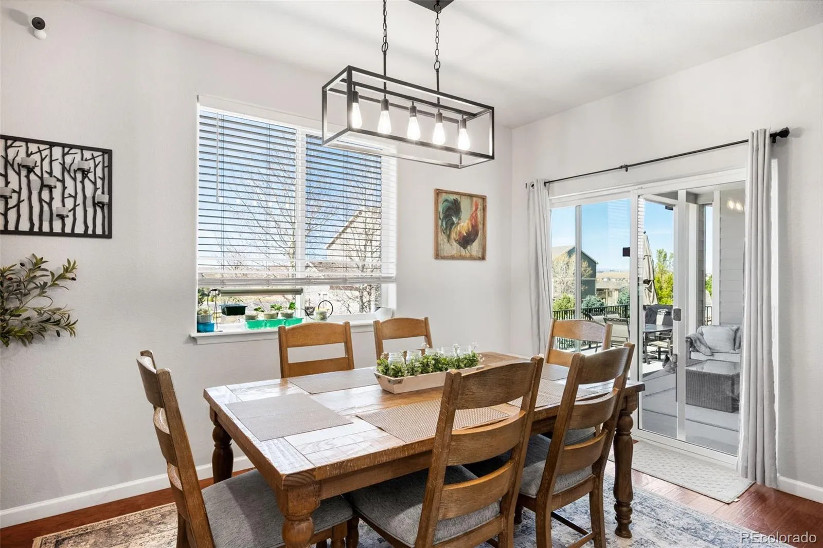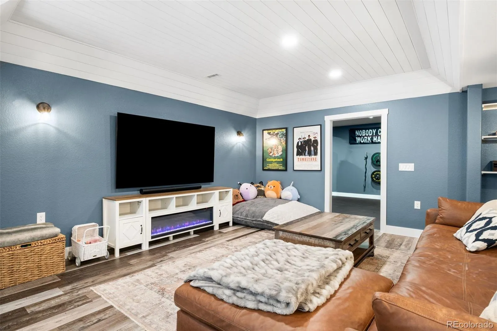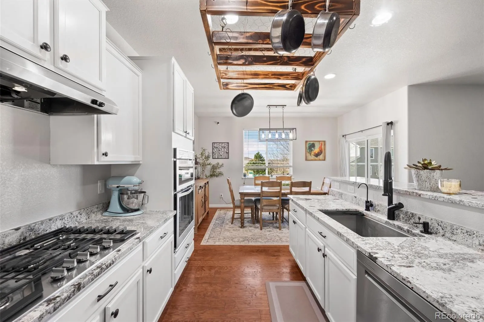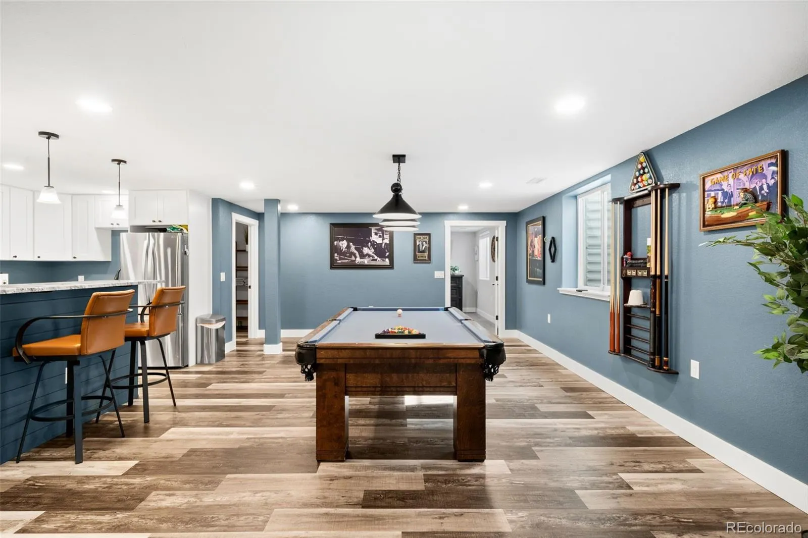 Located in the sought after golf course community of Spring Valley Ranch, this home represents the fully upgraded version buyers wish every builder home included. Major upgrades begin with a Class 4 impact resistant roof designed to withstand severe weather and reduce long term repair costs, a whole home Culligan water filtration system with reverse osmosis at the kitchen sink, custom window coverings, and a fully finished basement. The basement is truly what sets this home apart from others in the community. Built to contractor grade standards, it offers a complete in home entertainment experience with movie lighting, a premium gym with high density rubber flooring, a kitchenette with a full size refrigerator, microwave, sink, bar seating, and a pool table. There are two additional bedrooms with egress windows and a beautiful new bathroom. The main level features wood flooring, 9 foot ceilings, and an open, functional layout. The kitchen has been updated with white cabinetry, beautiful granite countertops, and stainless steel appliances. There is walk in pantry an eat-at counter. The spacious main level primary suite is in its own wing and includes a five piece bath and large walk in closet. Three additional main level bedrooms share a bathroom with a double vanity and a separate shower and toilet room. The backyard features a covered porch, extended concrete patio, steel railing for peace of mind with pets and kids, and a large fully fenced yard. Improvements include French drains, a new insulated sprinkler system with Rain Bird controls and rain sensors, and mature landscaping. Night skies are brilliant with little to no light pollution.Two separate garages offer space for cars, toys, or a golf cart, are finished with epoxy floors and overhead storage. An additional 10 feet of driveway provides extra parking. This is the upgraded benchmark home in Spring Valley Ranch.