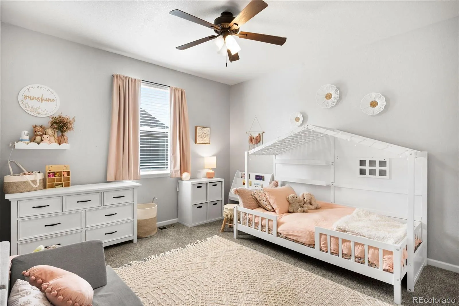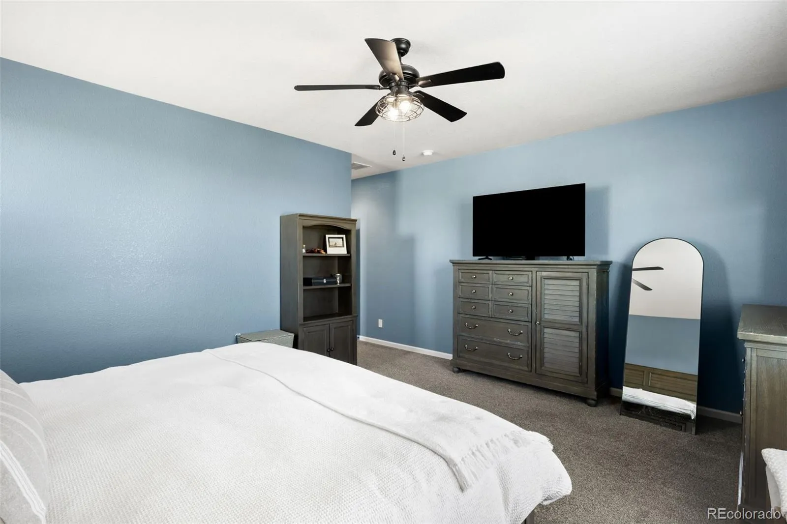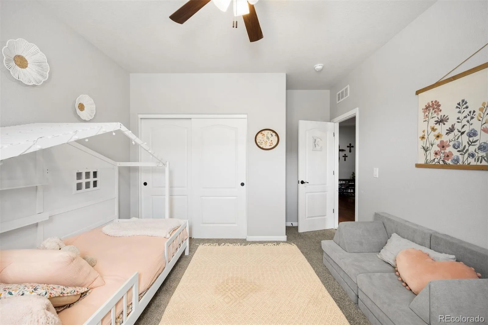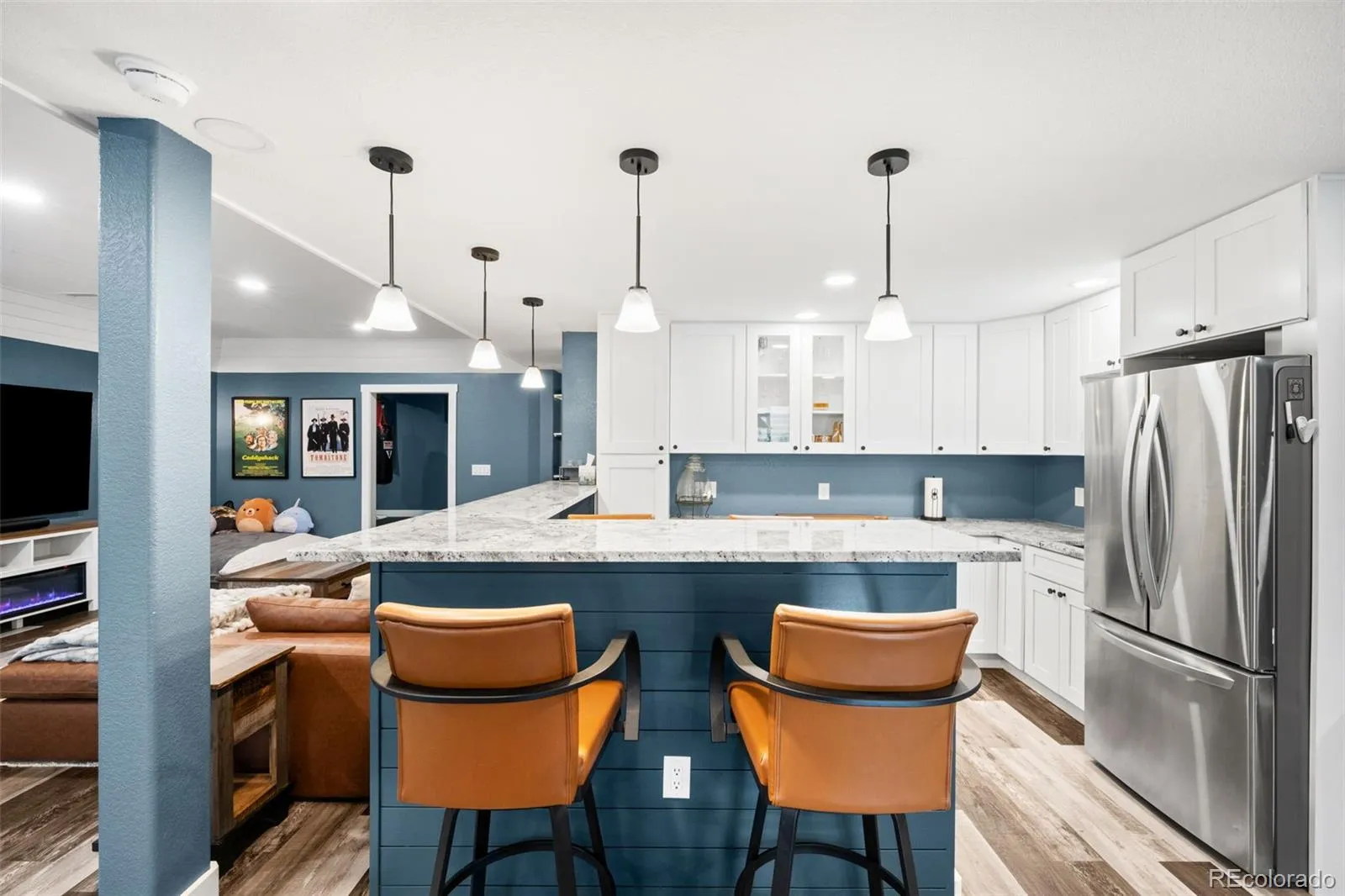 Located in the sought after golf course community of Spring Valley Ranch, this home represents the fully upgraded version buyers wish every builder home included. Major upgrades begin with a Class 4 impact resistant roof designed to withstand severe weather and reduce long term repair costs, a whole home Culligan water filtration system with reverse osmosis at the kitchen sink, custom window coverings, and a fully finished basement. The basement is truly what sets this home apart from others in the community. Built to contractor grade standards, it offers a complete in home entertainment experience with movie lighting, a premium gym with high density rubber flooring, a kitchenette with a full size refrigerator, microwave, sink, bar seating, and a pool table. There are two additional bedrooms with egress windows and a beautiful new bathroom. The main level features wood flooring, 9 foot ceilings, and an open, functional layout. The kitchen has been updated with white cabinetry, beautiful granite countertops, and stainless steel appliances. There is walk in pantry an eat-at counter. The spacious main level primary suite is in its own wing and includes a five piece bath and large walk in closet. Three additional main level bedrooms share a bathroom with a double vanity and a separate shower and toilet room. The backyard features a covered porch, extended concrete patio, steel railing for peace of mind with pets and kids, and a large fully fenced yard. Improvements include French drains, a new insulated sprinkler system with Rain Bird controls and rain sensors, and mature landscaping. Night skies are brilliant with little to no light pollution.Two separate garages offer space for cars, toys, or a golf cart, are finished with epoxy floors and overhead storage. An additional 10 feet of driveway provides extra parking. This is the upgraded benchmark home in Spring Valley Ranch.