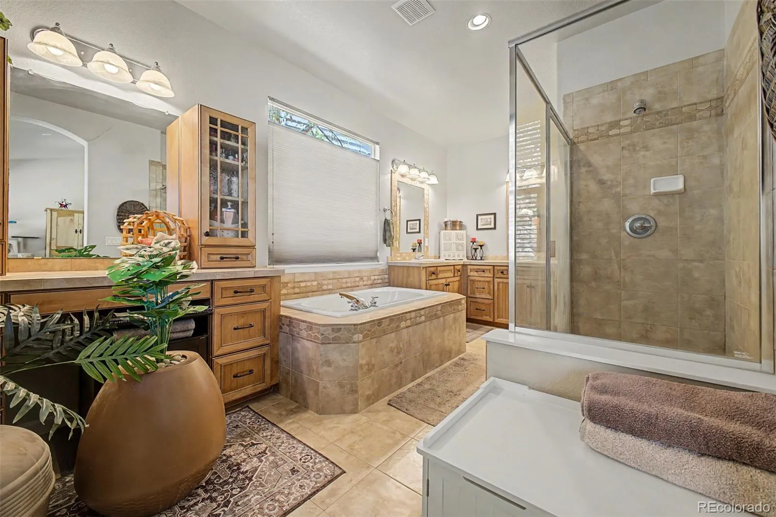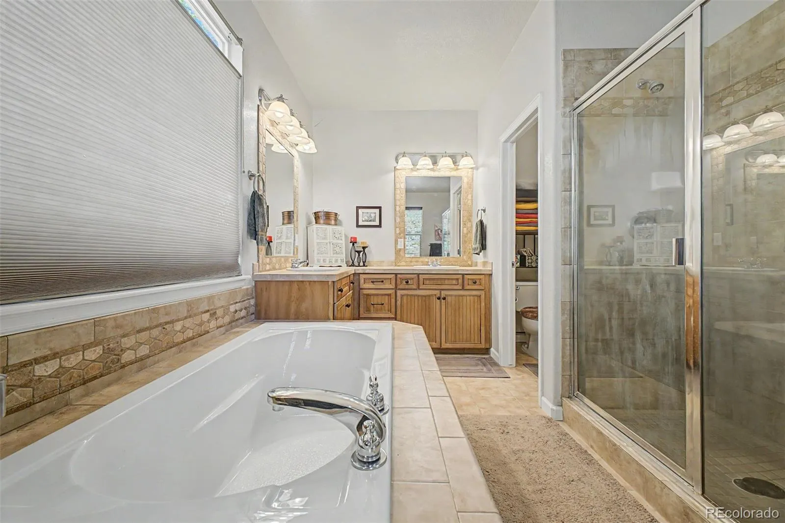 Welcome to this beautifully enhanced home in The Meadows at Castle Rock, where thoughtful upgrades set it apart from the rest. Owned by a former Village Homes professional, this residence showcases elevated finishes and attention to detail throughout. Enjoy the convenience of a main floor primary suite with a luxurious bath, a private office, and a fully finished basement complete with an additional bedroom and bath—perfect for guests or extended living. Upgraded cabinetry, warm wood flooring, and tile in every bathroom add both style and function to this exceptional home.