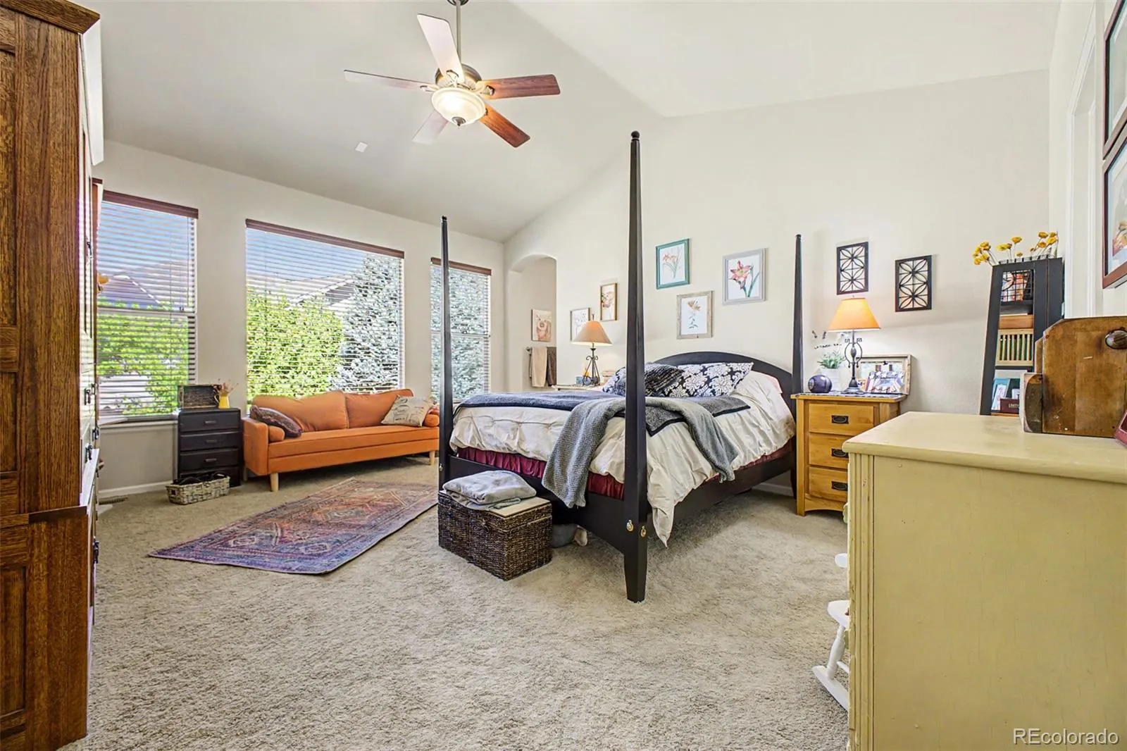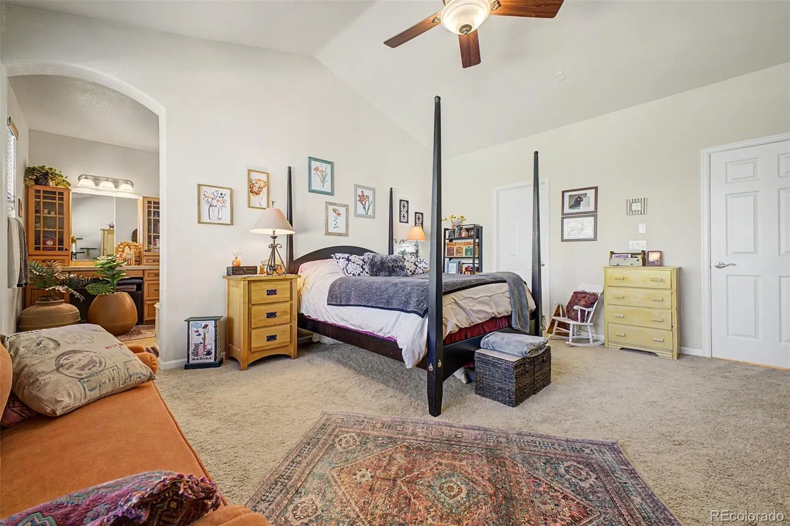 : High Ceilings, Open Floorplan, Kitchen Island, Eat-in Kitchen, Vaulted Ceiling(s), Ceiling Fan(s), Entrance Foyer, Primary Suite, Five Piece Bath, Radon Mitigation System, Walk-In Closet(s)